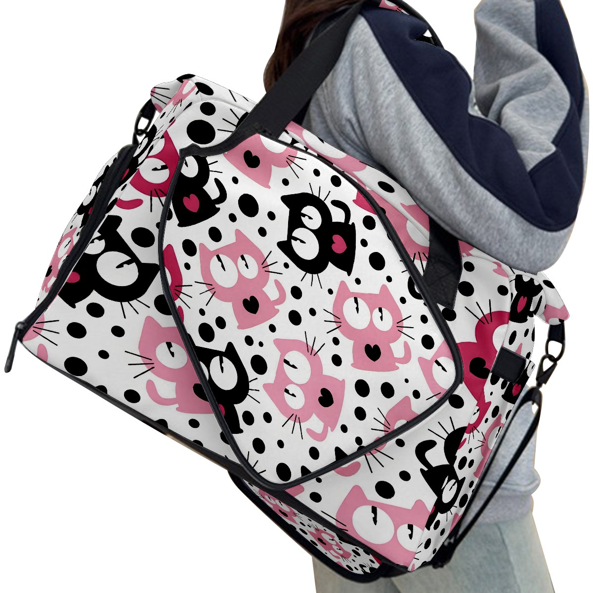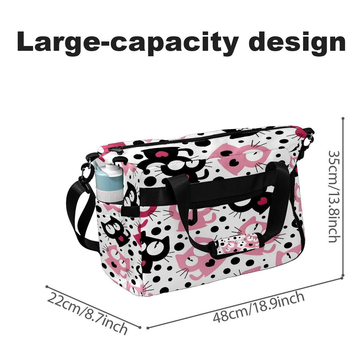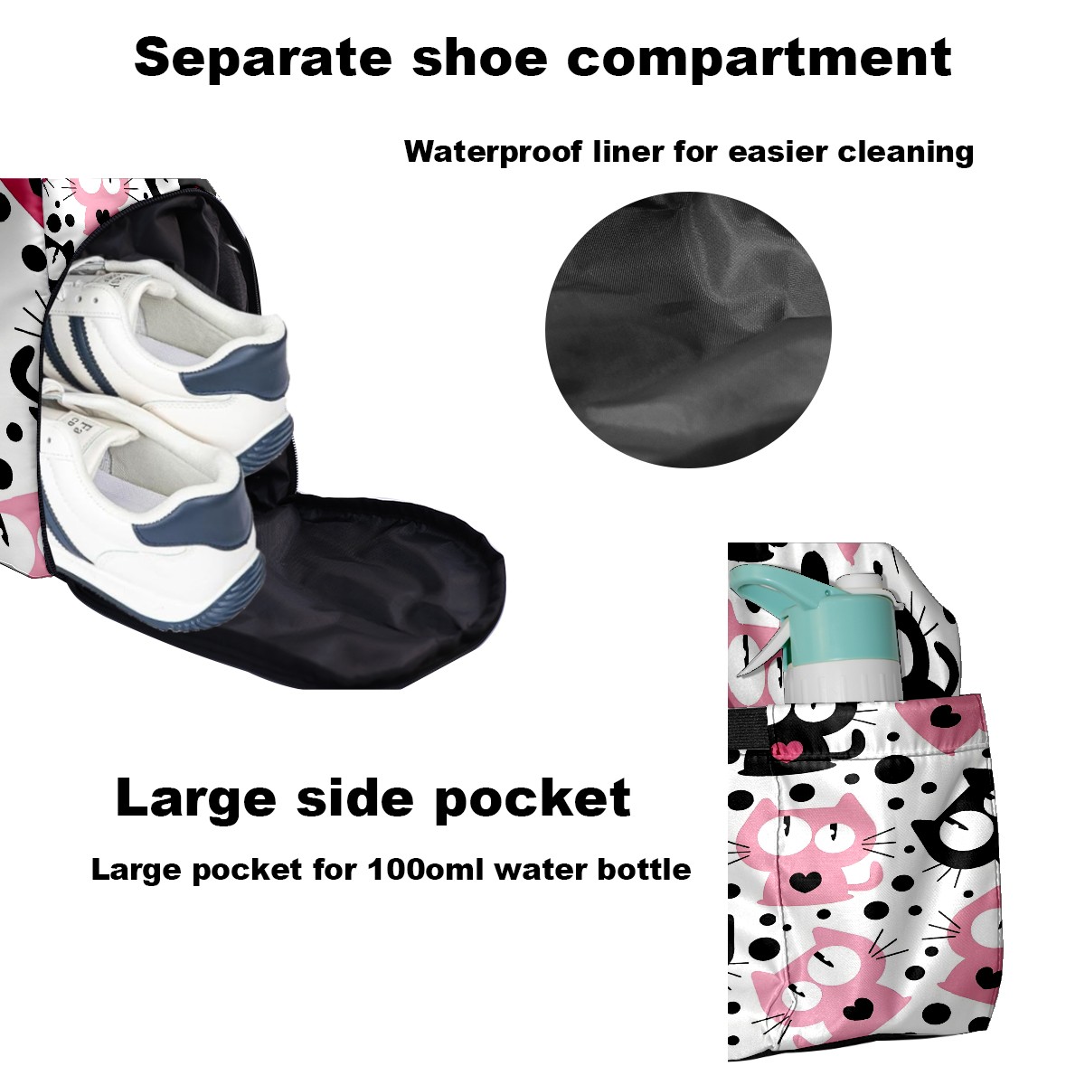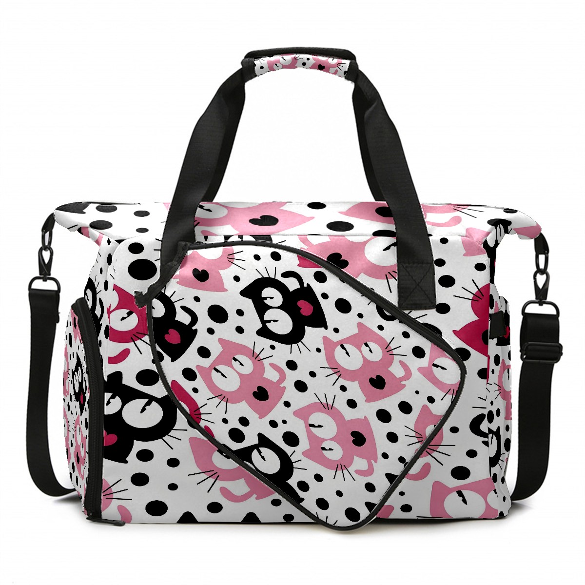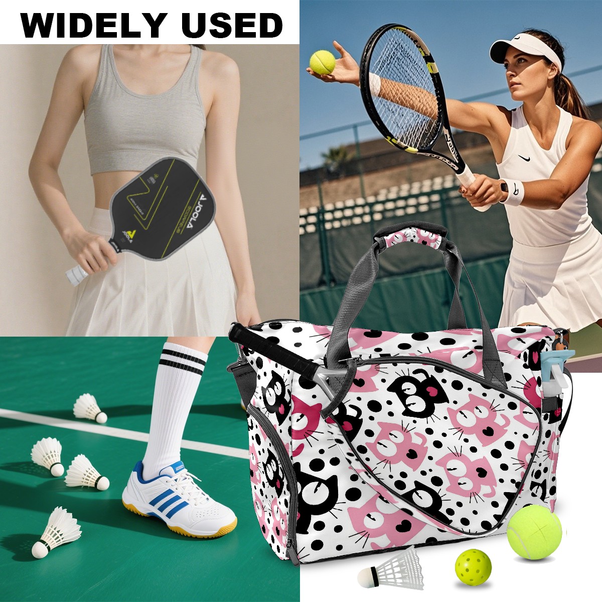Women's Tennis Bag Large Capacity - Ventilated Shoe Compartment & Waterproof Wet Pocket, Multi-Functional Gym Duffel Bag for Tennis, Yoga, Travel (Cat Pink)