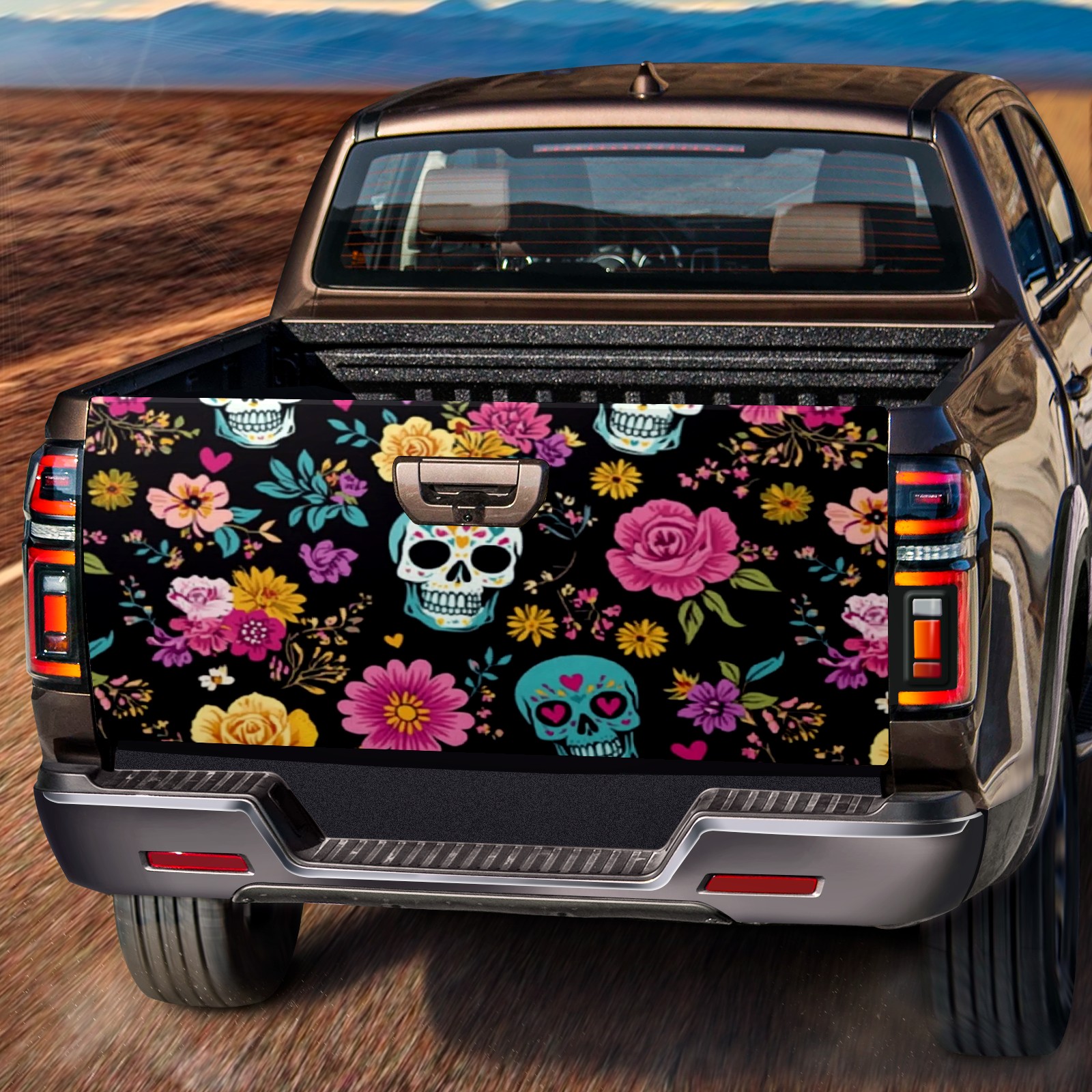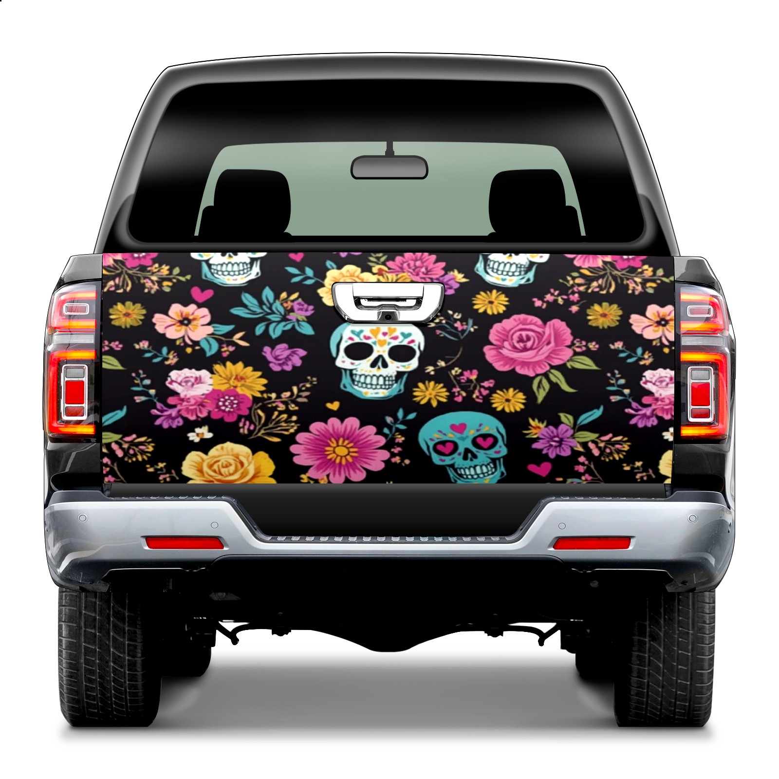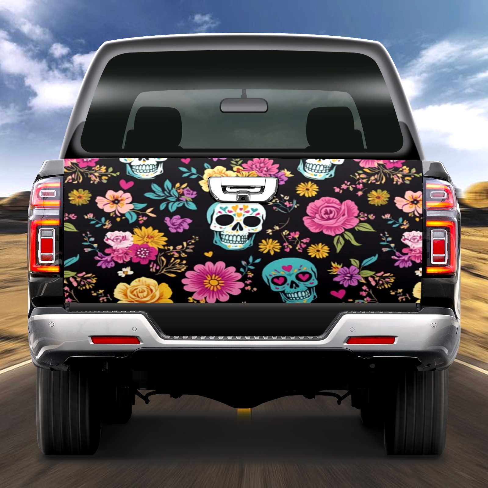 Tailgate Decals for Trucks - Vinyl Graphic Stickers with Skull And Colorful Floral Design for Pickup Tailgate Wrap (58x24in)