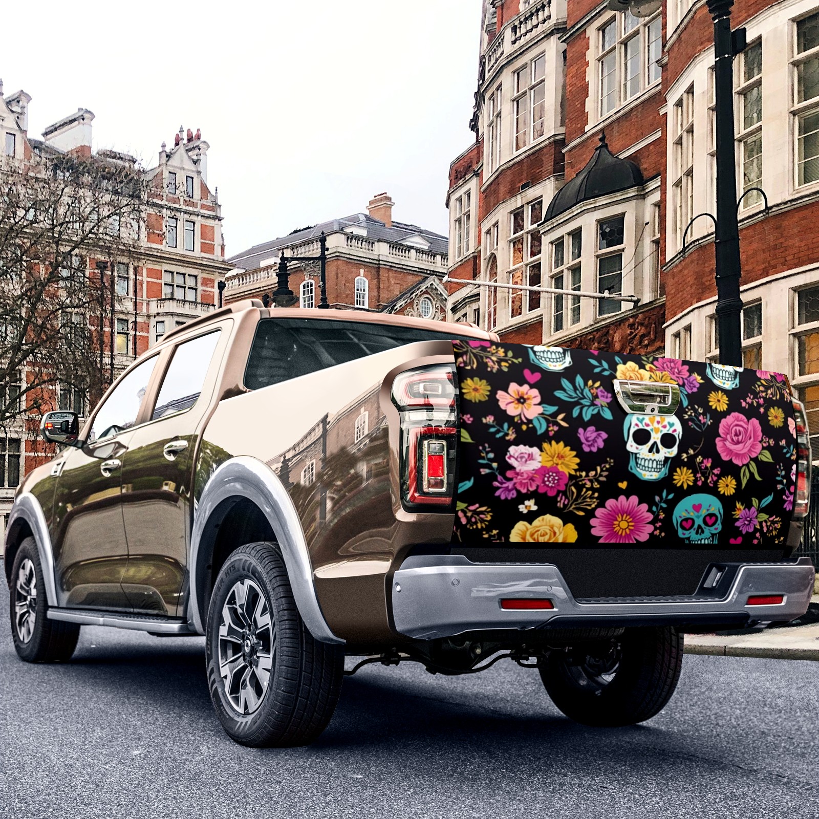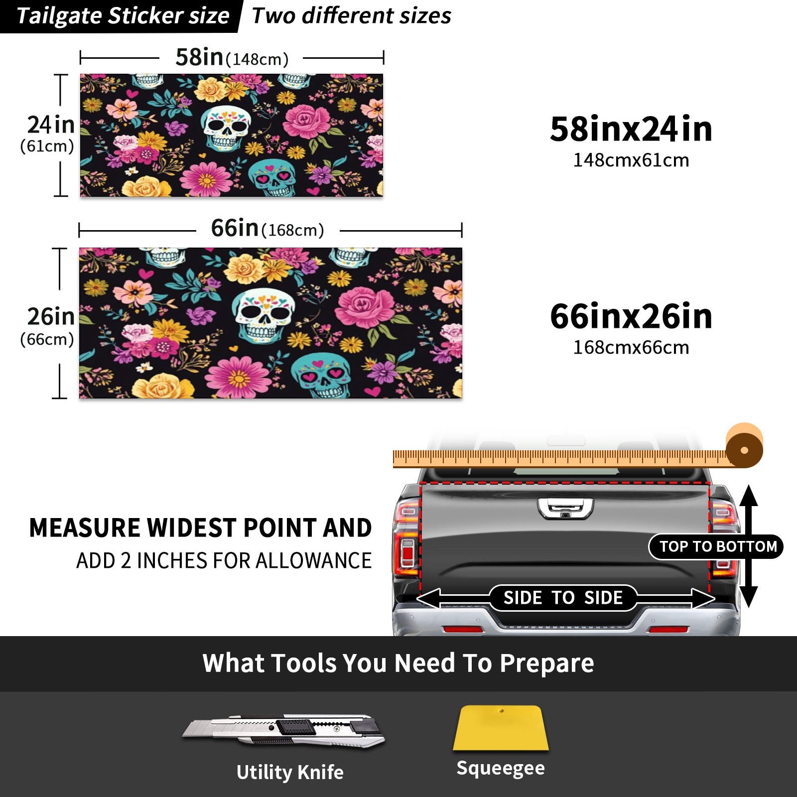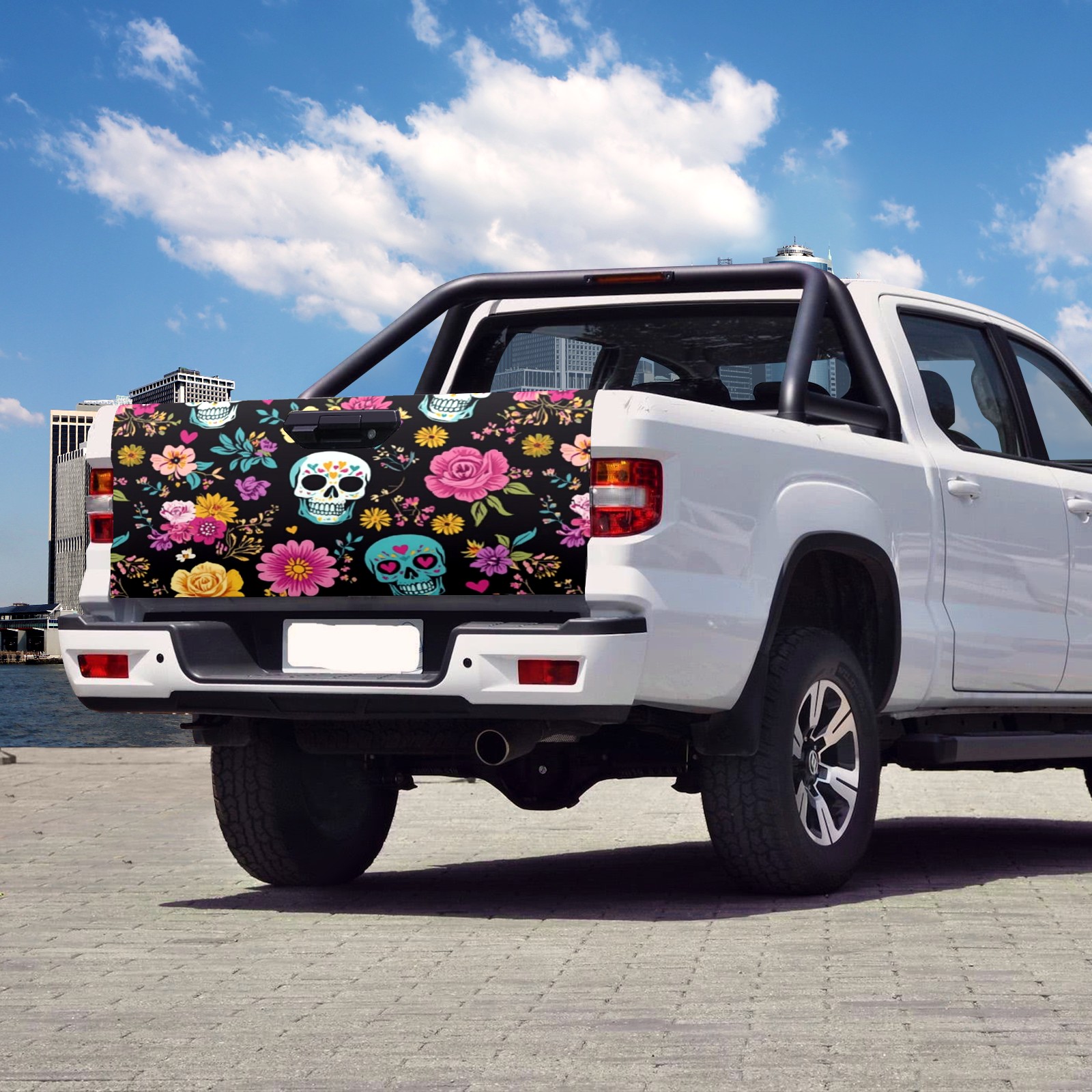 Tailgate Decals for Trucks - Vinyl Graphic Stickers with Skull And Colorful Floral Design for Pickup Tailgate Wrap (58x24in)