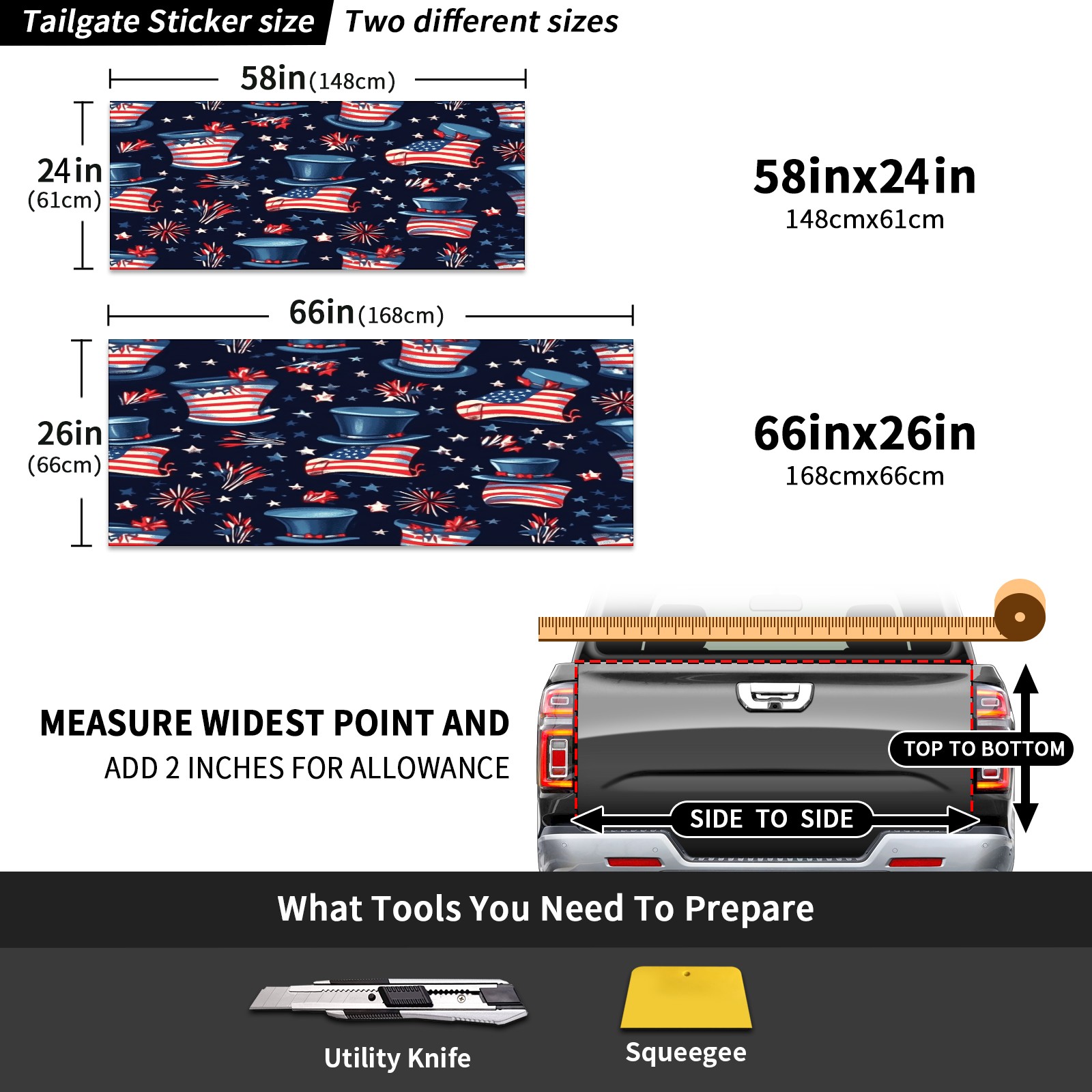 Tailgate Decals for Trucks - Vinyl Graphic Stickers with American Flag Pattern Design for Pickup Tailgate Wrap (58x24in)