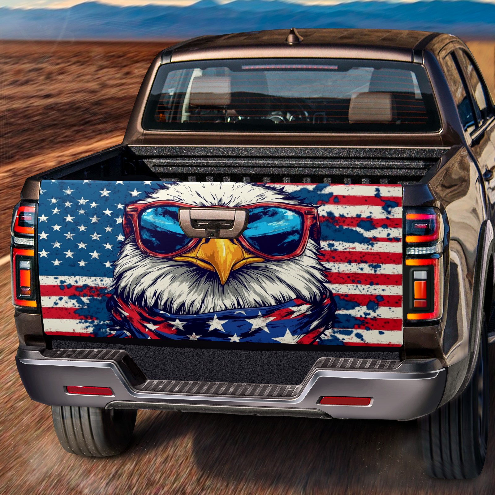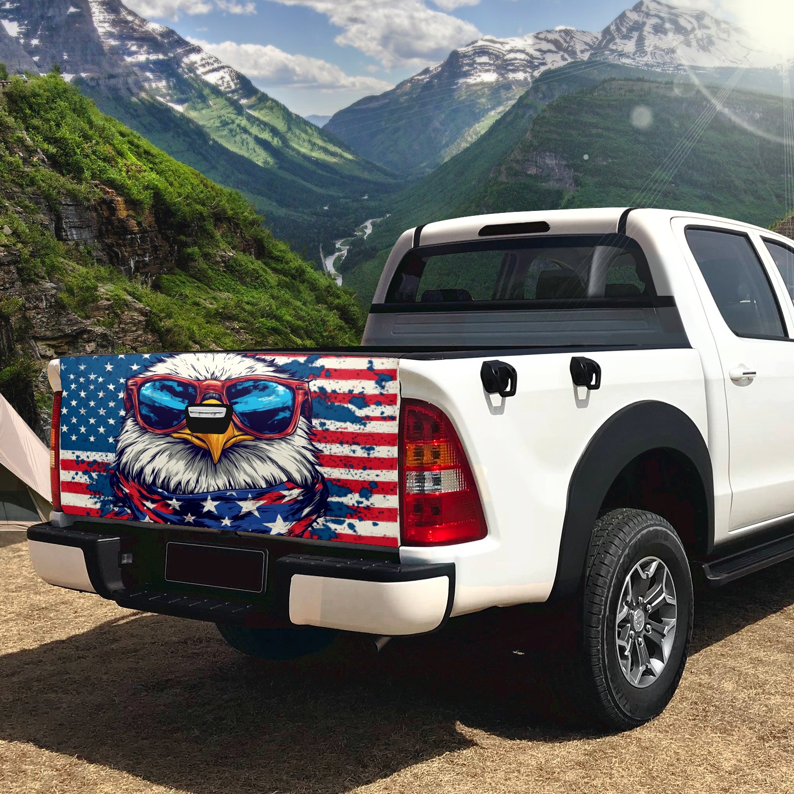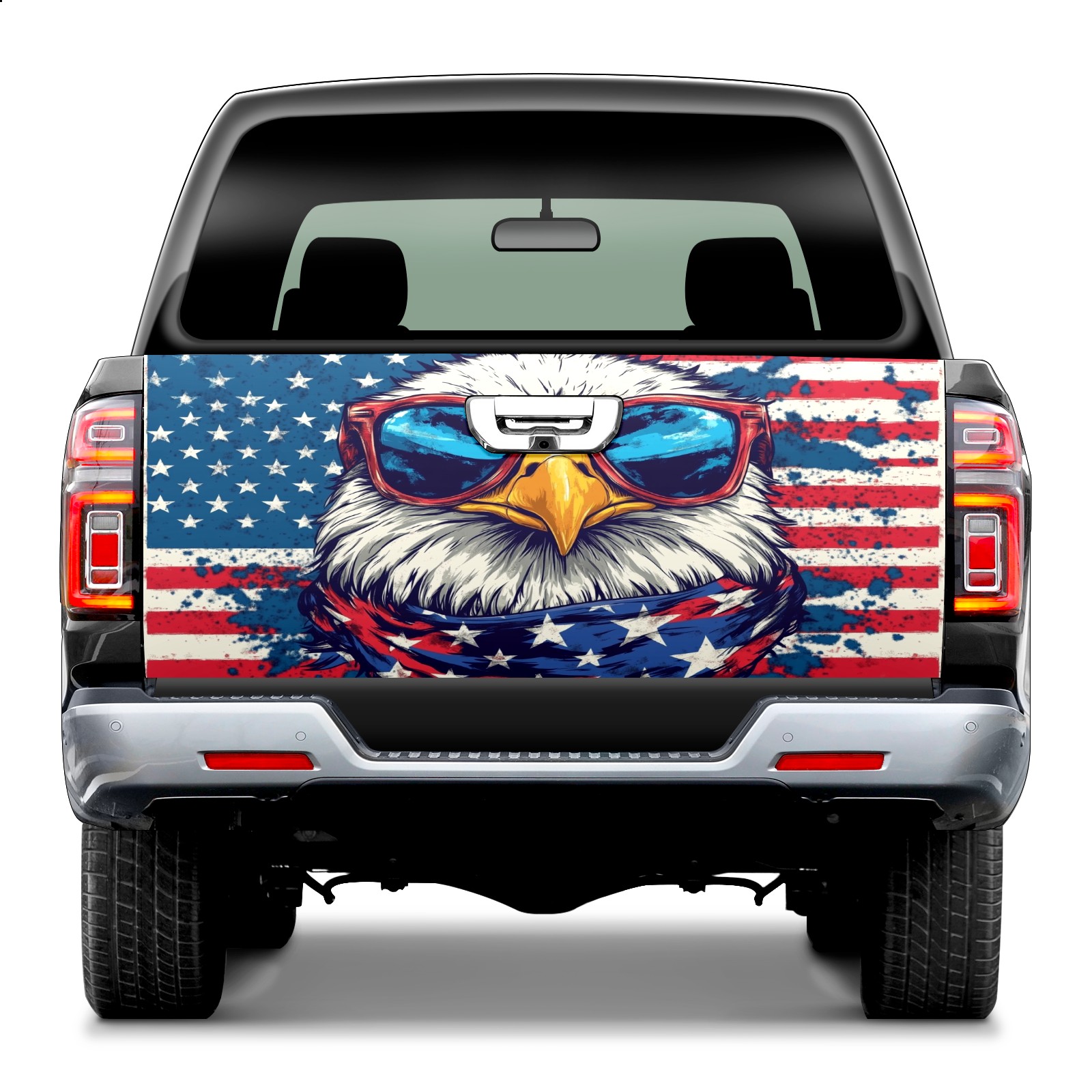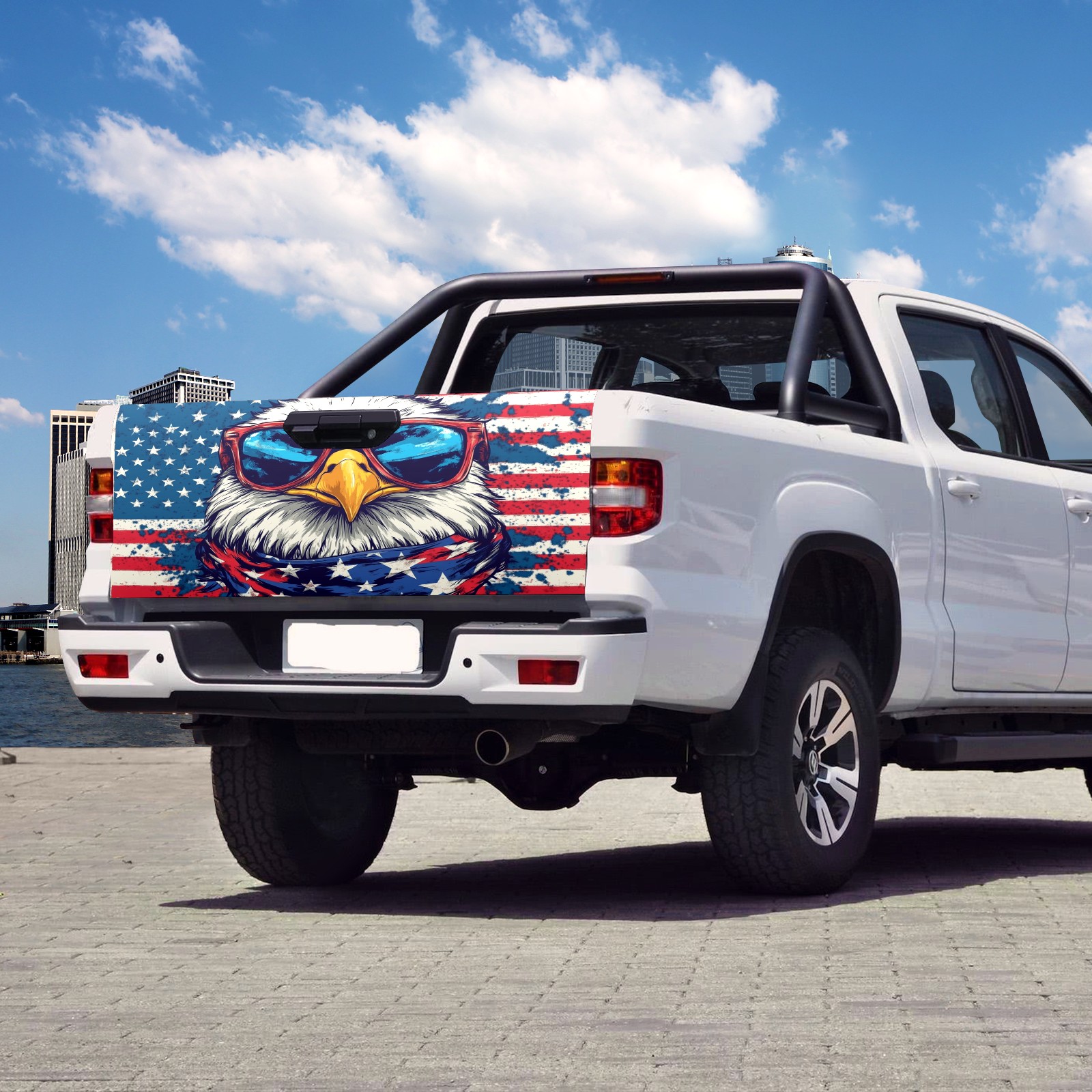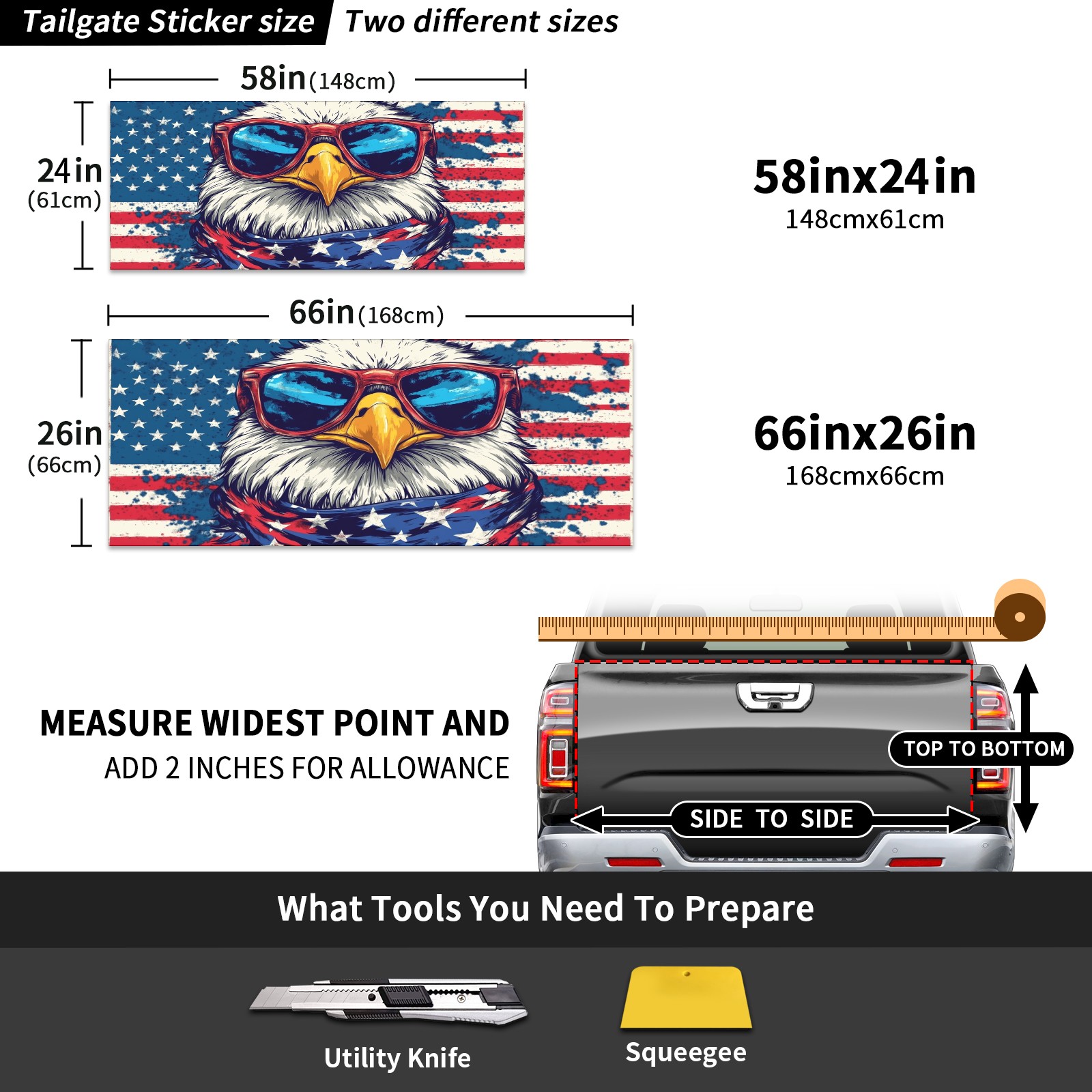 Tailgate Decals for Trucks - Vinyl Graphic Stickers with Eagle And American Flag Design for Pickup Tailgate Wrap (58x24in)