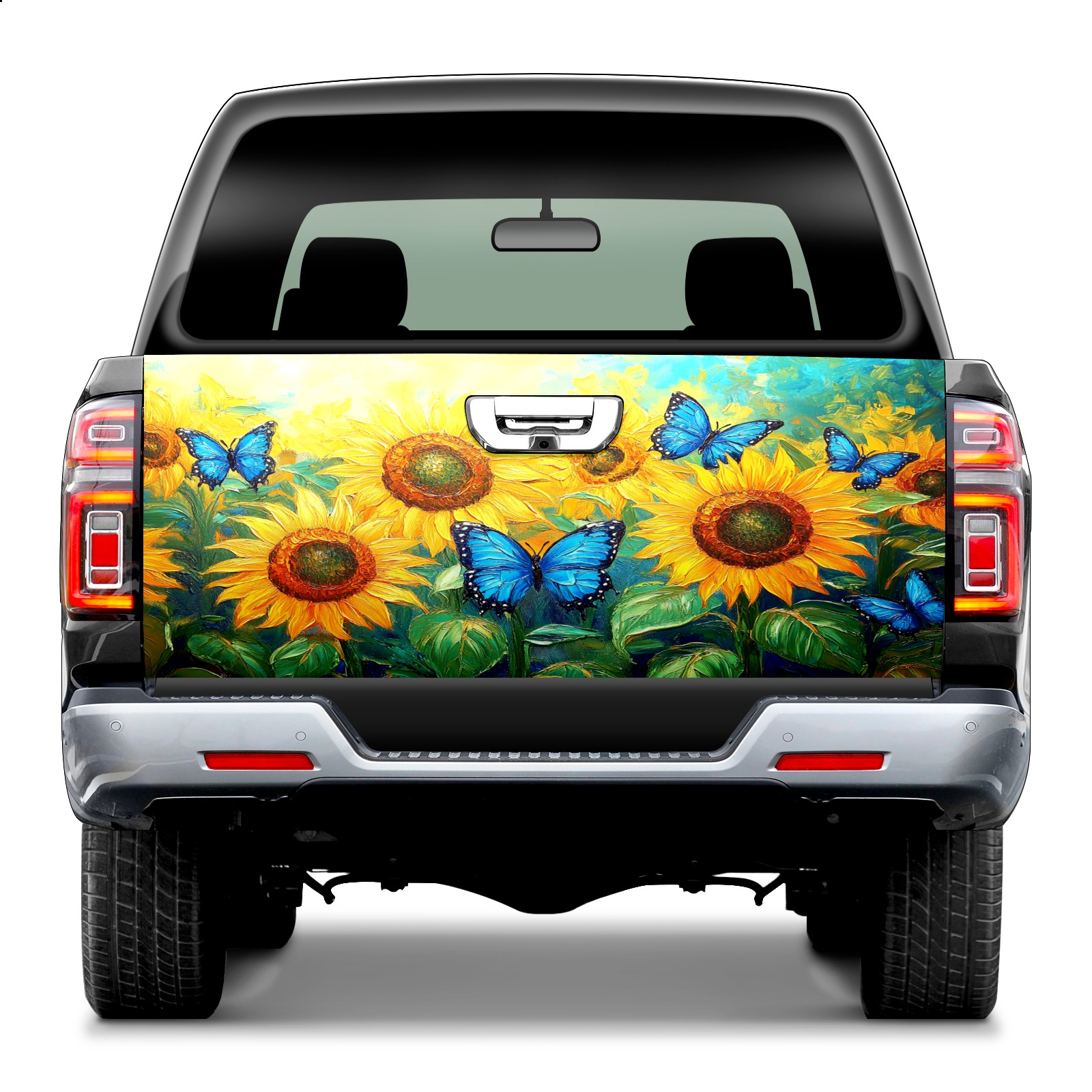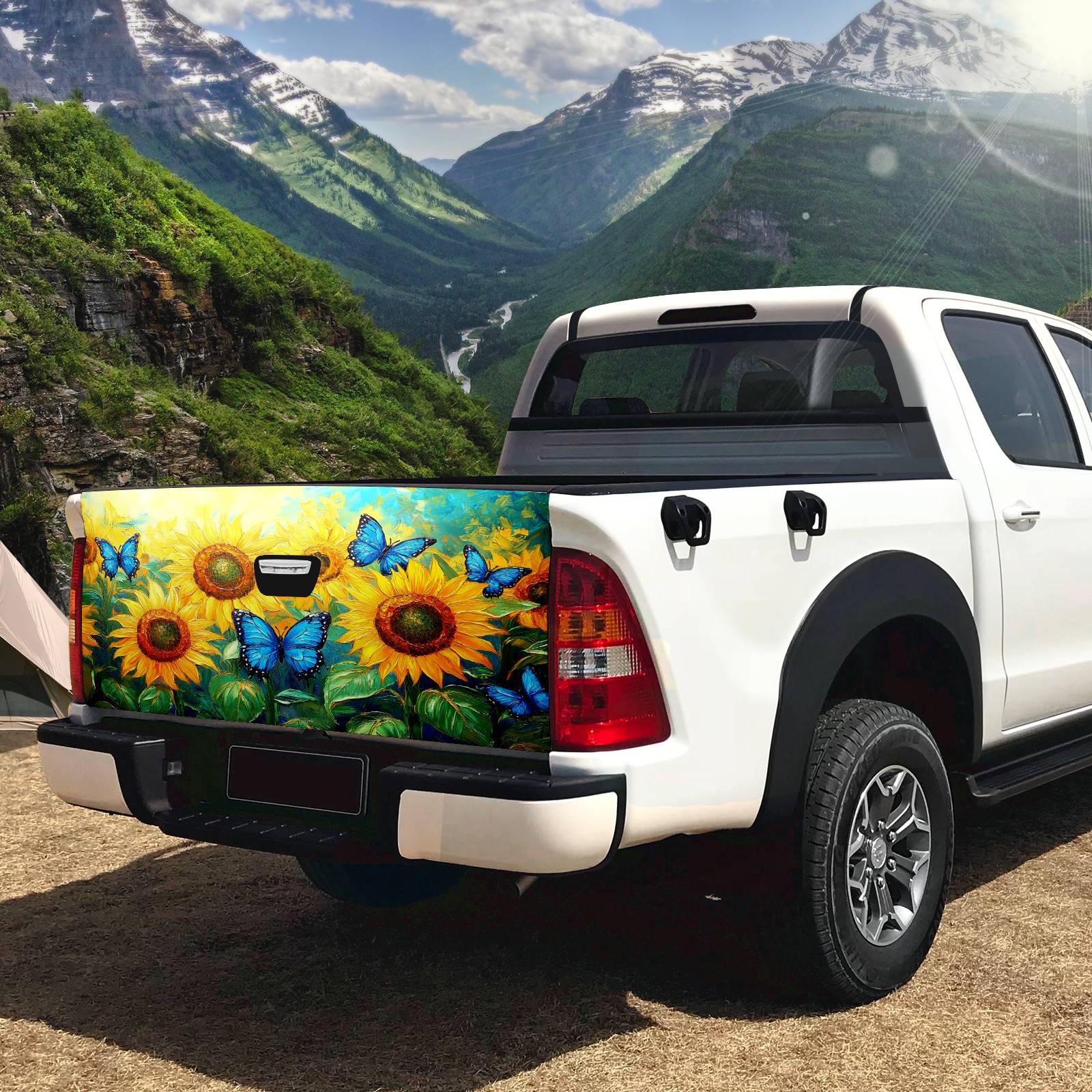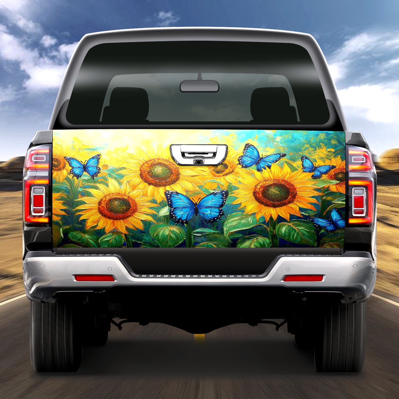Tailgate Decals for Trucks - Vinyl Graphic Stickers with Sunflowers Butterflies Design for Pickup Tailgate Wrap (58x24in)