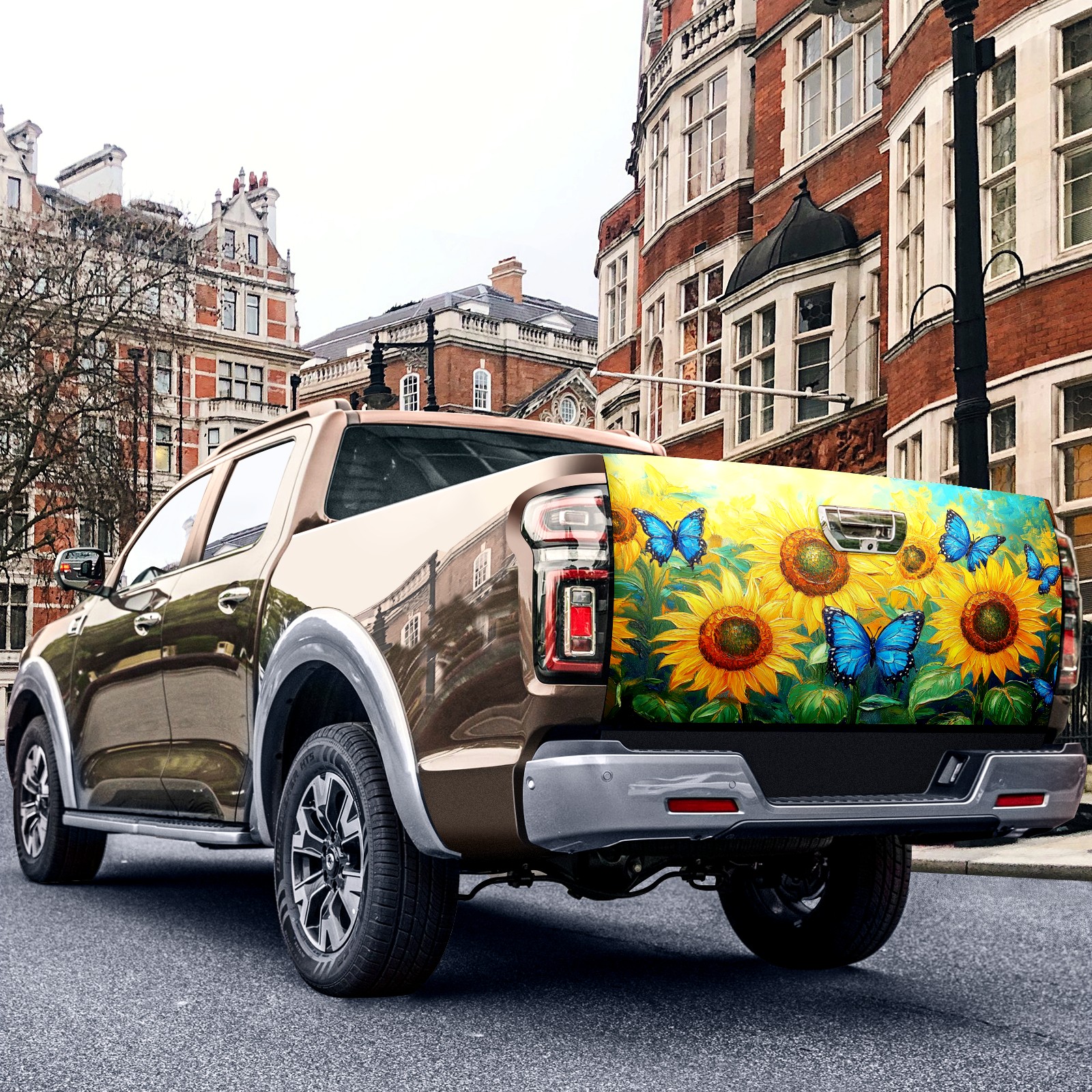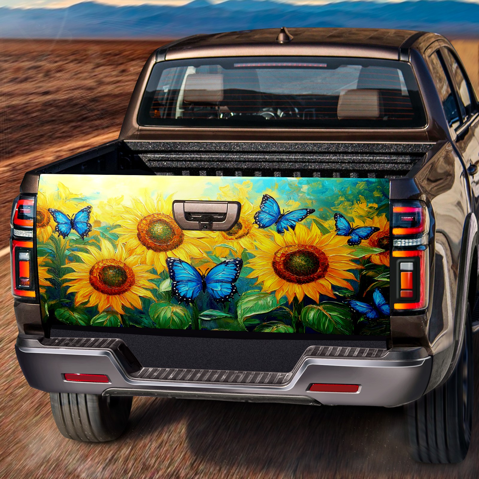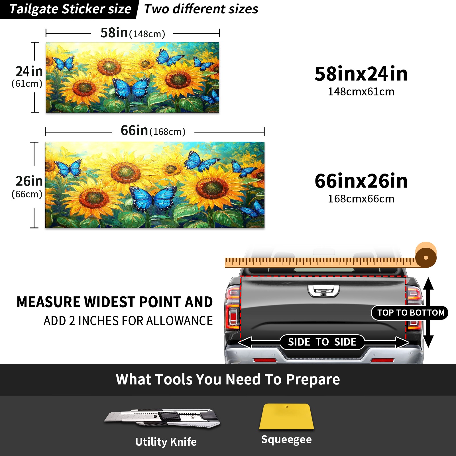 Tailgate Decals for Trucks - Vinyl Graphic Stickers with Sunflowers Butterflies Design for Pickup Tailgate Wrap (58x24in)