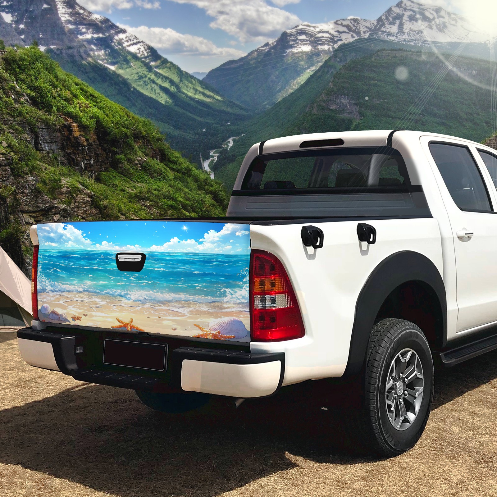 Tailgate Decals for Trucks - Vinyl Graphic Stickers with Beautiful Anime-style Sea Design for Pickup Tailgate Wrap (58x24in)