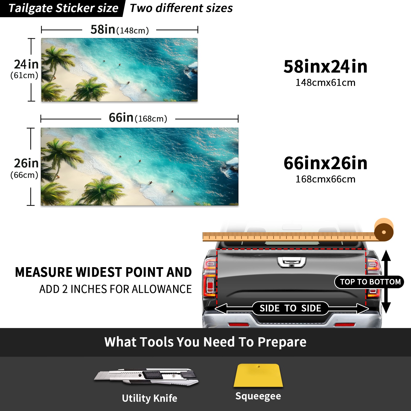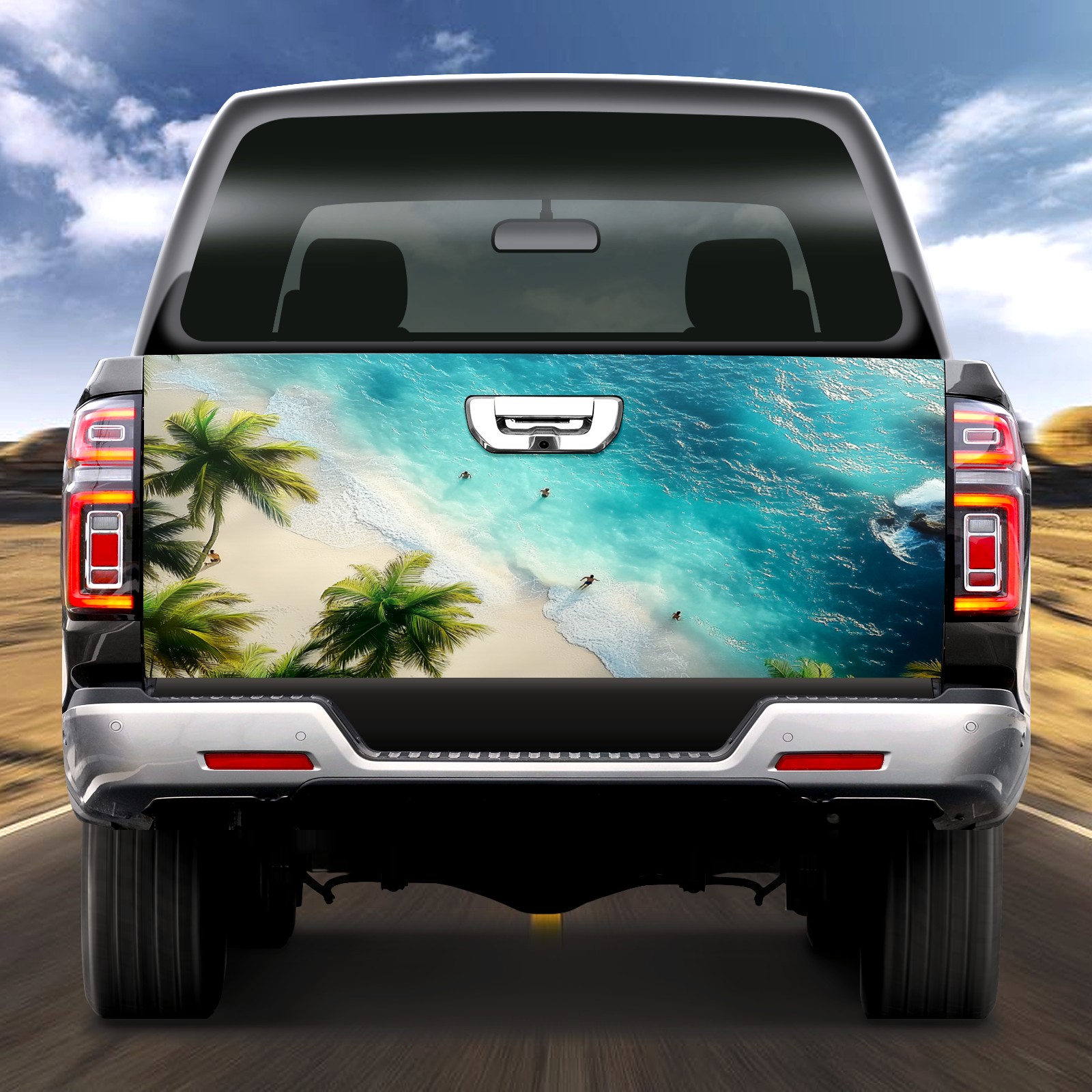 Tailgate Decals for Trucks - Vinyl Graphic Stickers with Beautiful Beach Design for Pickup Tailgate Wrap (58x24in)