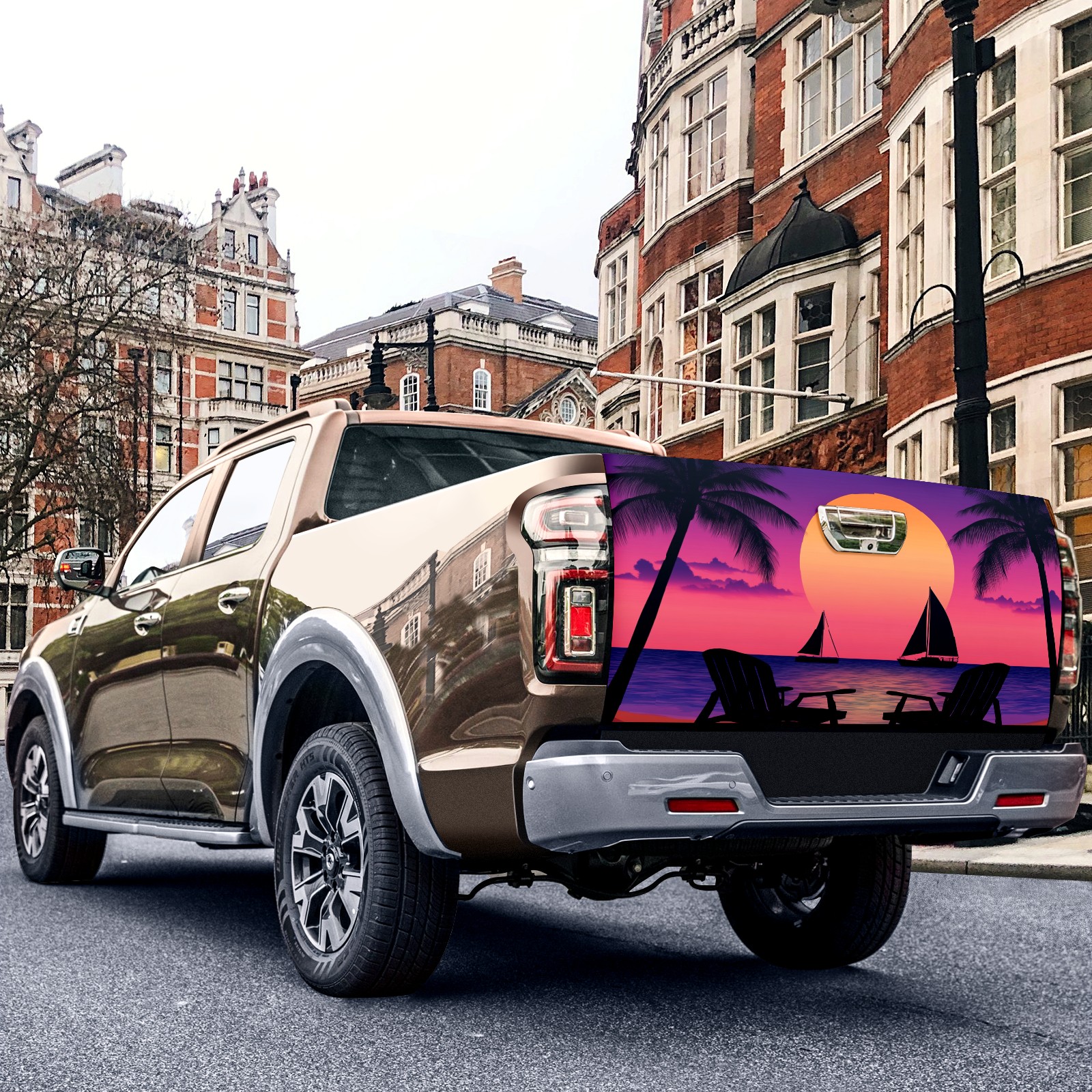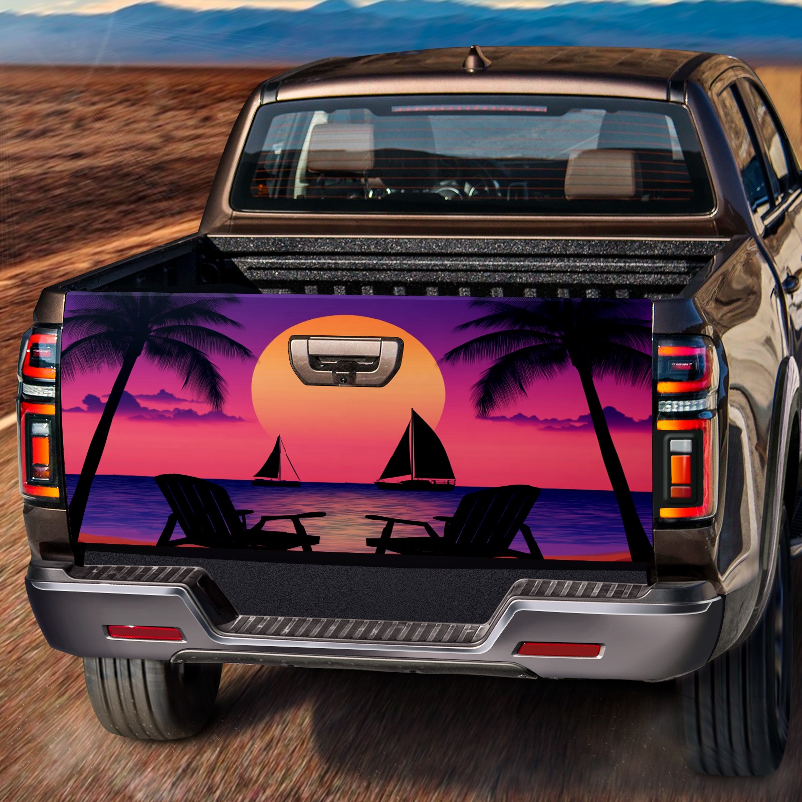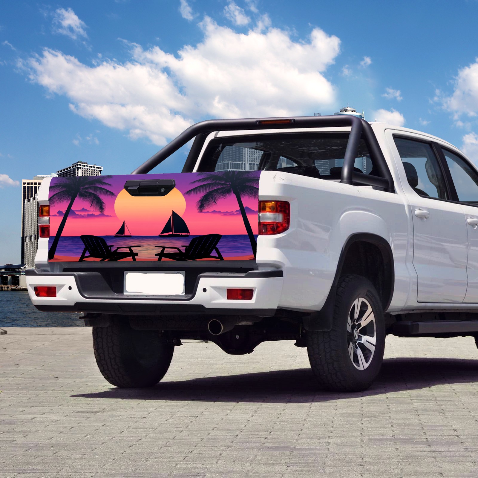 Tailgate Decals for Trucks - Vinyl Graphic Stickers with Purple Pink Sunset Sailboat Design for Pickup Tailgate Wrap (58x24in)