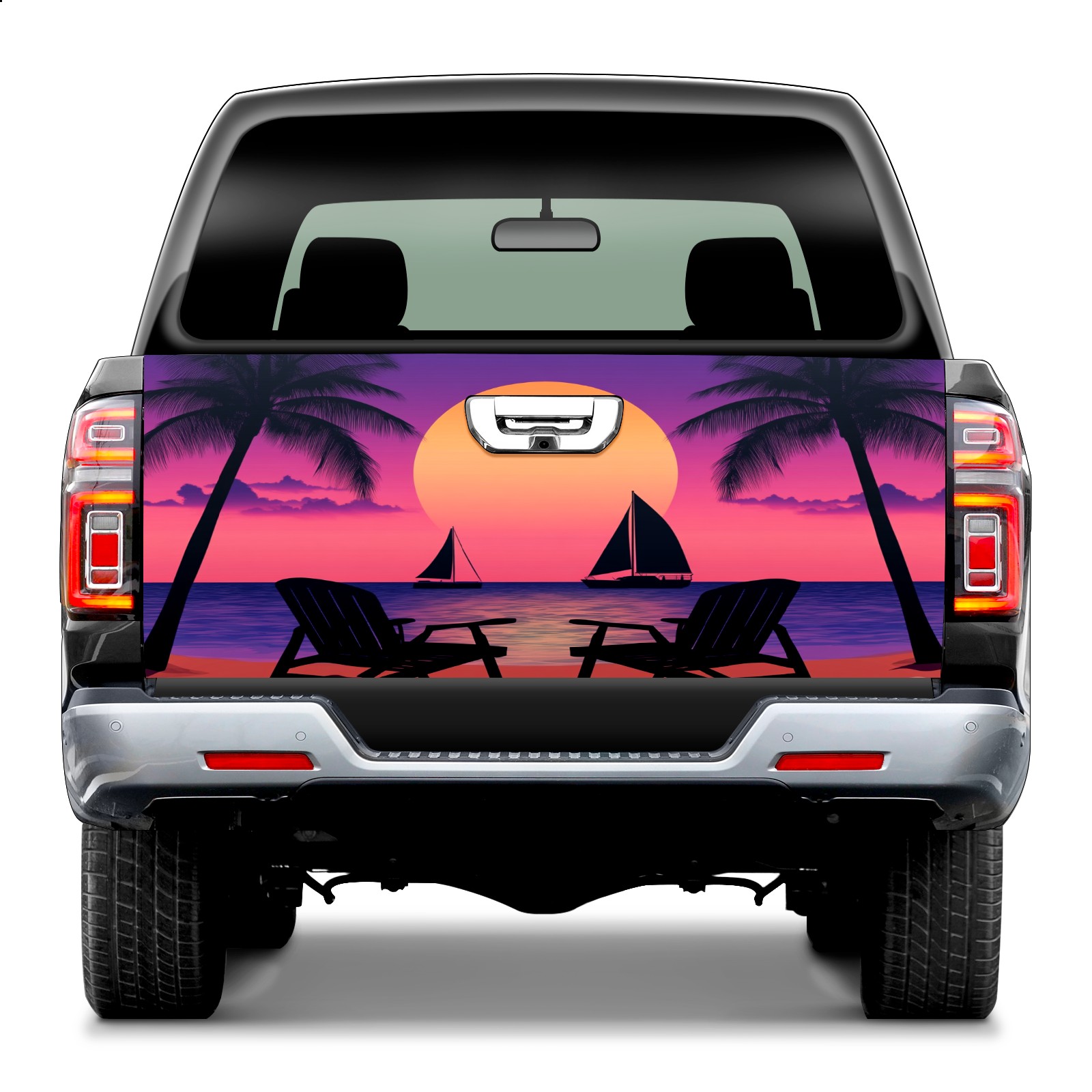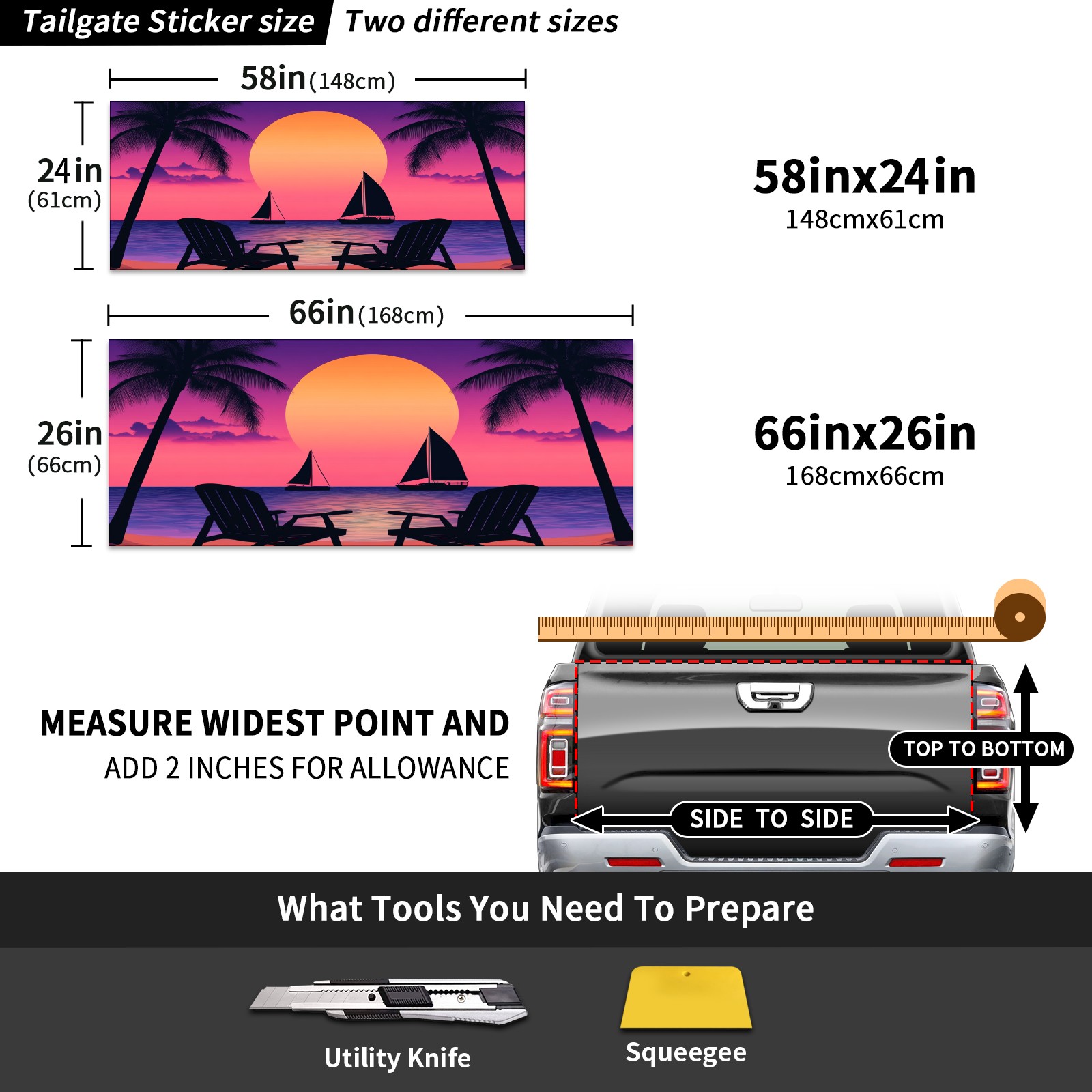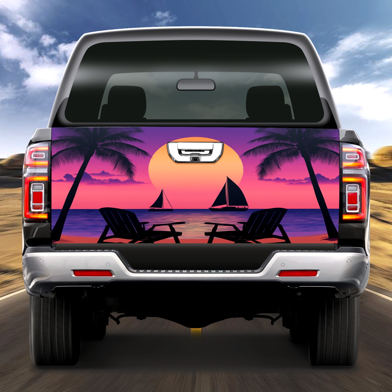 Tailgate Decals for Trucks - Vinyl Graphic Stickers with Purple Pink Sunset Sailboat Design for Pickup Tailgate Wrap (58x24in)