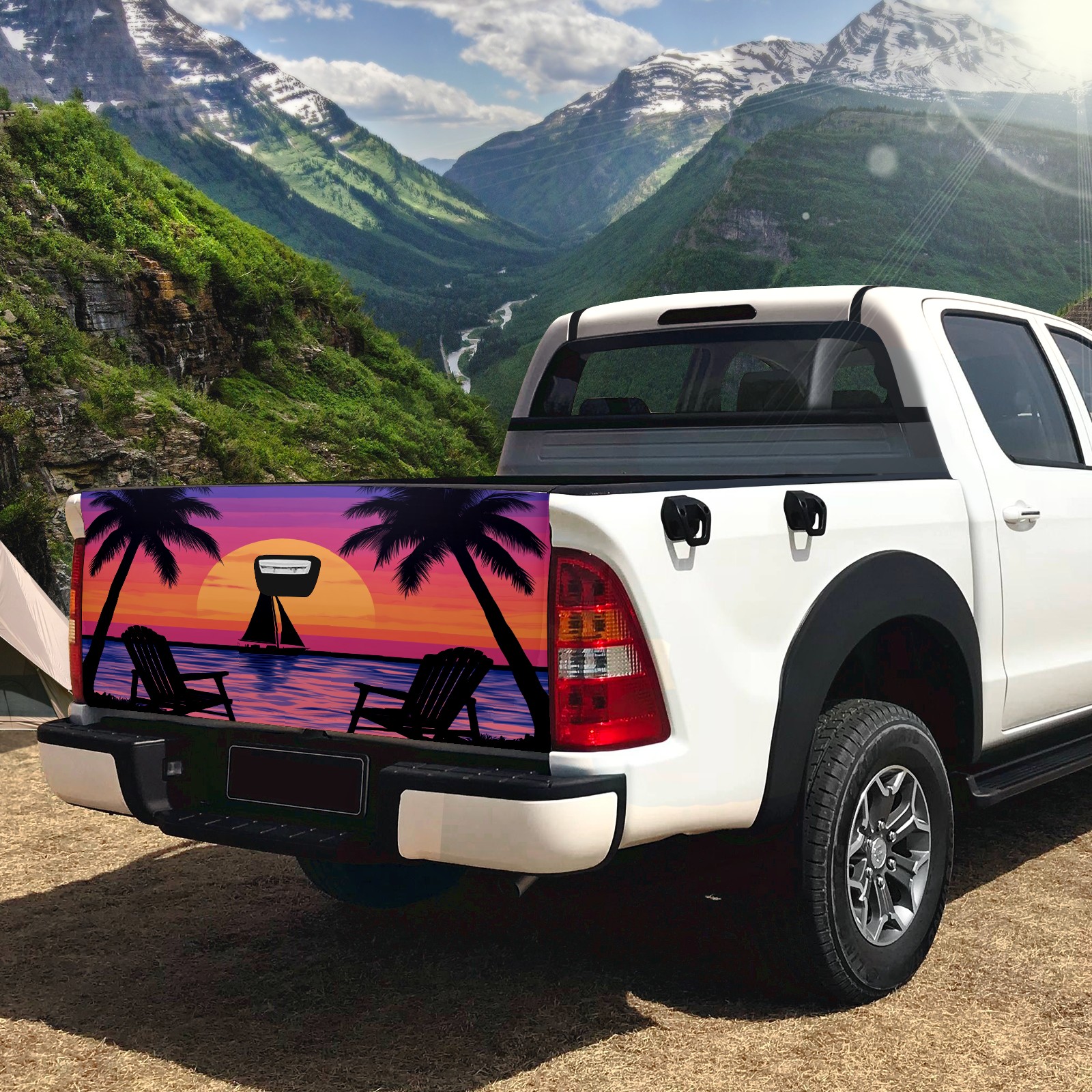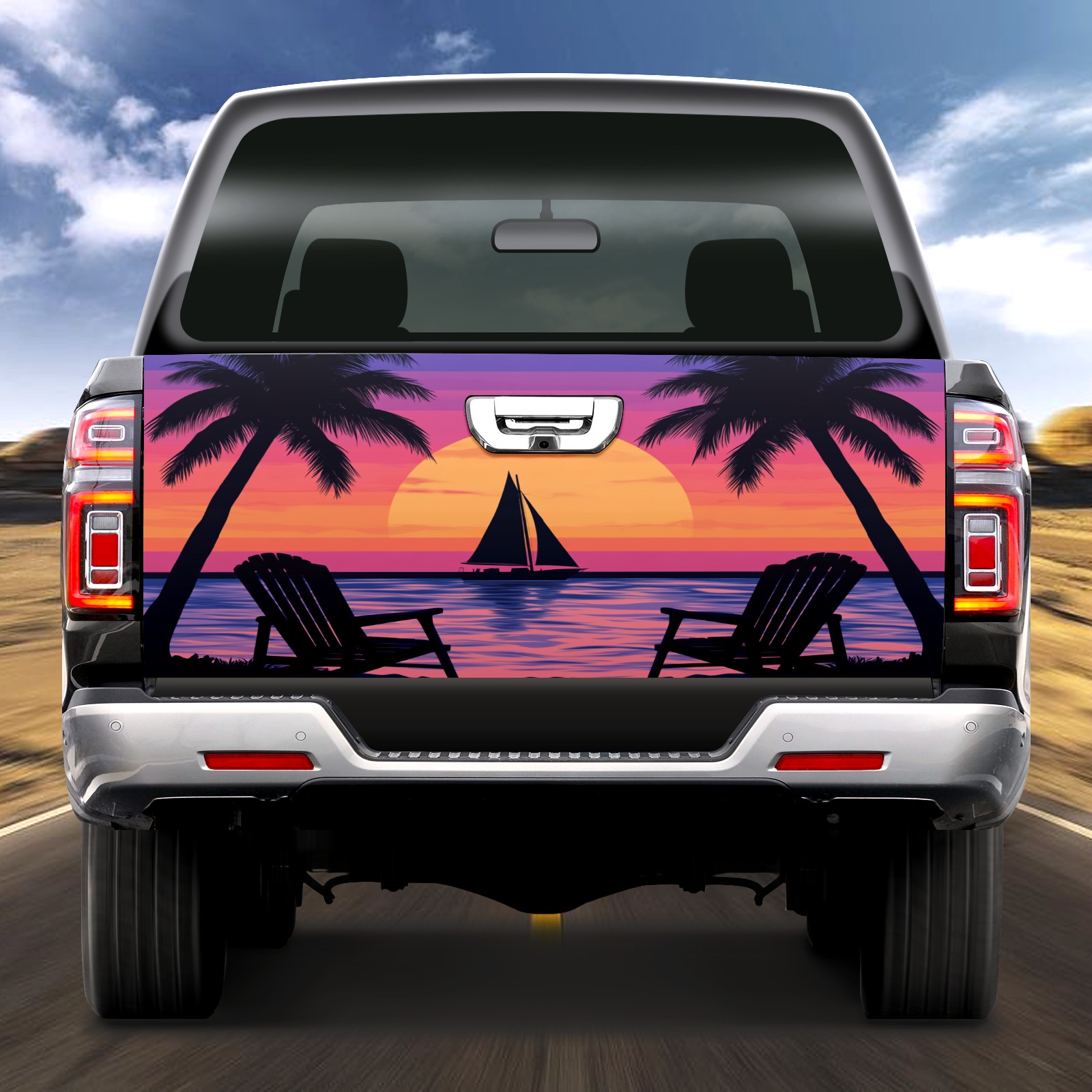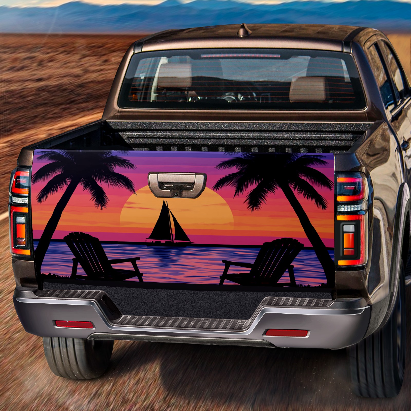 Tailgate Decals for Trucks - Vinyl Graphic Stickers with Purple Orange Sunset Sailboat Design for Pickup Tailgate Wrap (58x24in)