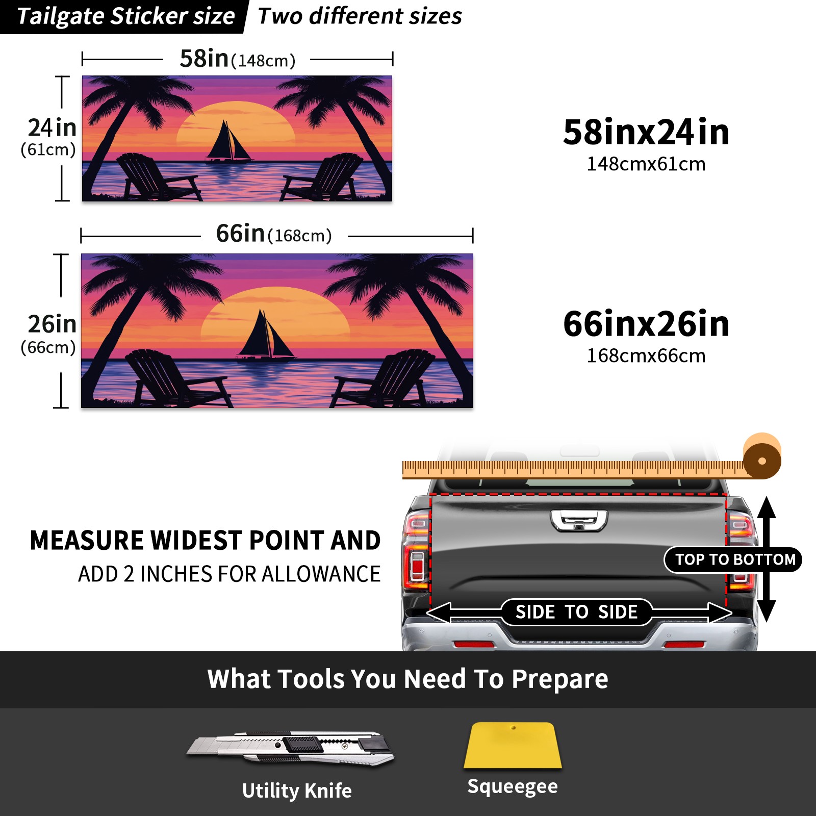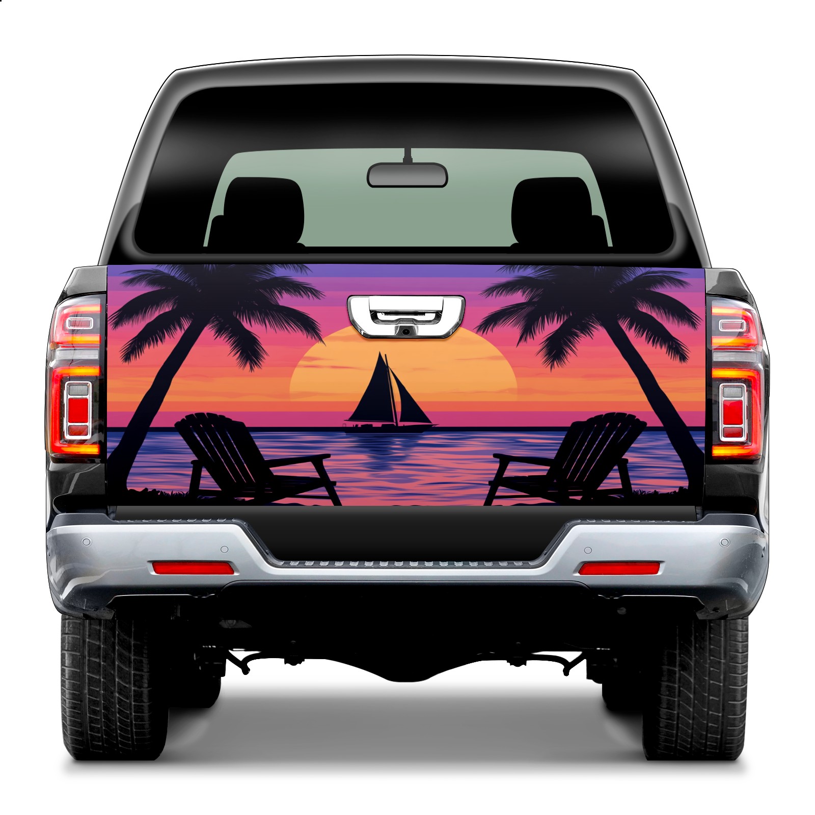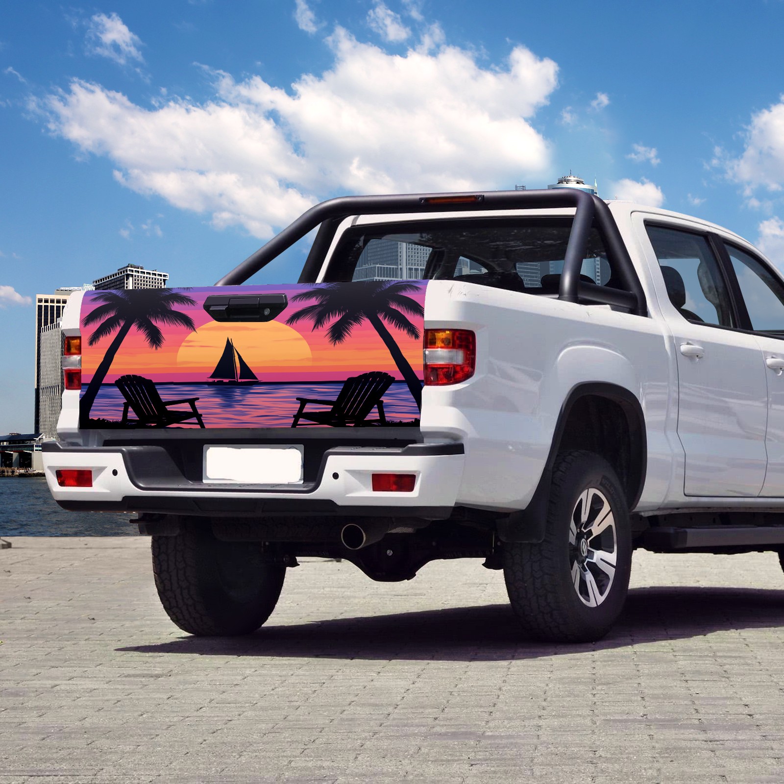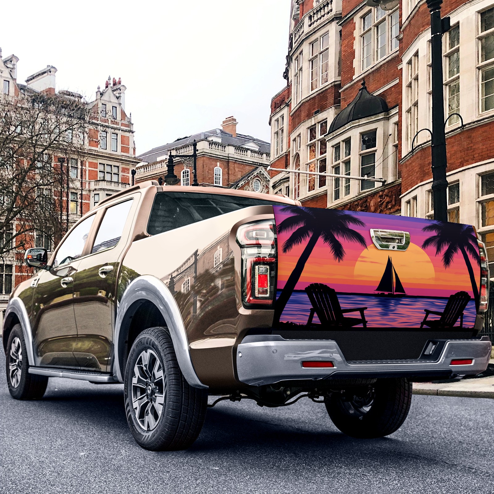 Tailgate Decals for Trucks - Vinyl Graphic Stickers with Purple Orange Sunset Sailboat Design for Pickup Tailgate Wrap (58x24in)