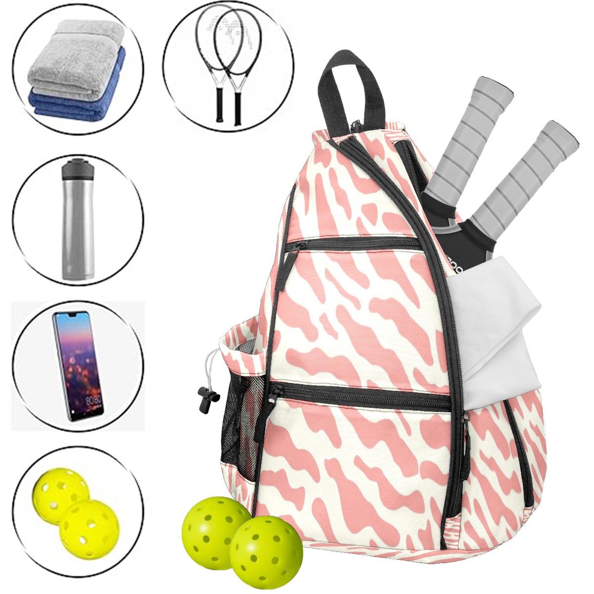 <p>This multifunctional pickleball Bag is made of lightweight and durable nylon fabric, which is lightweight yet has a large capacity, making it easy to store all equipment. Adjustable shoulder strap design supports multiple carrying modes on one shoulder and both shoulders, adapting to left and right hand habits; Breathable mesh back pad+waterproof fabric, balancing comfort and protection. The safety pocket and mesh hook design make access more convenient. Whether it's competition training, daily commuting, or as a gift, it's an ideal choice that combines practicality and aesthetics!</p>