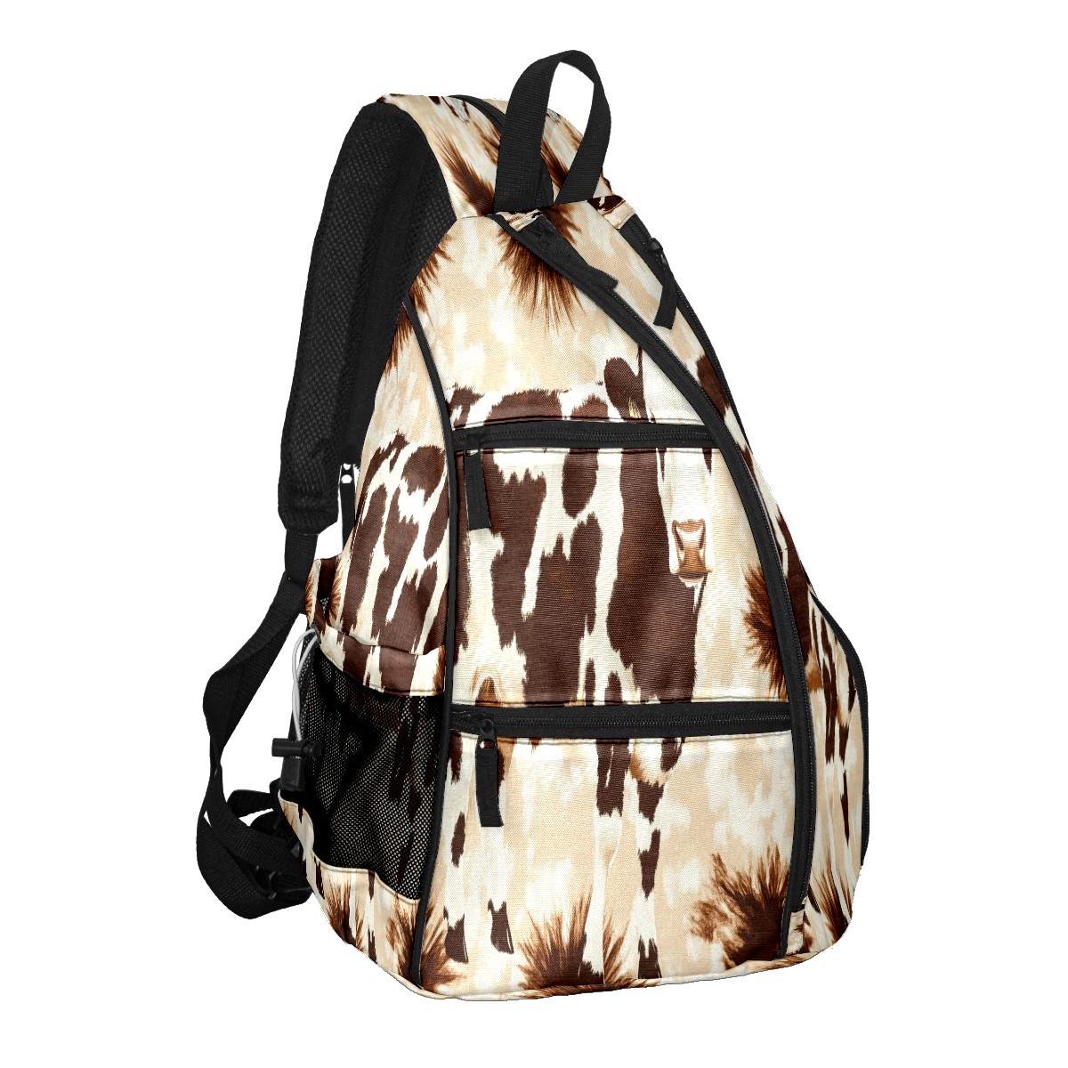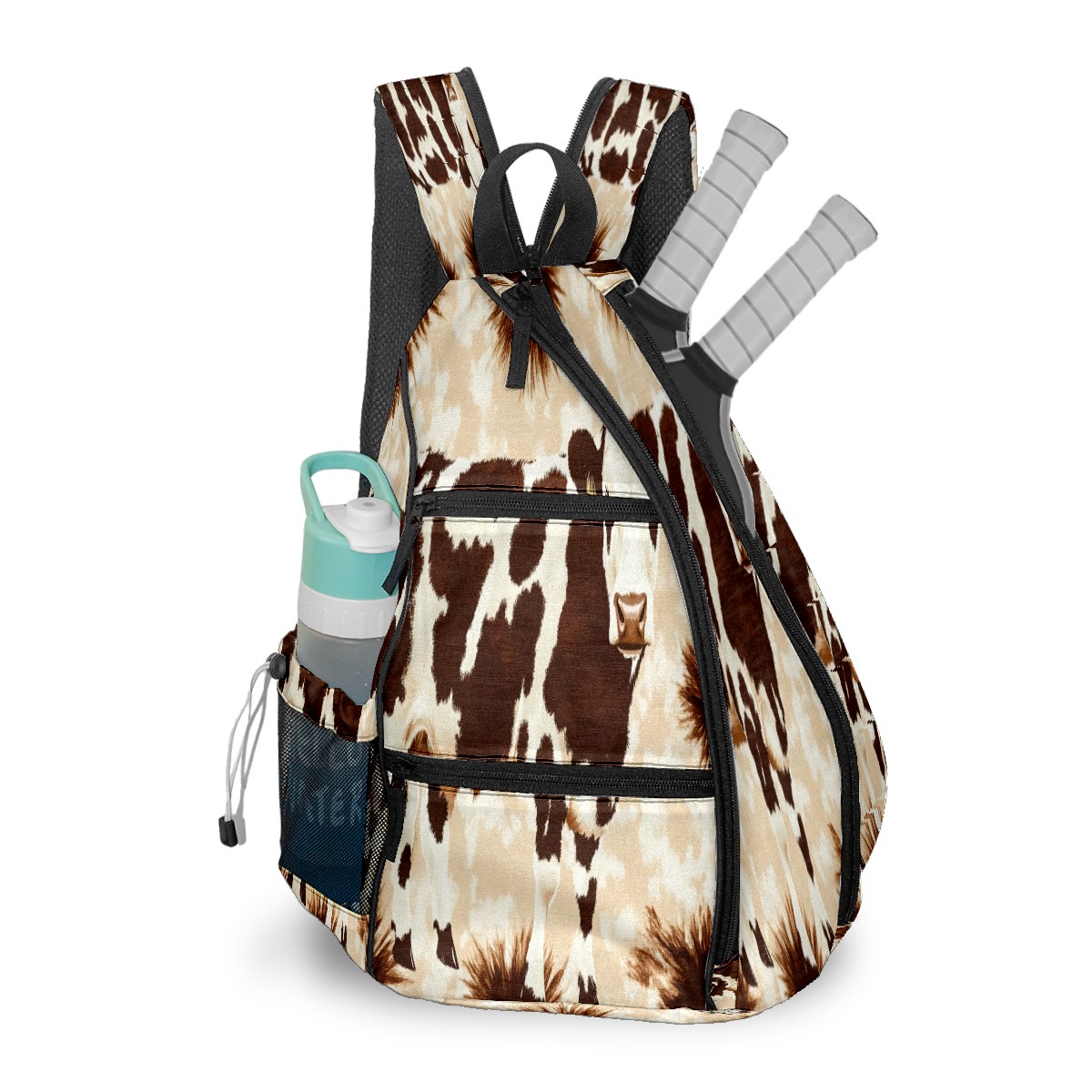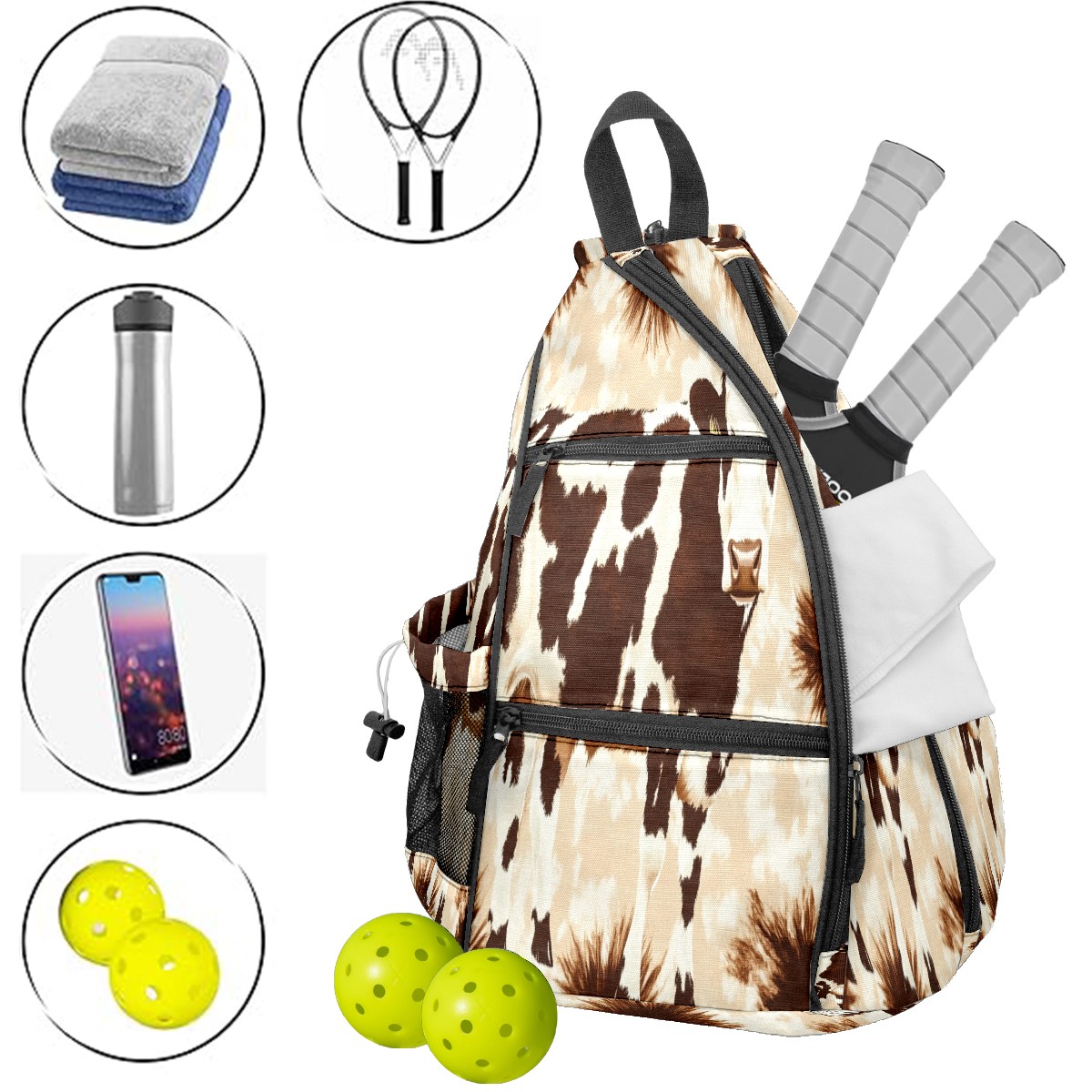 Pickleball Bags for Men Women Backpack with Large Capacity Lightweight Adjustable Pickle ball Sling Bag Hold Paddles, Balls, Accessories Cow Pattern