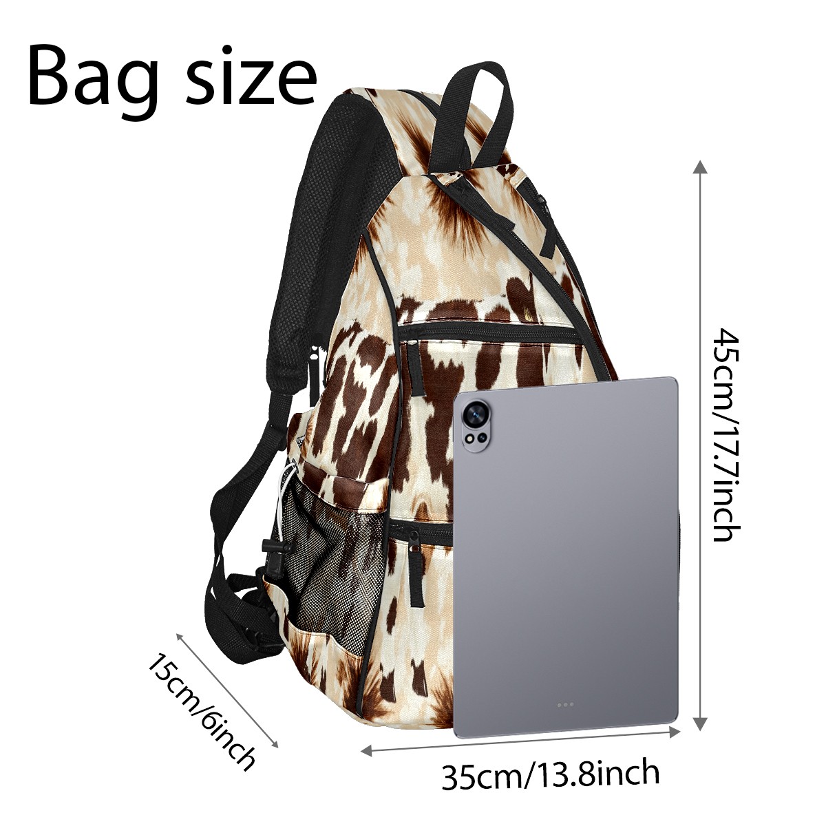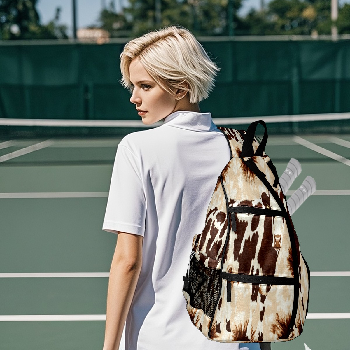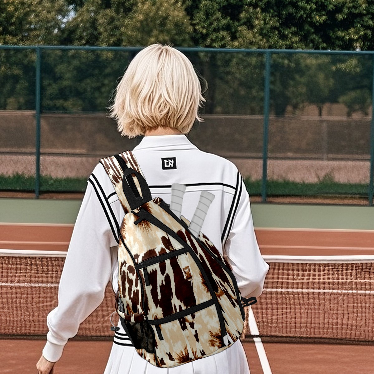 Pickleball Bags for Men Women Backpack with Large Capacity Lightweight Adjustable Pickle ball Sling Bag Hold Paddles, Balls, Accessories Cow Pattern