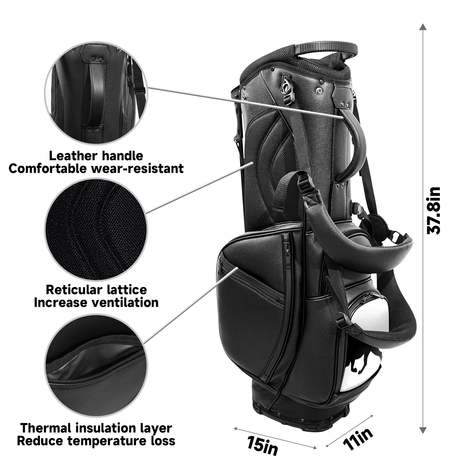 <p>Featuring a 5 top with full-length dividers, our golf stand bag prevents club tangling and scratches. The independent full-size club compartments ensure each club stays secure and protected from damage.Adjustable Shoulder Straps, reducing shoulder pressure while maximizing comfort. this golf club bag is both waterproof and durable,it combines practicality, durability, and style—making it the perfect choice for golfers who demand the best.tay prepared for any conditions with the included rain cover and waterproof zippered pockets.Elevate your golfing experience with our Premium Golf Stand Bag, designed for ultimate comfort, convenience, and club protection. Whether you're a casual player or a seasoned pro, this bag offers the perfect blend of functionality and style to enhance your game.</p>