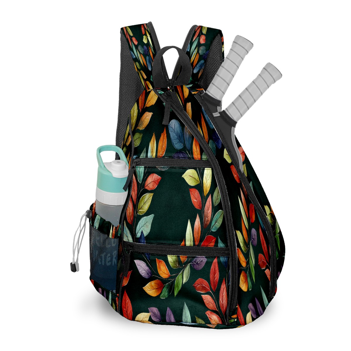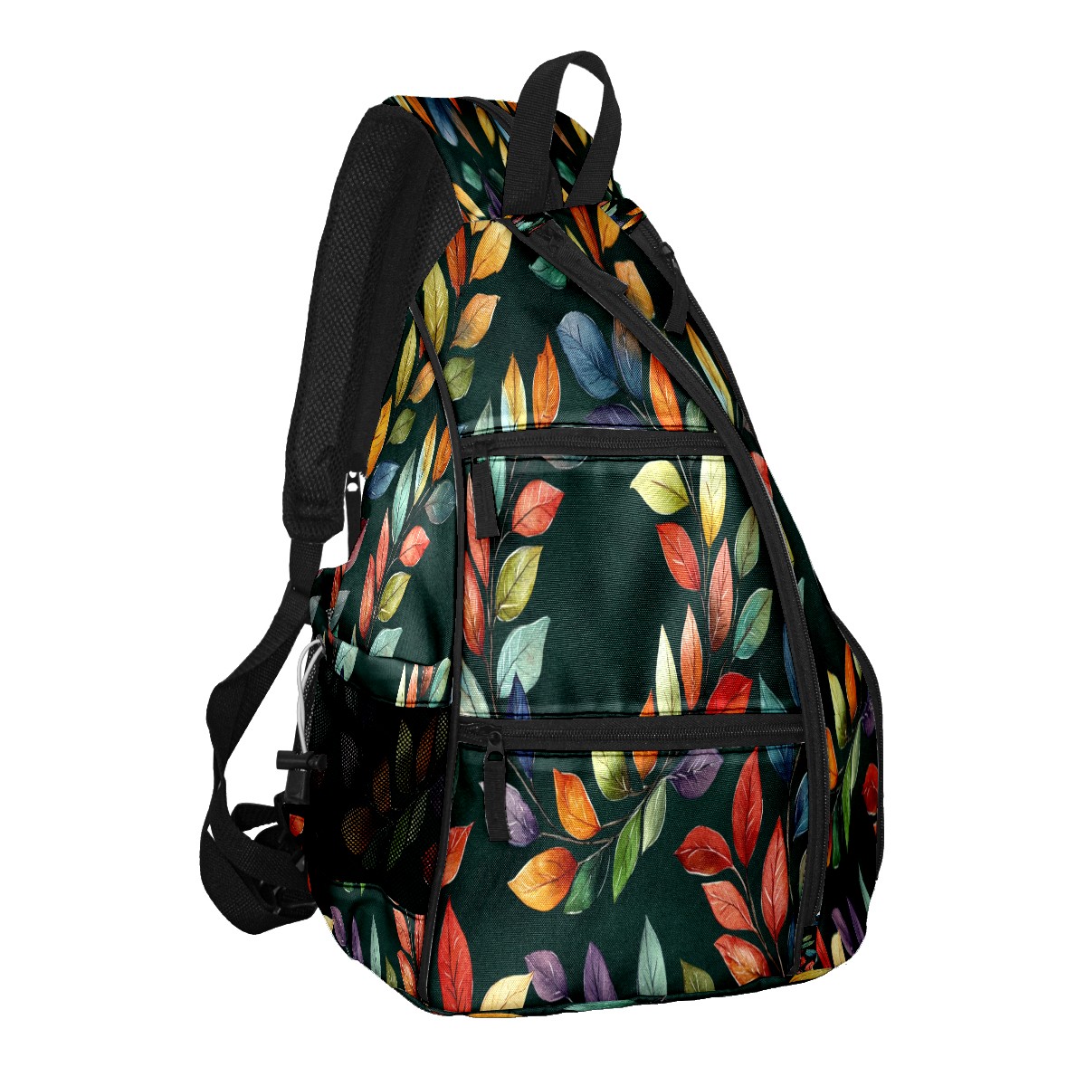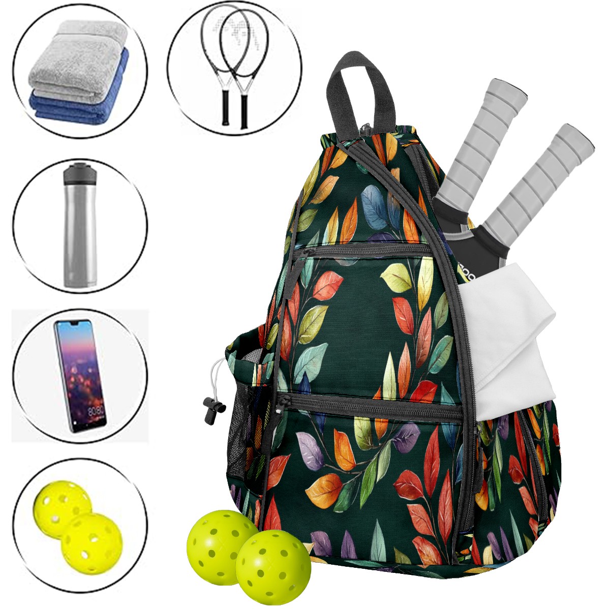 Pickleball Sling Bag for Women and Men - Backpack with Nylon Fabric/Woven Strap/Mesh Pocket/Fence Hook/Small Capacity/Adjustable Sling Bag Circular Wreaths