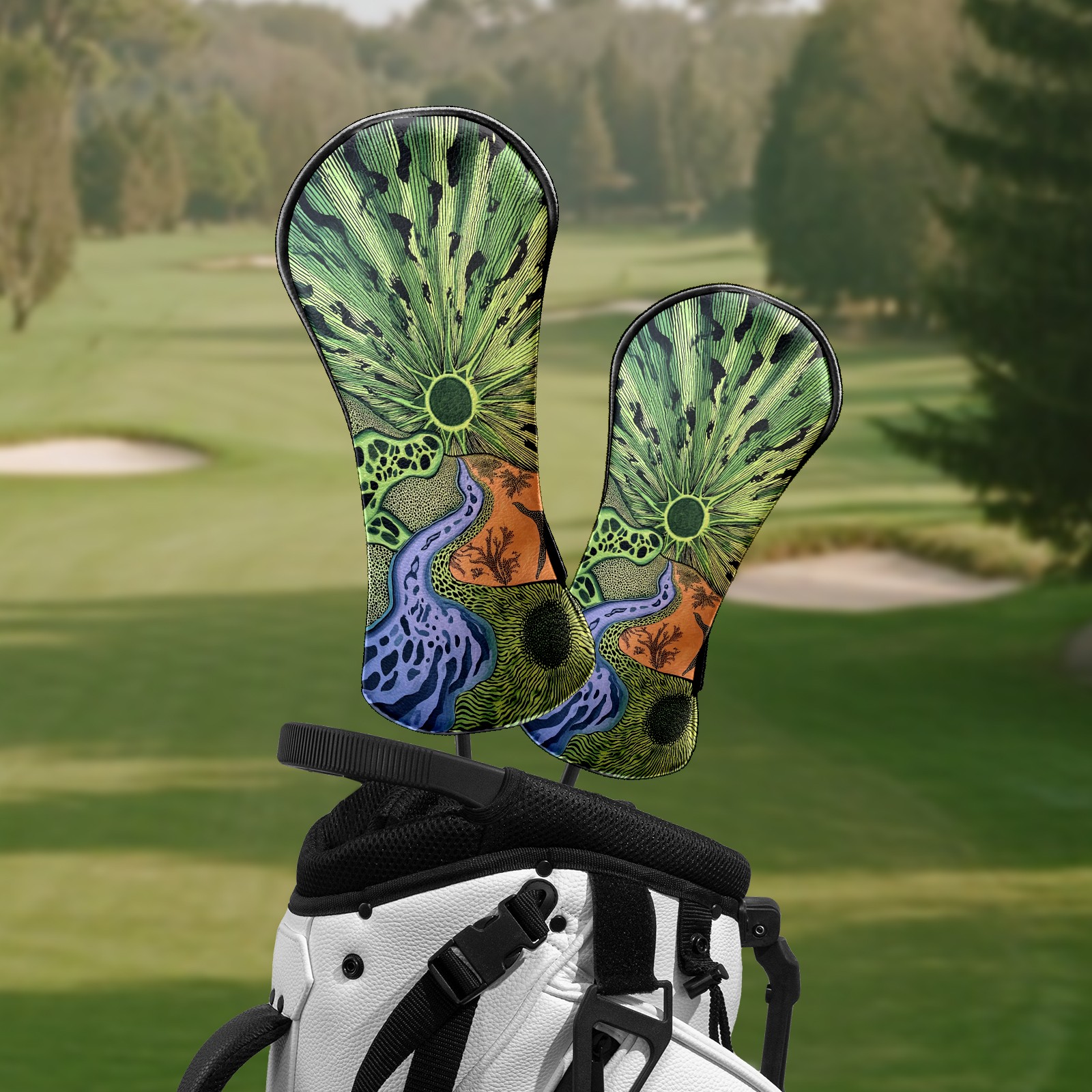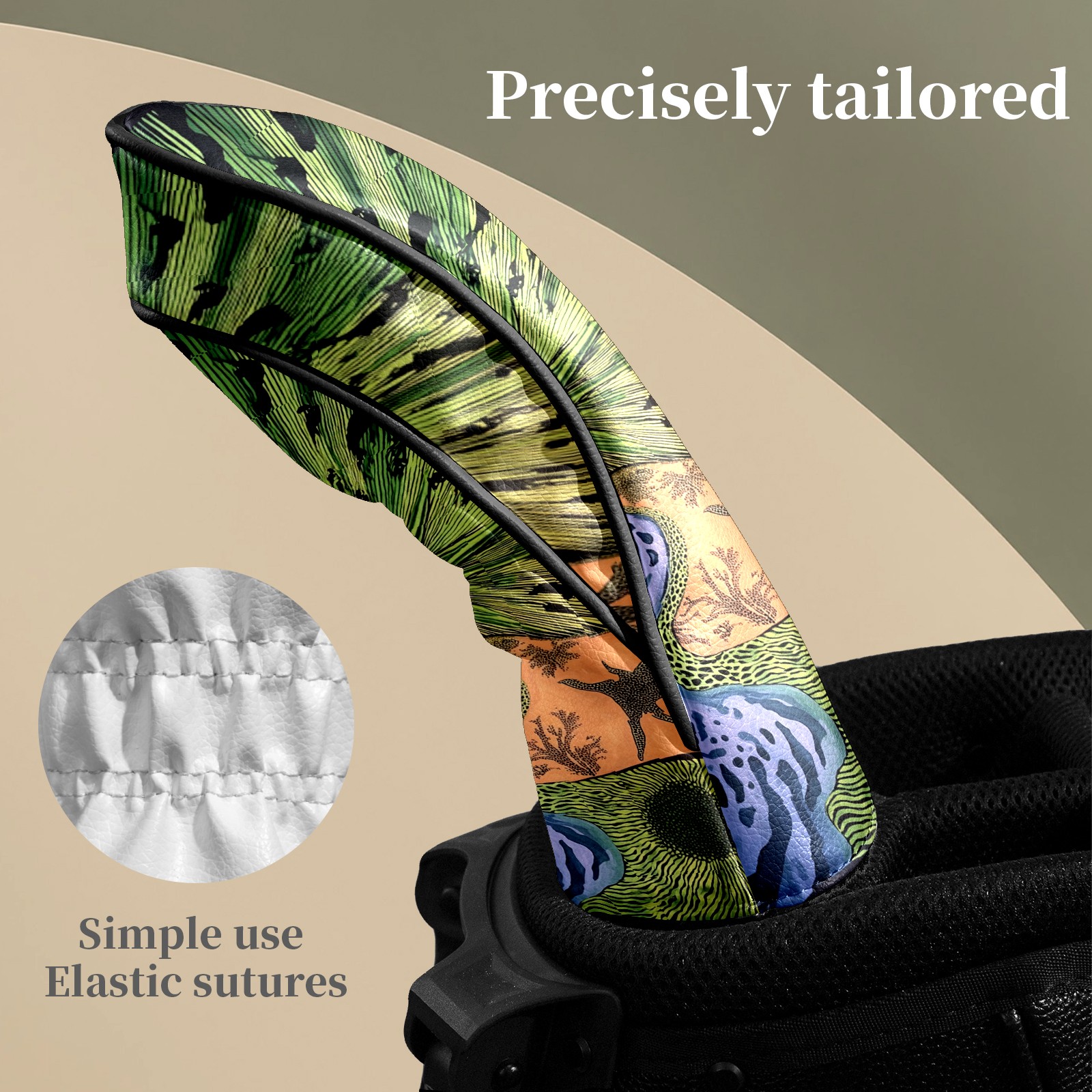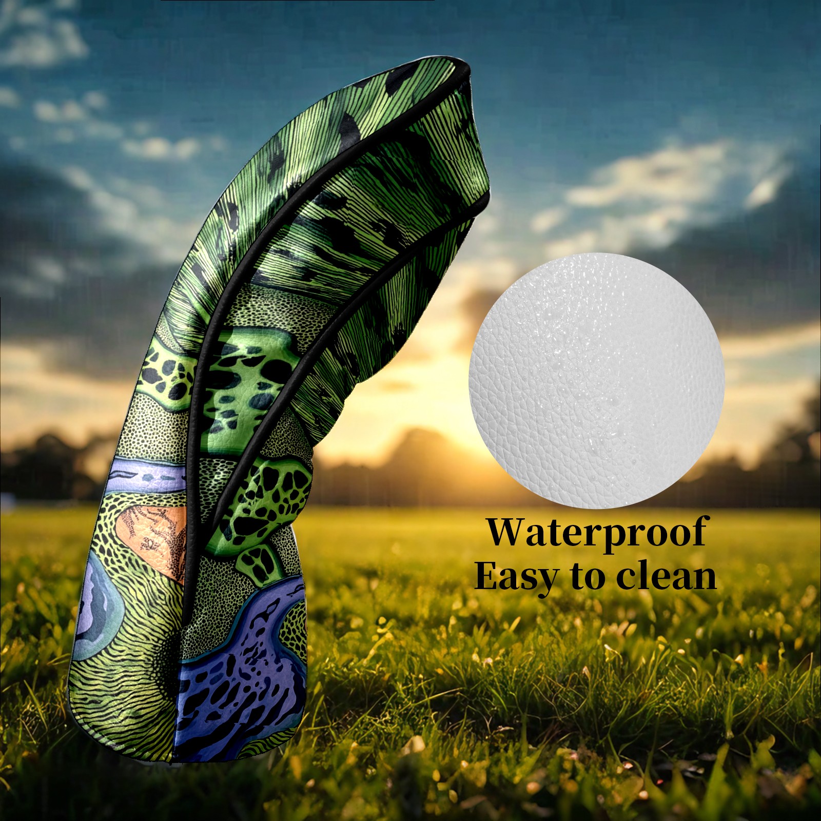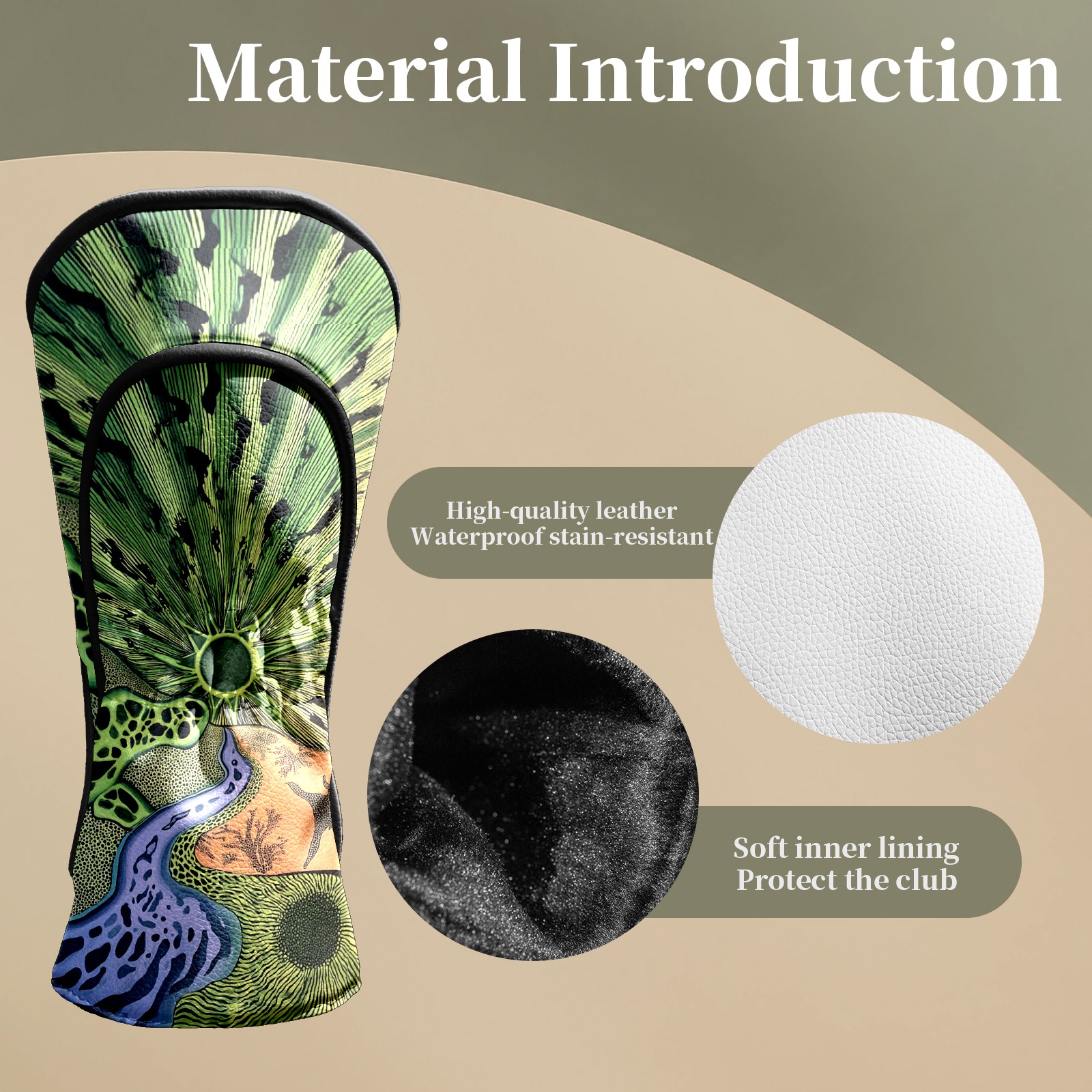Counullo Golf Head Covers - Peacock Abstract GreenBlue Driver Fairway Headcover, Durable PU Leather & Soft Velvet Lining, Secure Elastic Band, Perfect Christmas Golf Gift for Men