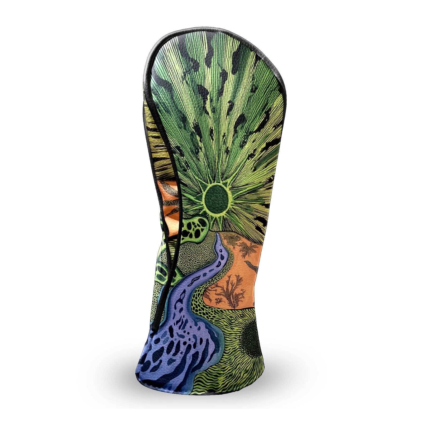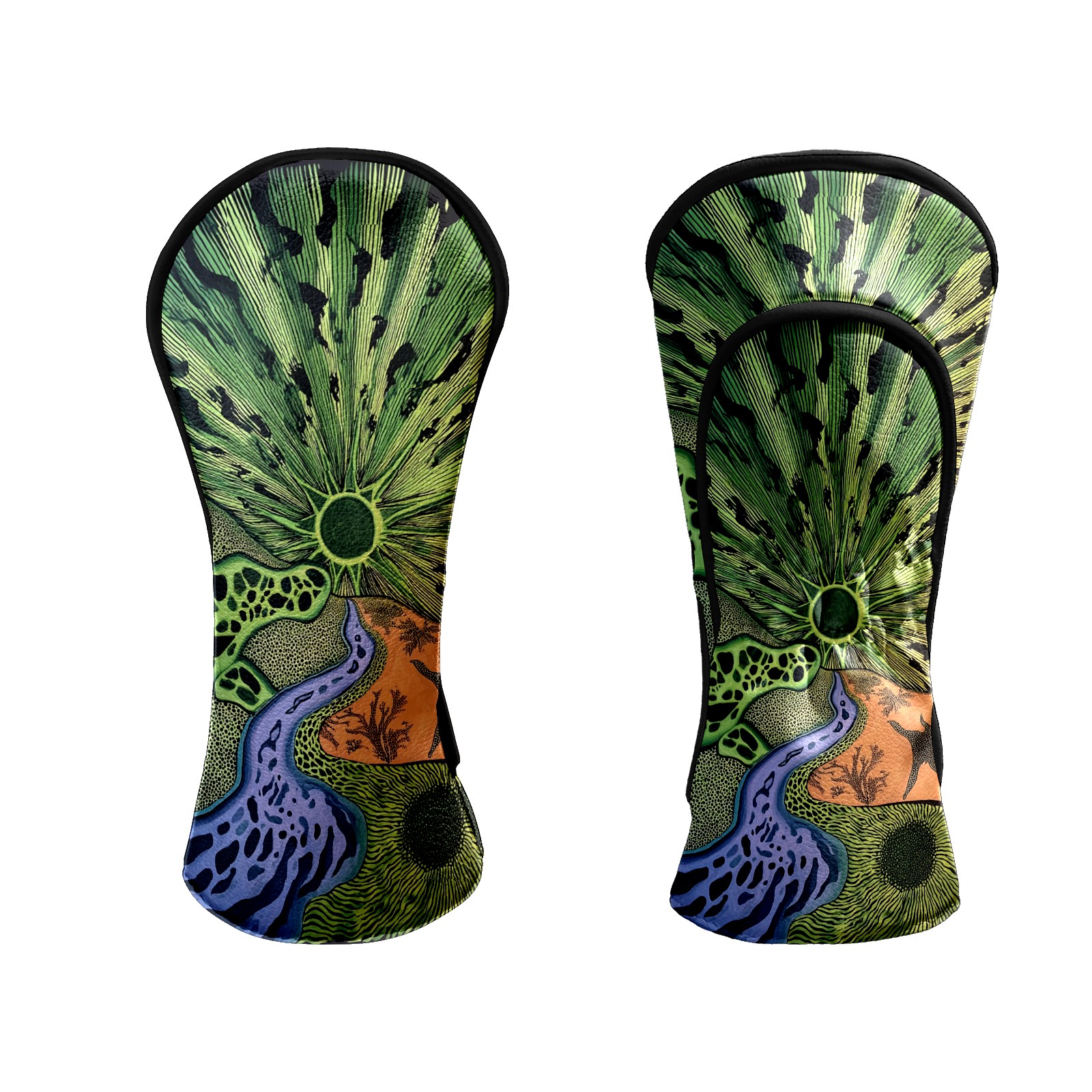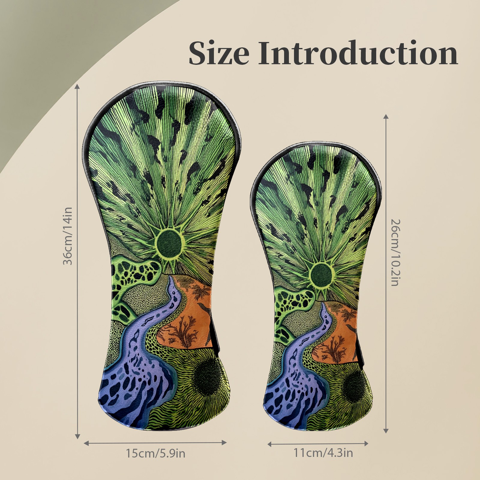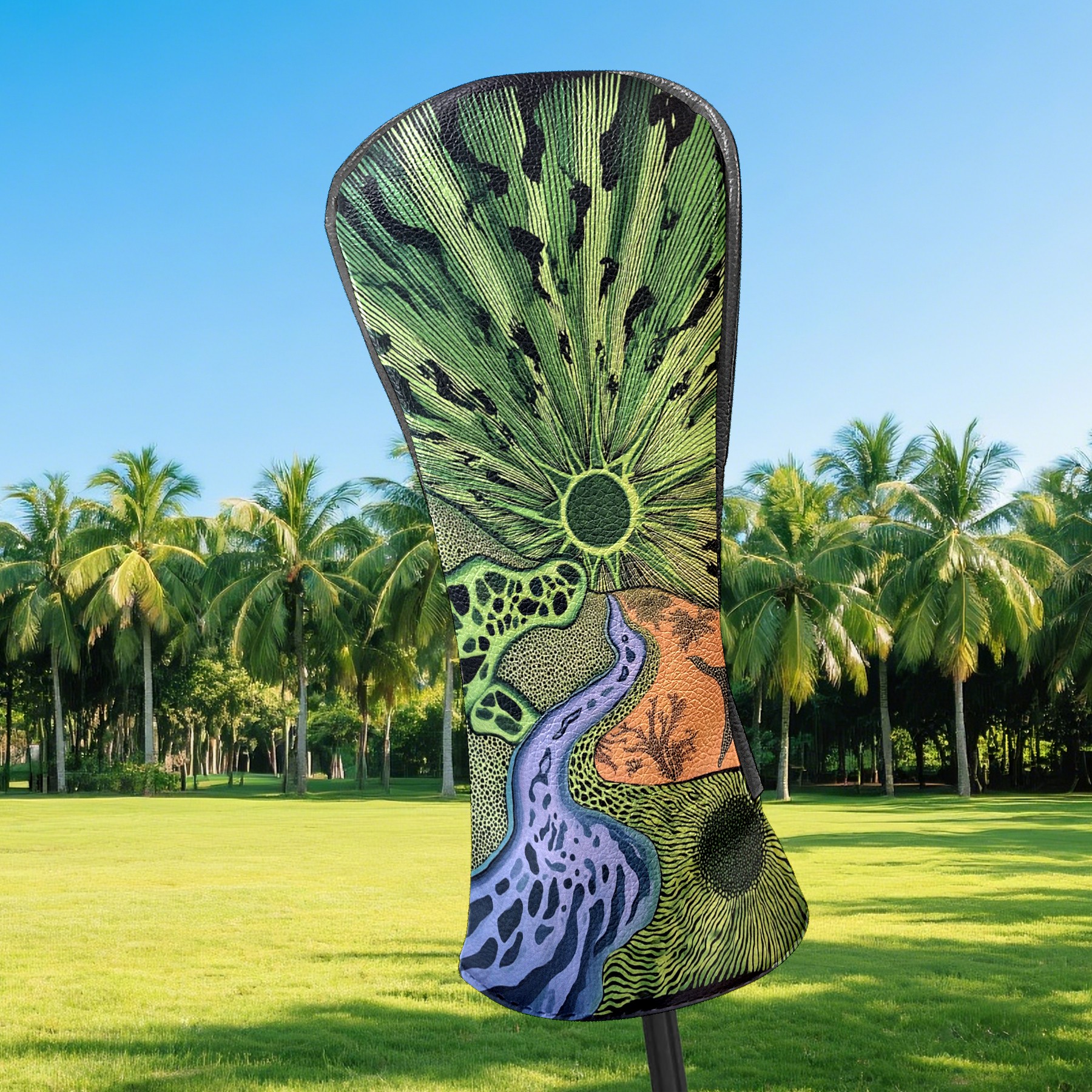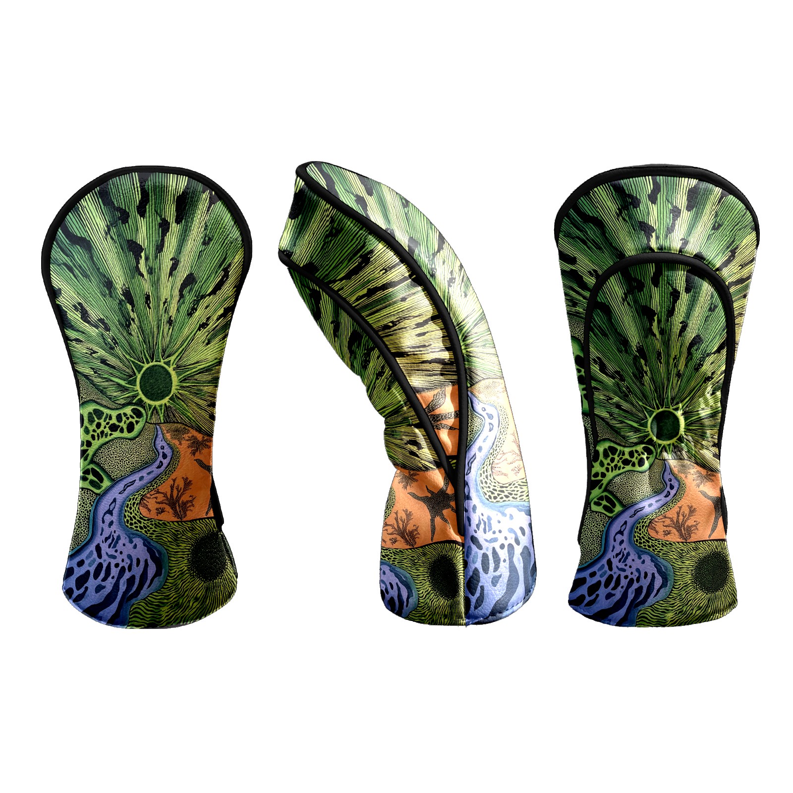 Counullo Golf Head Covers - Peacock Abstract GreenBlue Driver Fairway Headcover, Durable PU Leather & Soft Velvet Lining, Secure Elastic Band, Perfect Christmas Golf Gift for Men