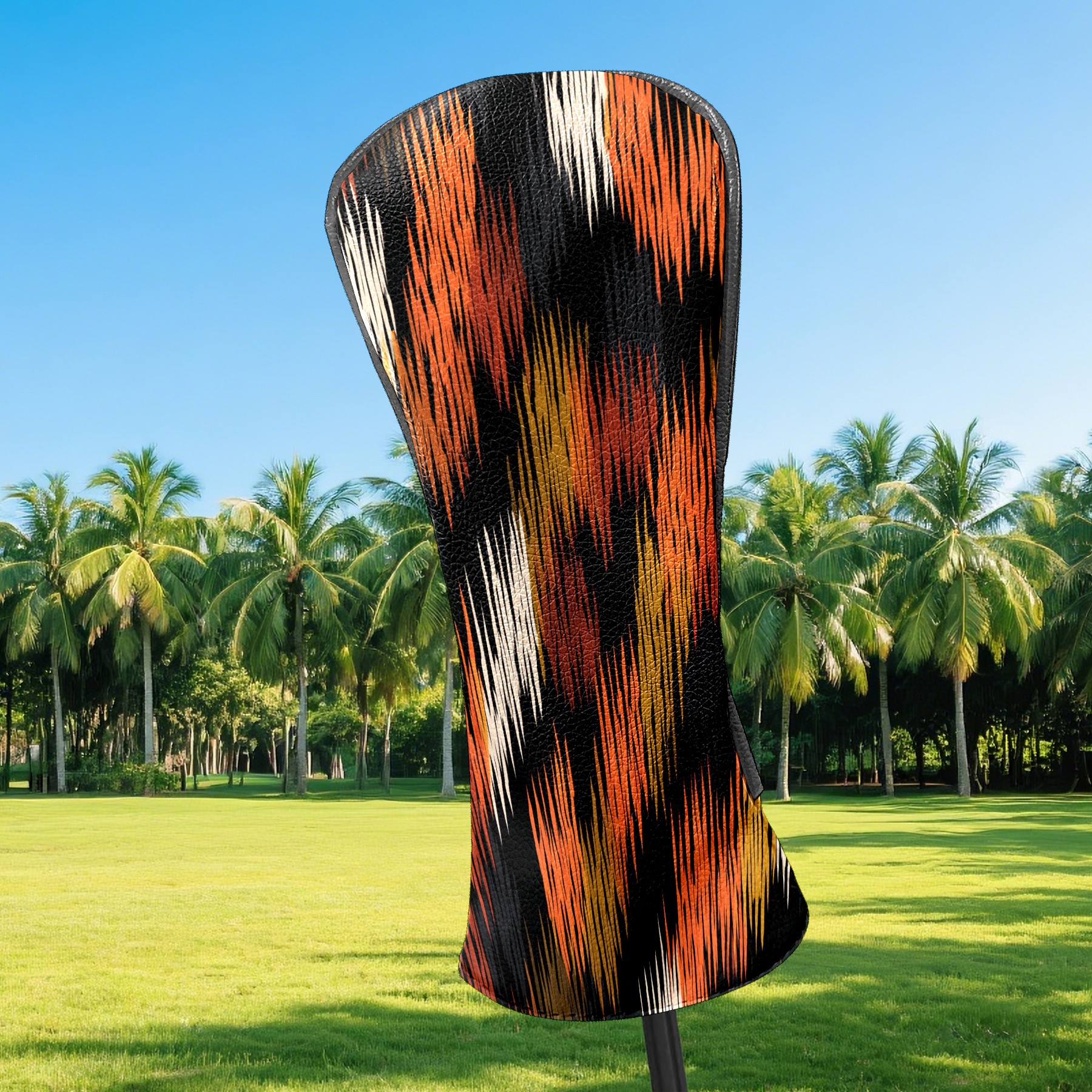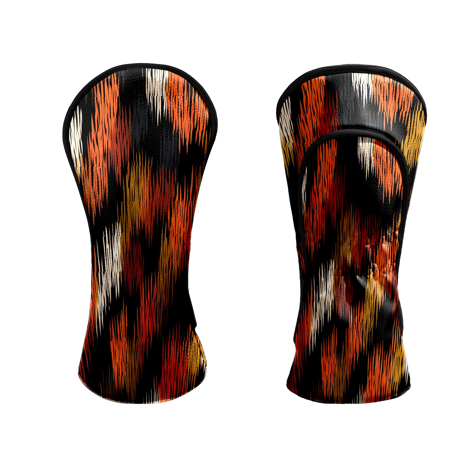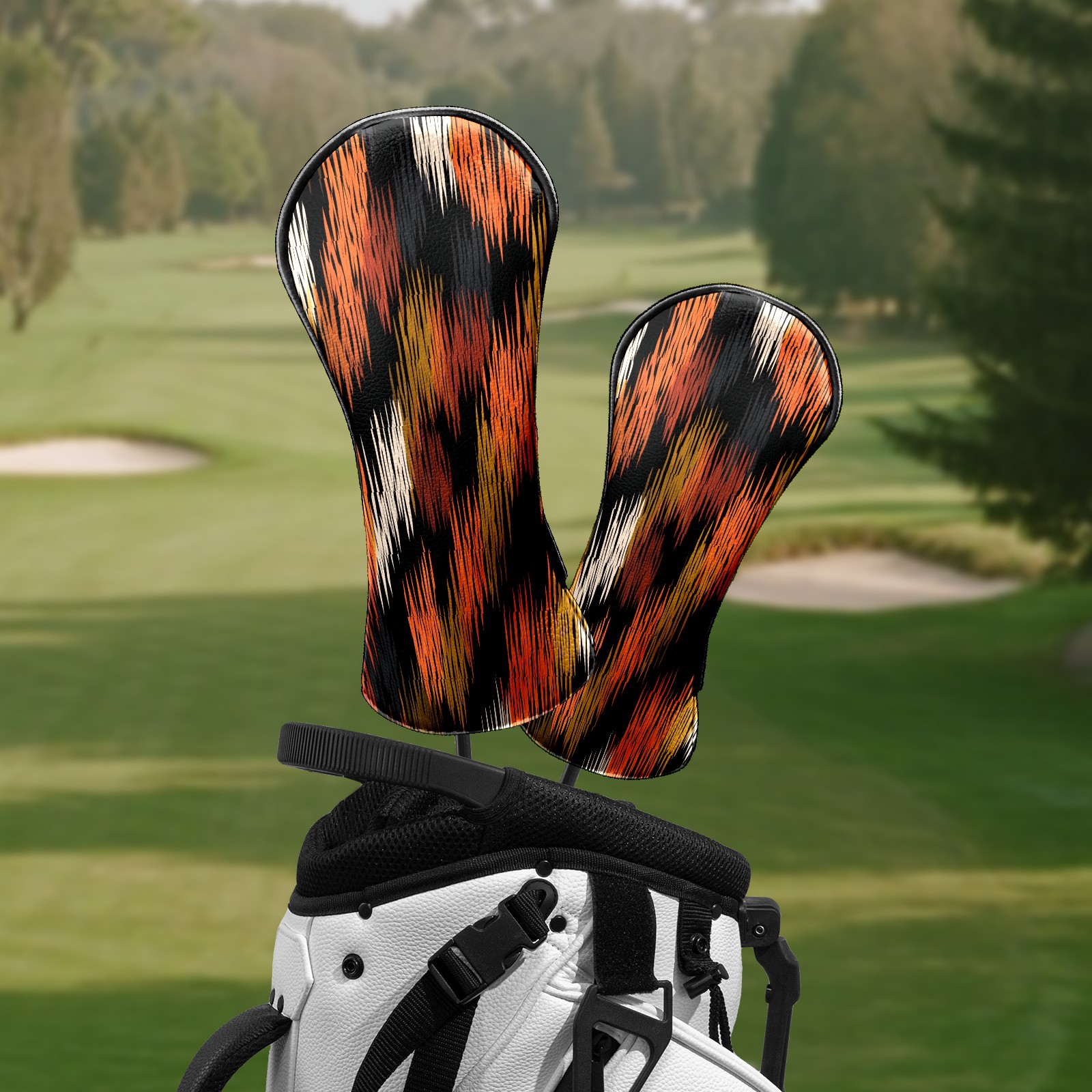 Counullo Golf Head Covers - Glitch Stripes BlackOrange Driver Fairway Headcover, Durable PU Leather & Soft Velvet Lining, Secure Elastic Band, Perfect Christmas Golf Gift for Men