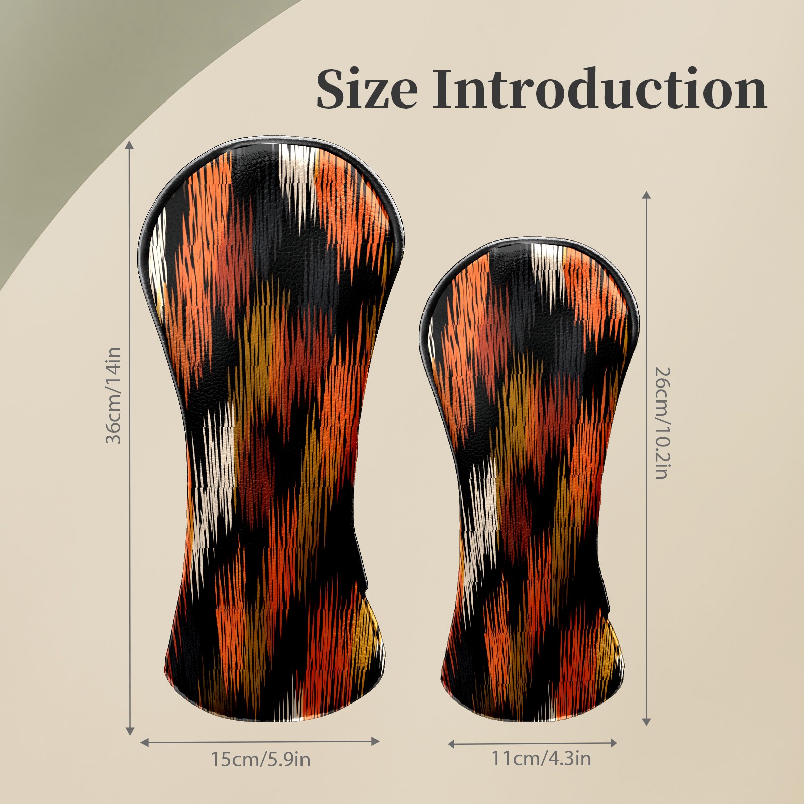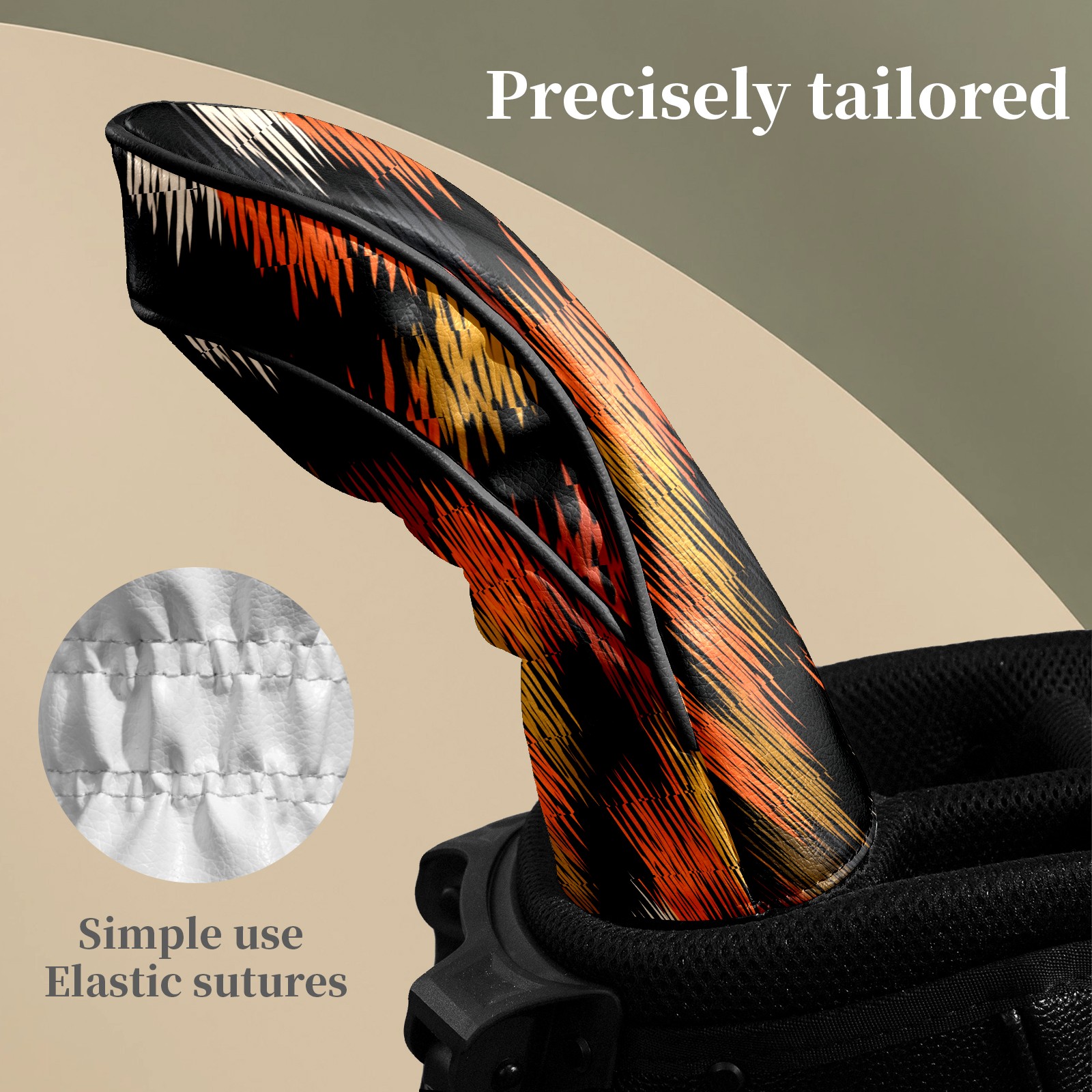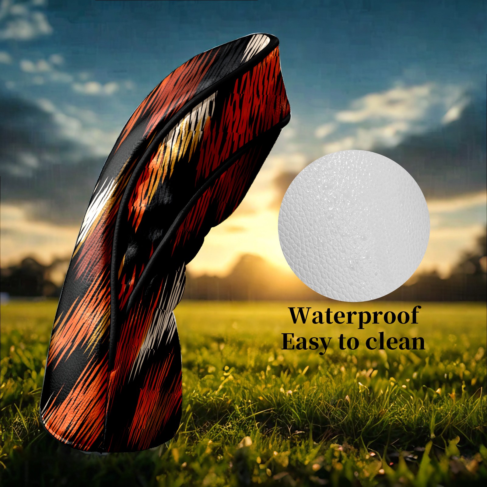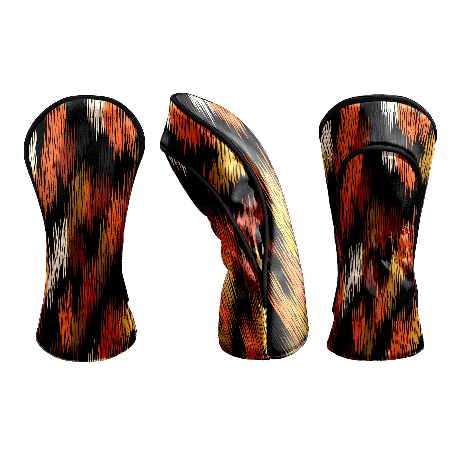 Counullo Golf Head Covers - Glitch Stripes BlackOrange Driver Fairway Headcover, Durable PU Leather & Soft Velvet Lining, Secure Elastic Band, Perfect Christmas Golf Gift for Men