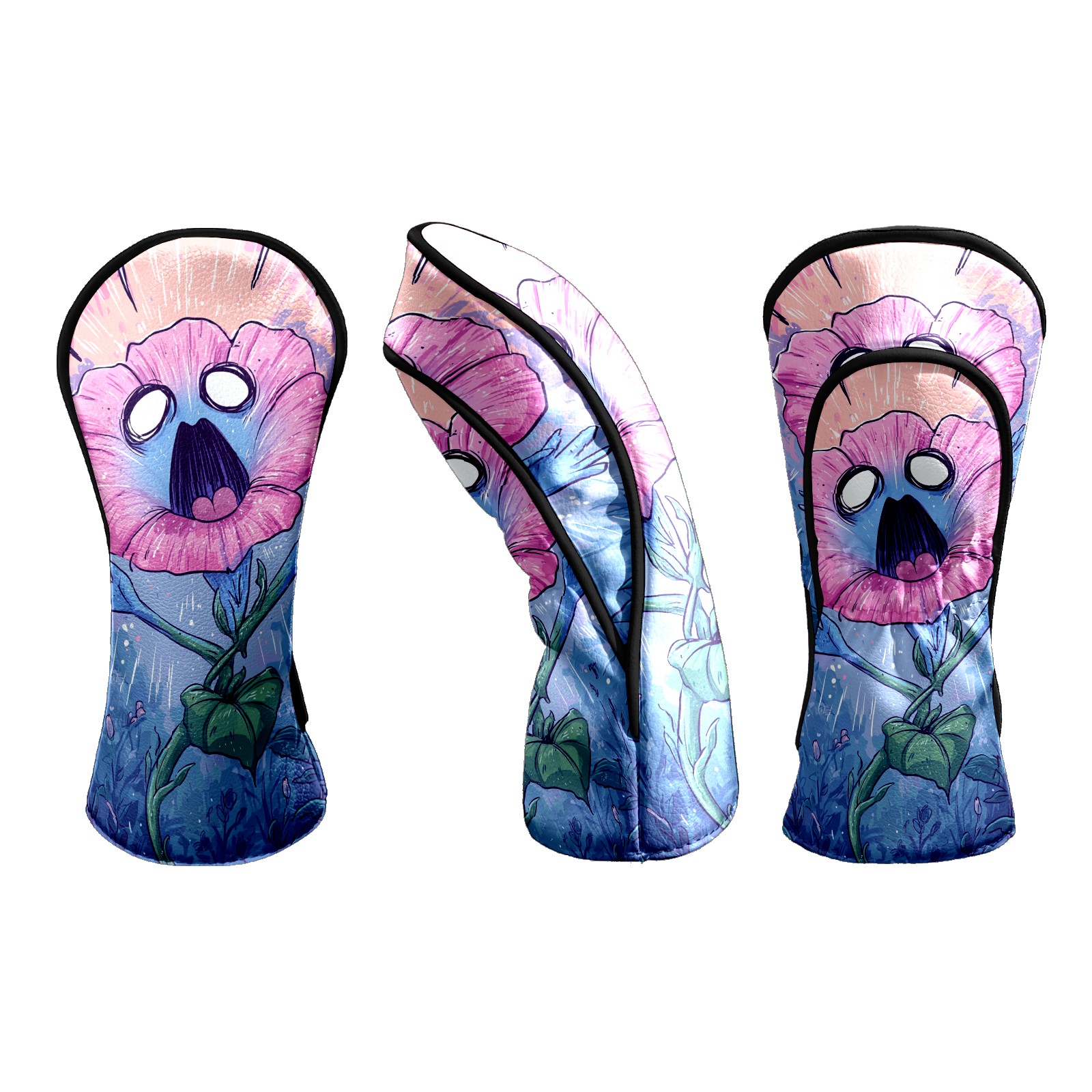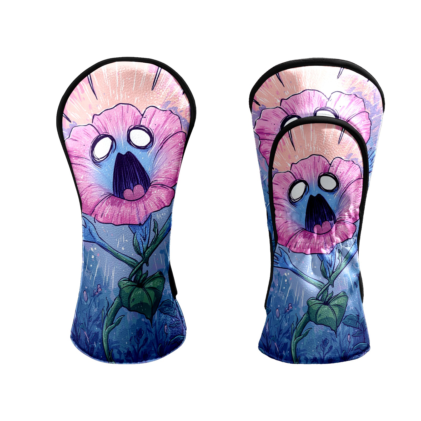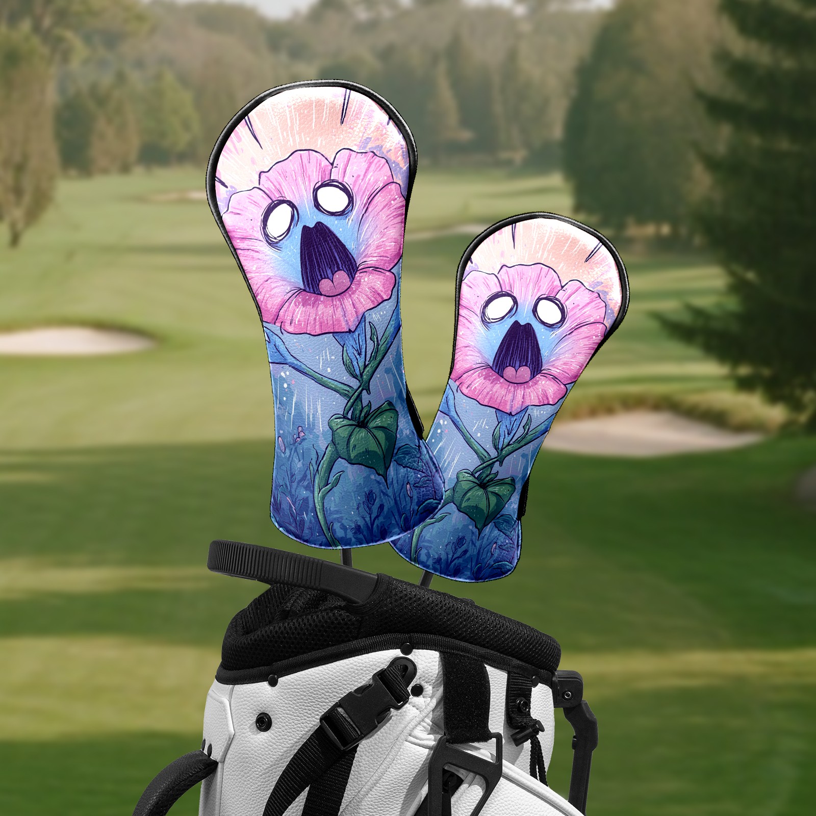 Counullo Golf Head Covers - Screaming Flower BluePink Driver Fairway Headcover, Durable PU Leather & Soft Velvet Lining, Secure Elastic Band, Perfect Christmas Golf Gift for Men