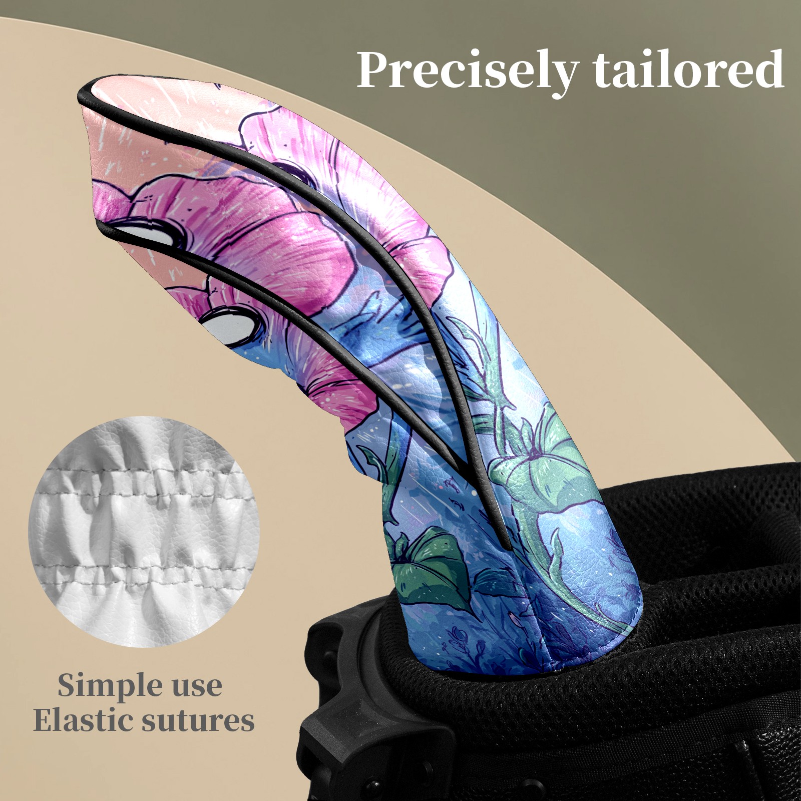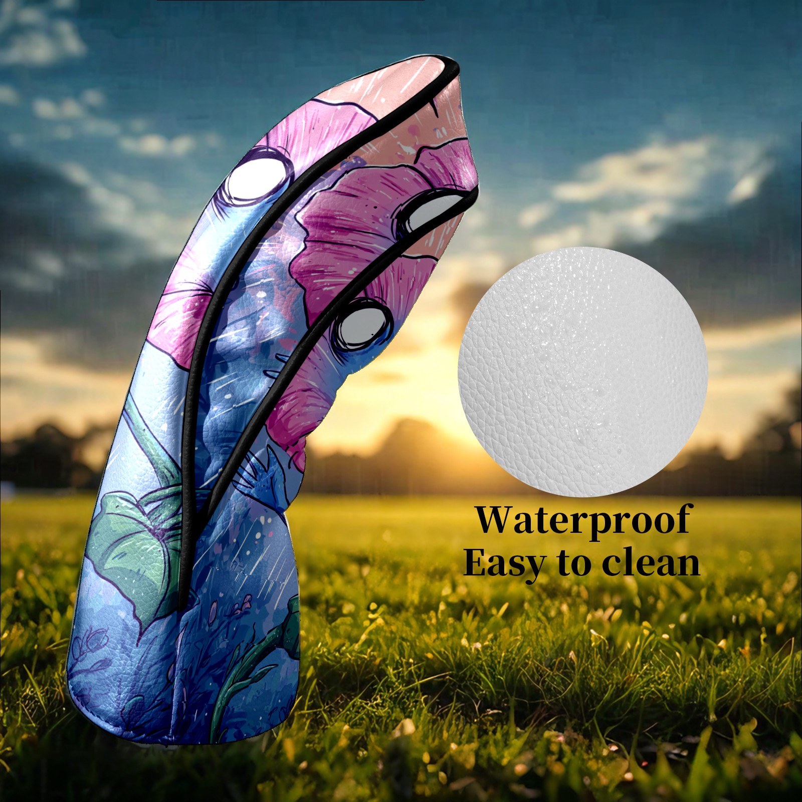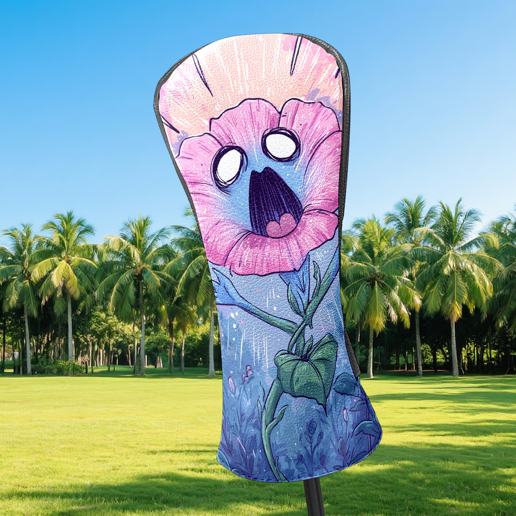 Counullo Golf Head Covers - Screaming Flower BluePink Driver Fairway Headcover, Durable PU Leather & Soft Velvet Lining, Secure Elastic Band, Perfect Christmas Golf Gift for Men