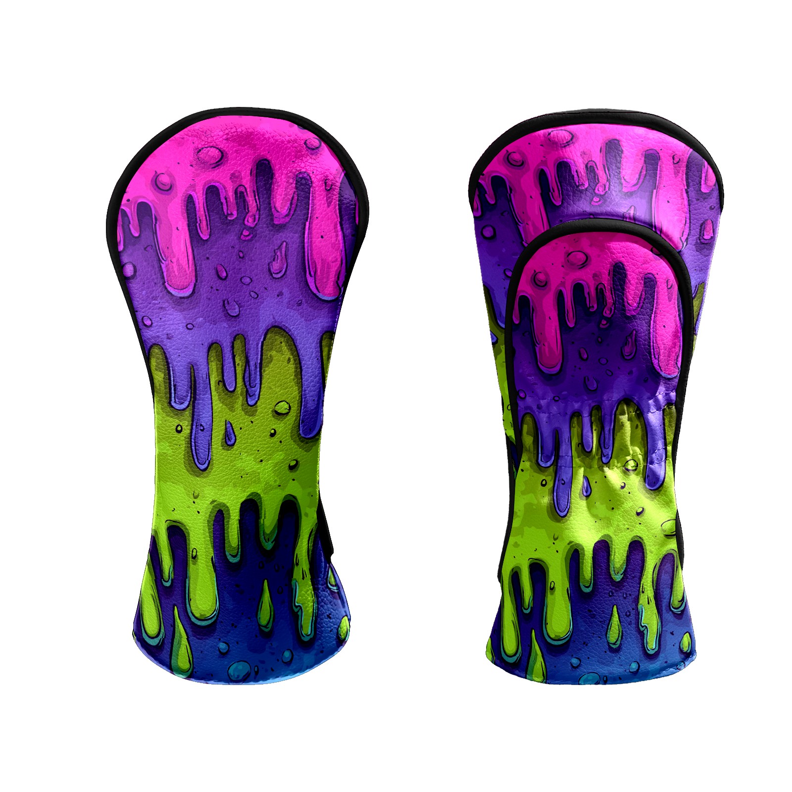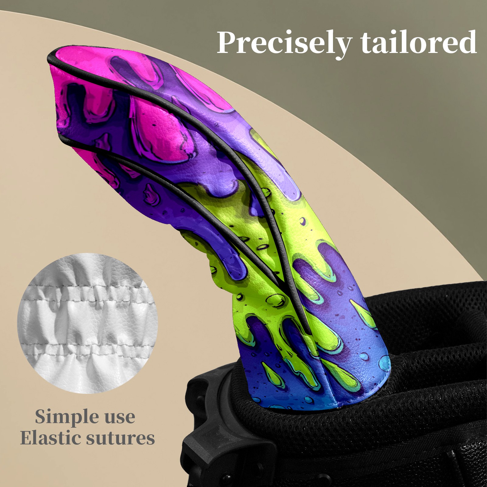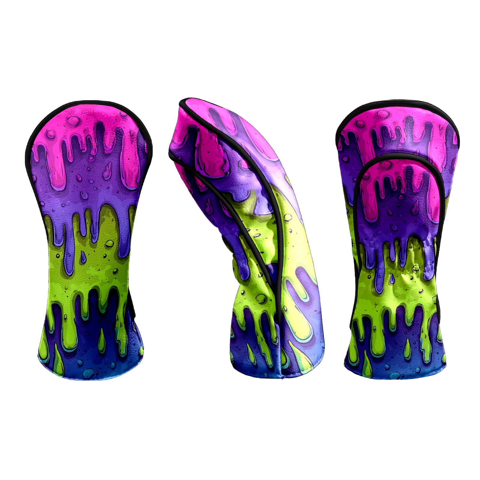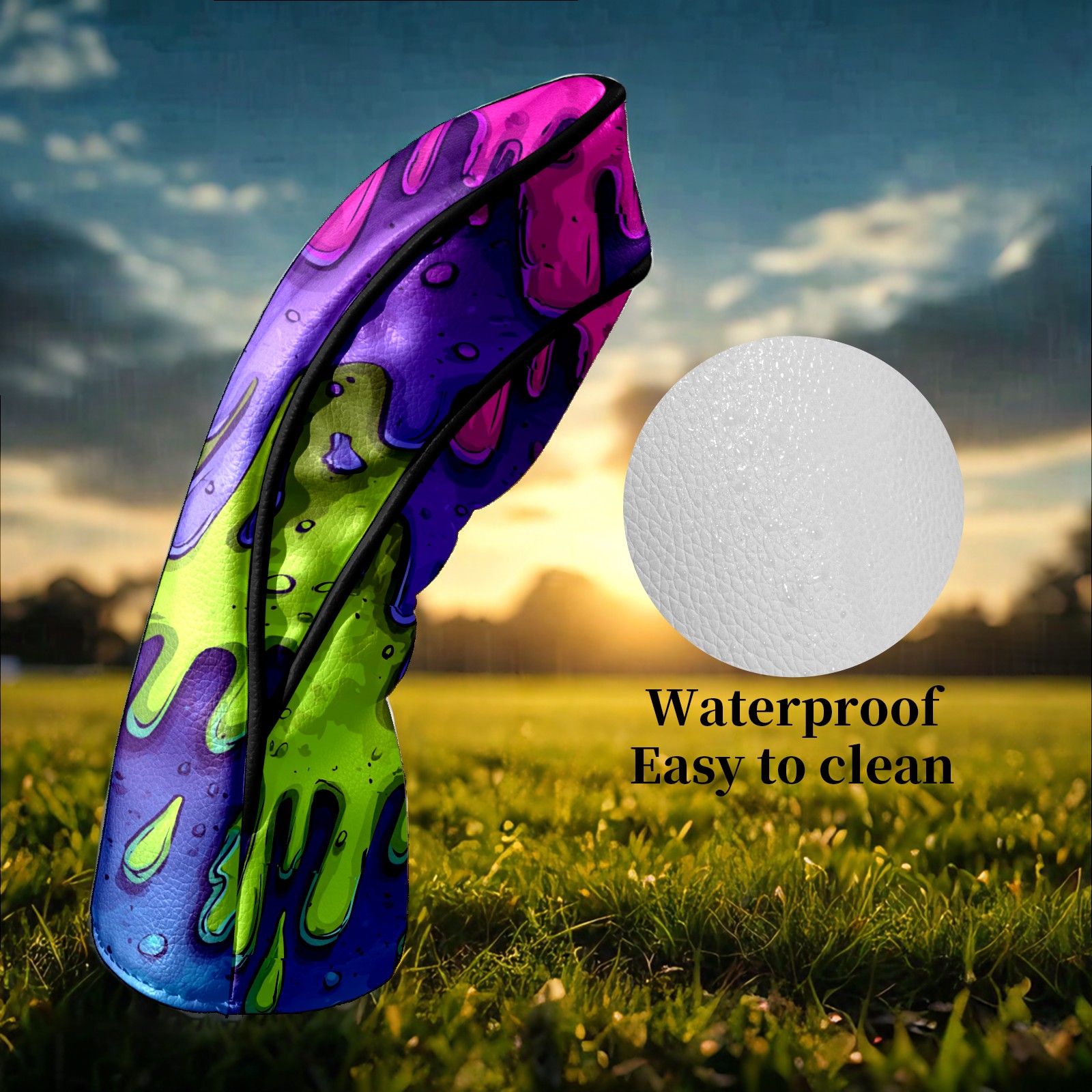 Counullo Golf Head Covers - Slime Cartoon PurpleGreen Driver Fairway Headcover, Durable PU Leather & Soft Velvet Lining, Secure Elastic Band, Perfect Christmas Golf Gift for Men