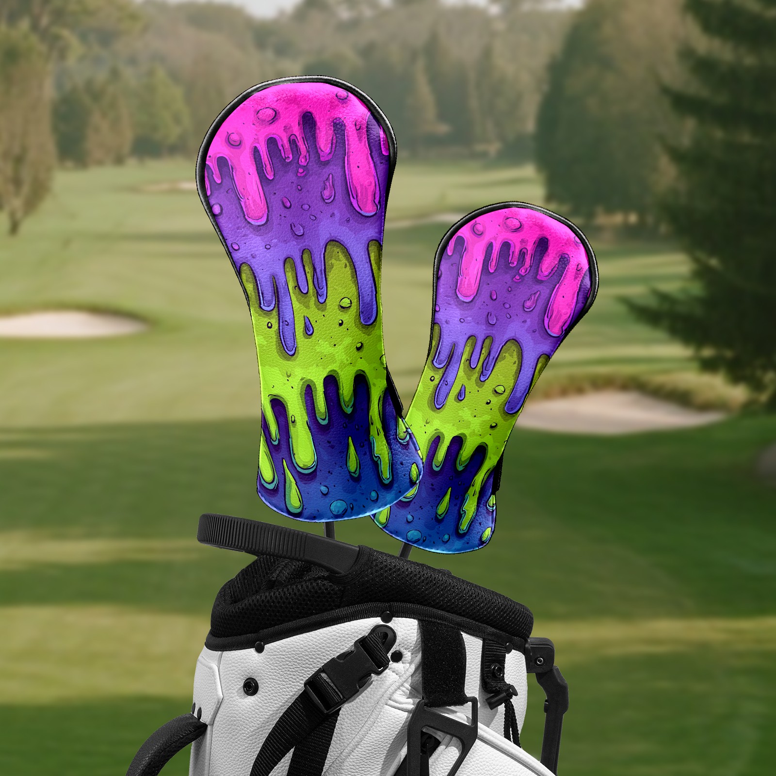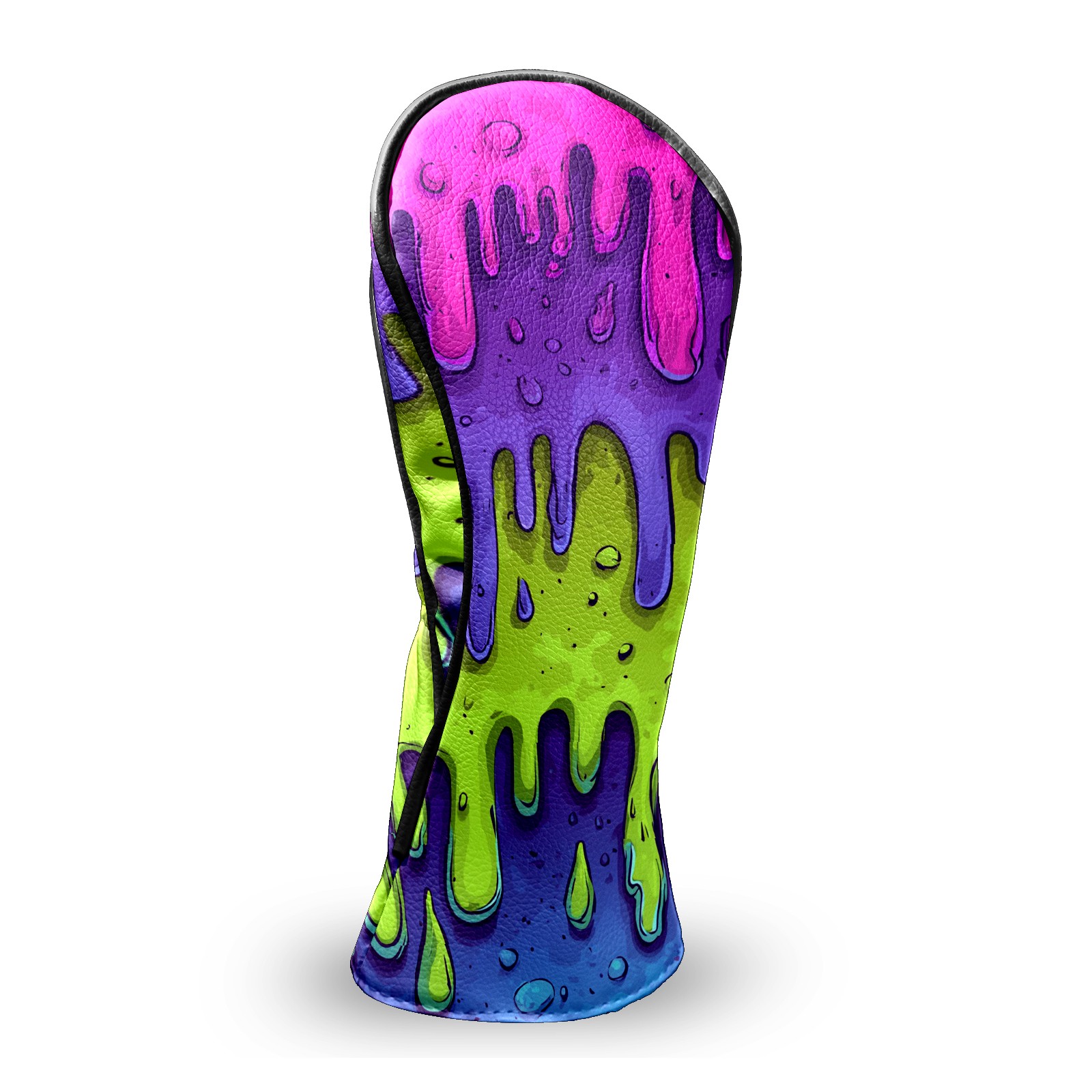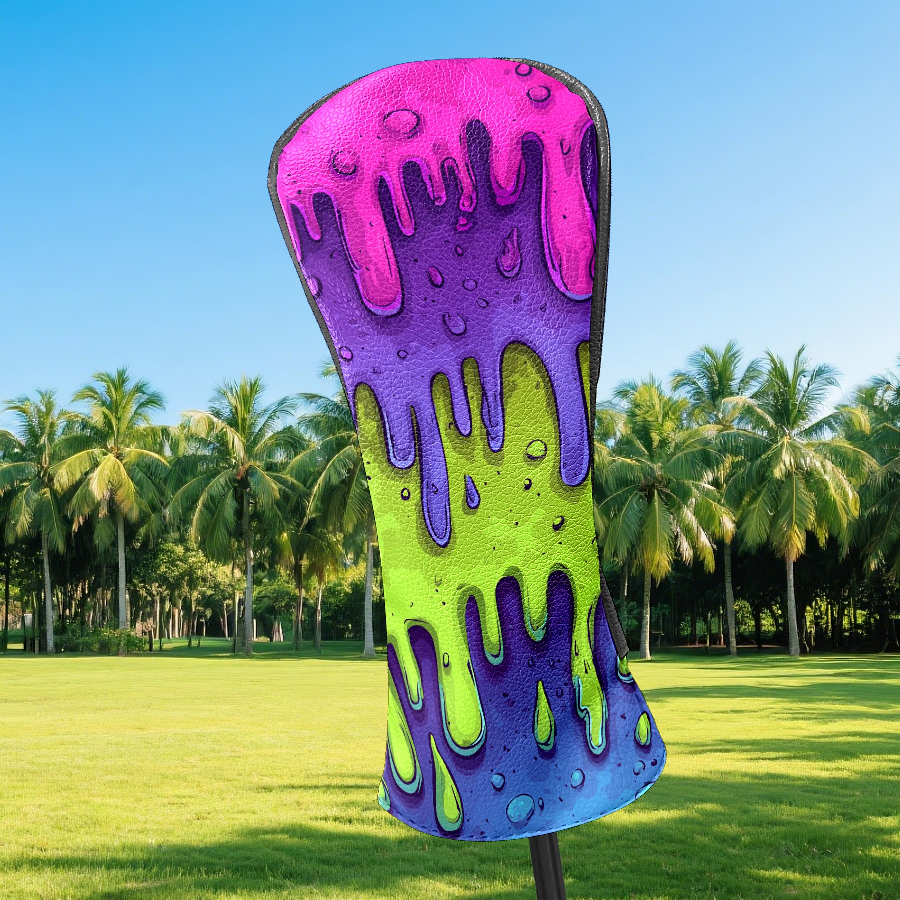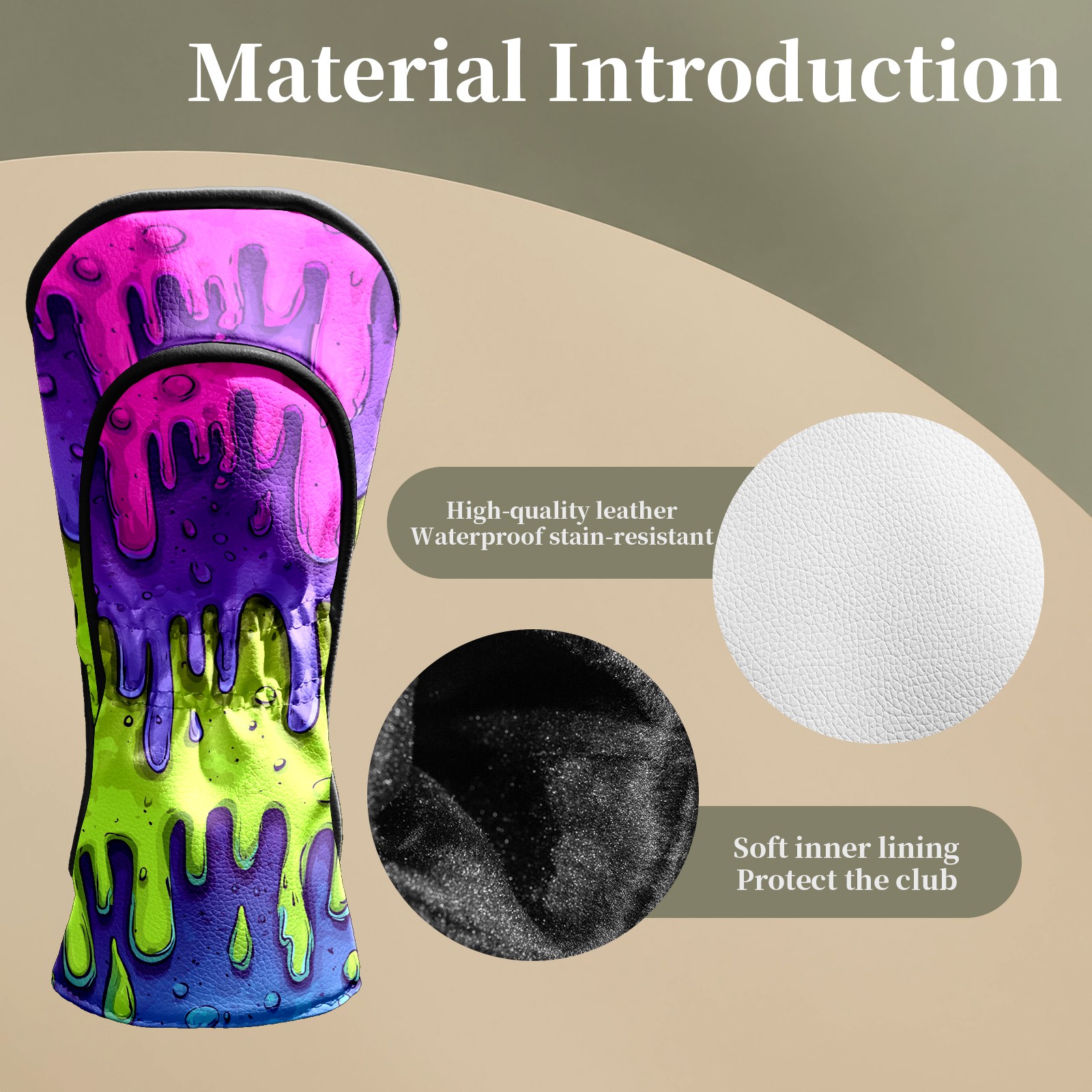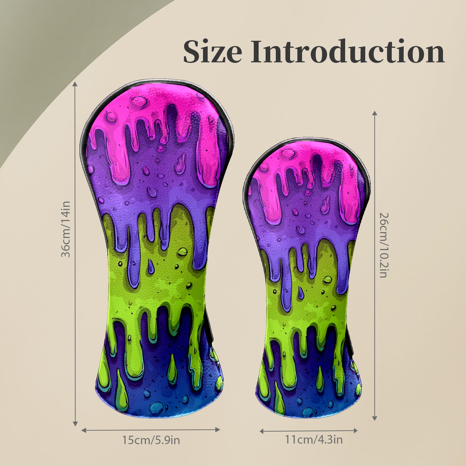Counullo Golf Head Covers - Slime Cartoon PurpleGreen Driver Fairway Headcover, Durable PU Leather & Soft Velvet Lining, Secure Elastic Band, Perfect Christmas Golf Gift for Men