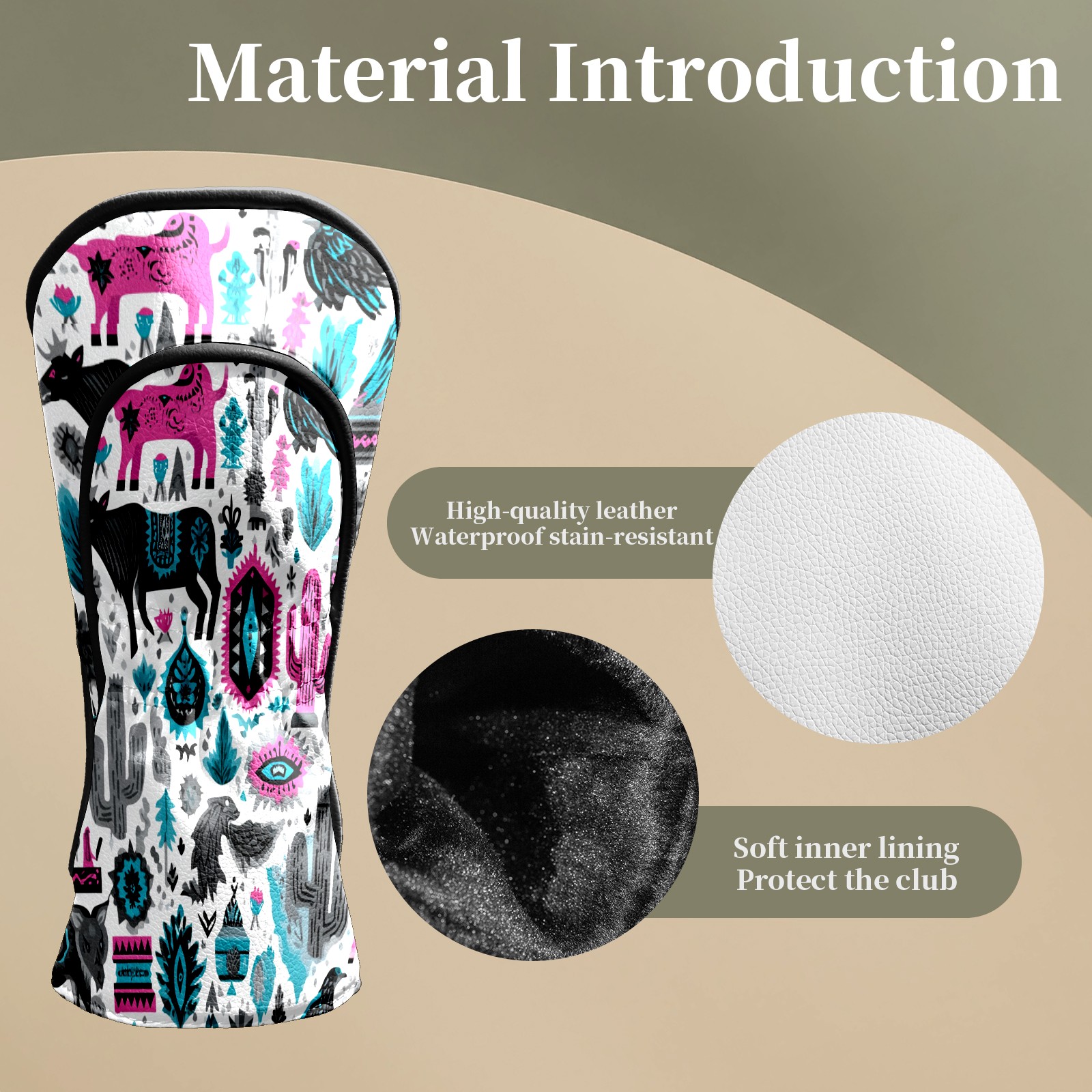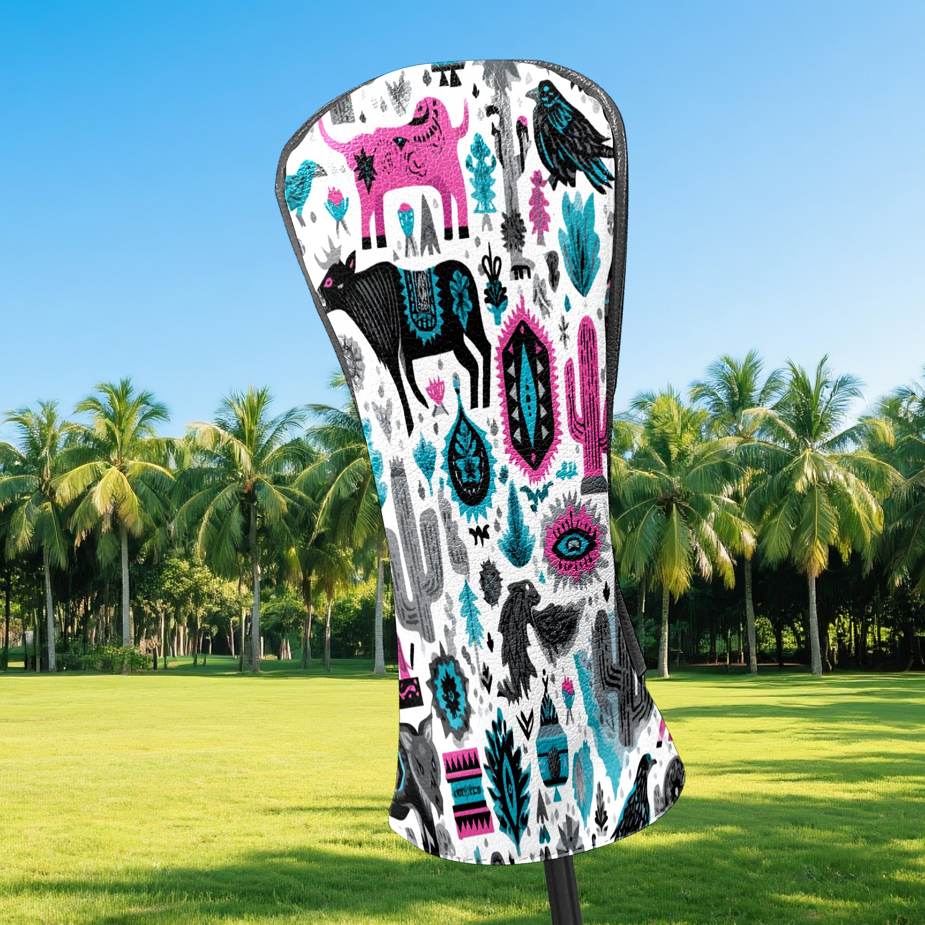 Counullo Golf Head Covers - Arizona Totem Multicolor Driver Fairway Headcover, Durable PU Leather & Soft Velvet Lining, Secure Elastic Band, Perfect Christmas Golf Gift for Men
