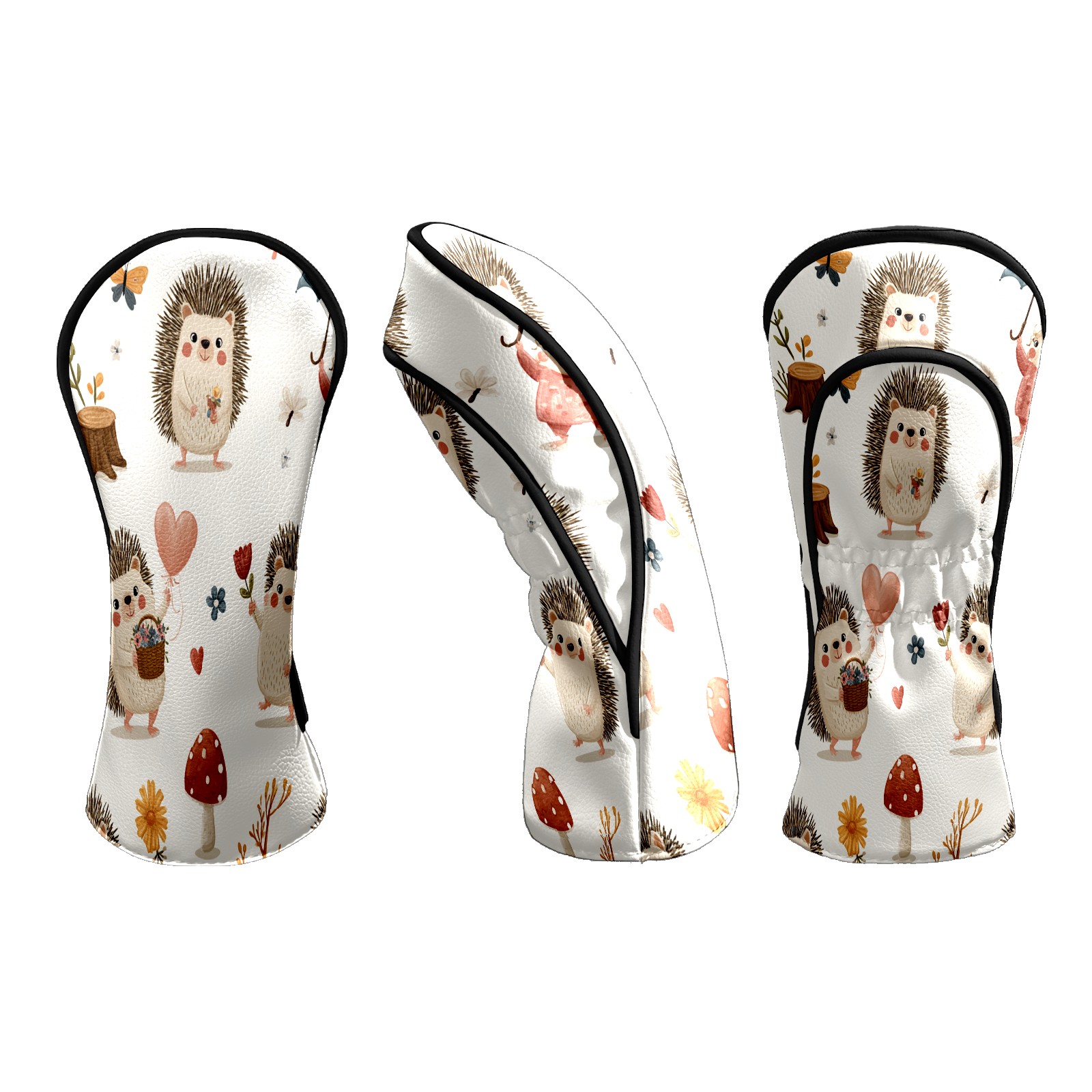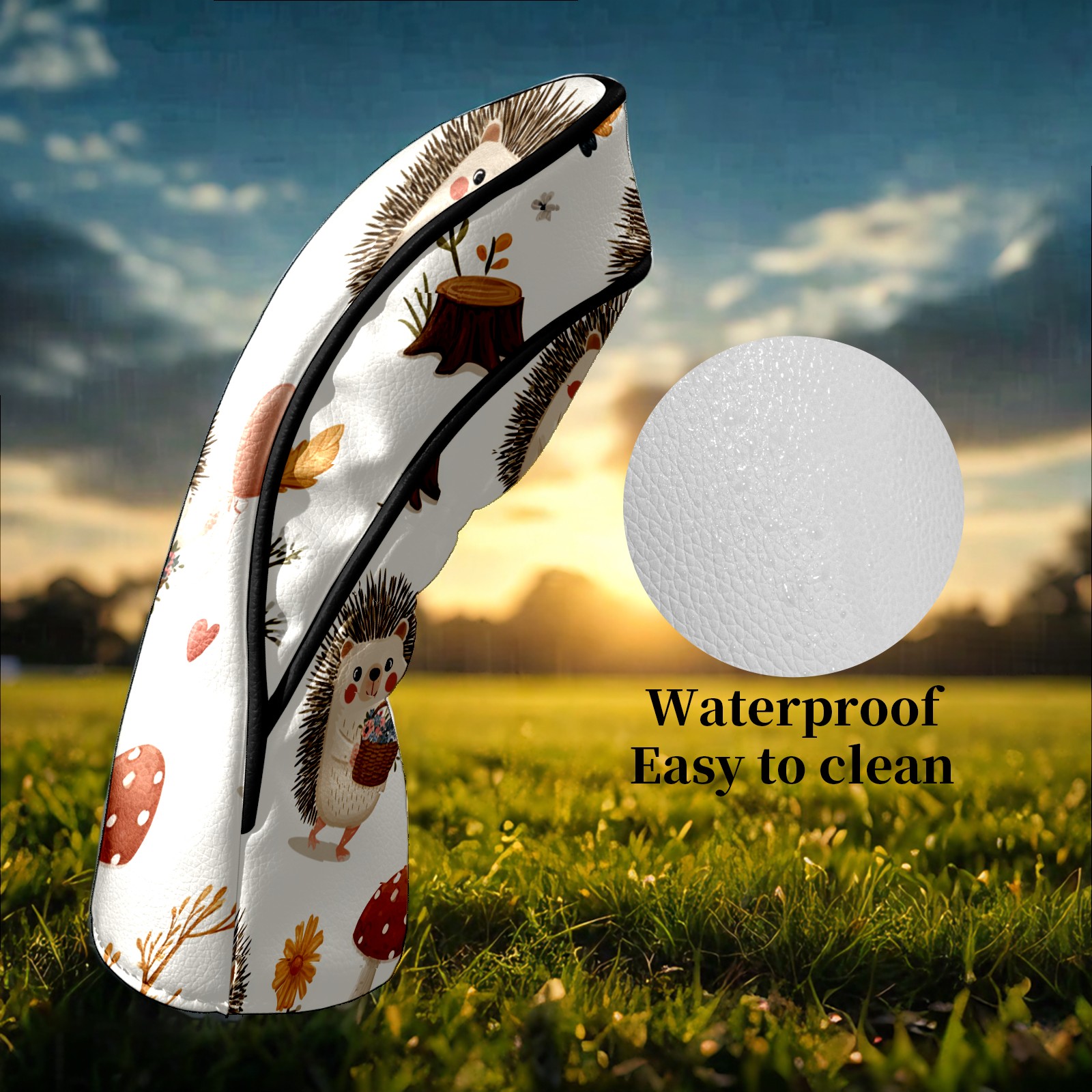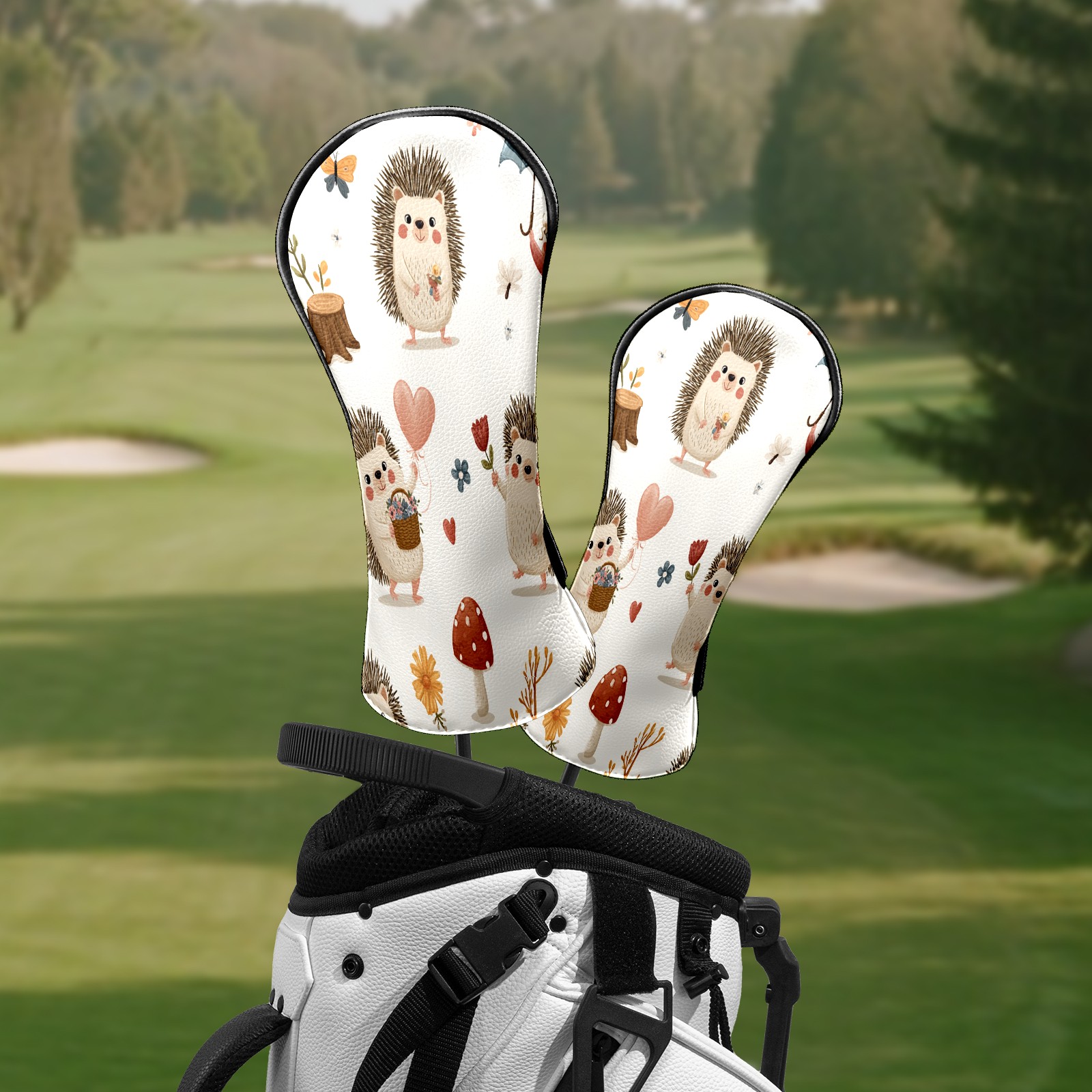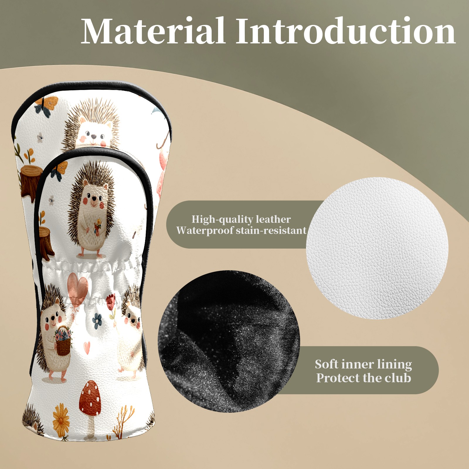 Counullo Golf Head Covers - Hedgehog Cartoon Beige Driver Fairway Headcover, Durable PU Leather & Soft Velvet Lining, Secure Elastic Band, Perfect Christmas Golf Gift for Men