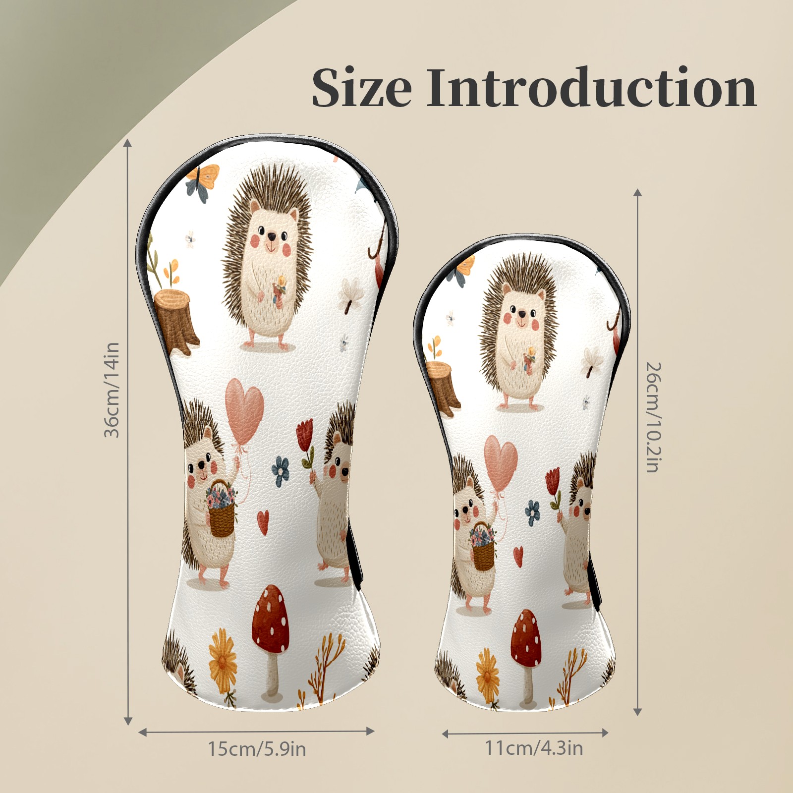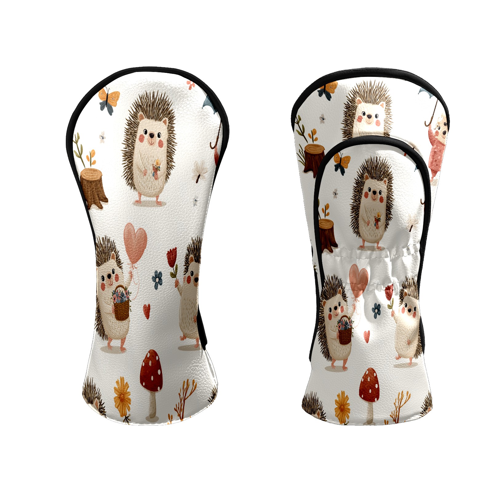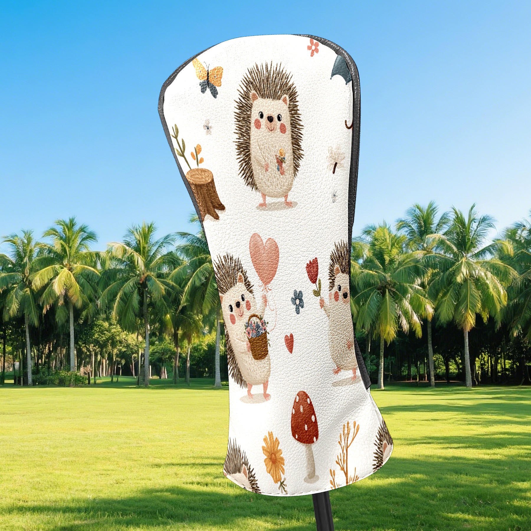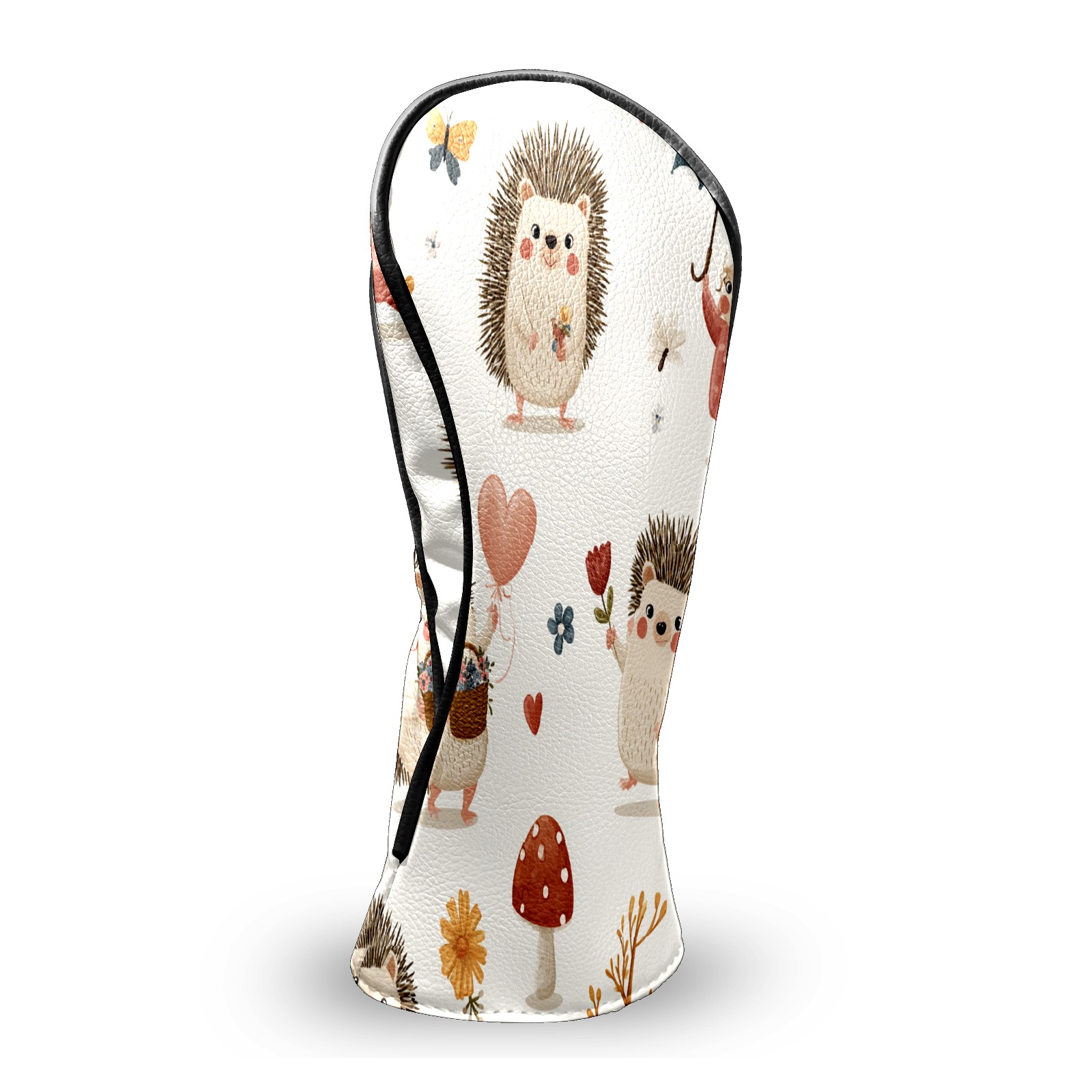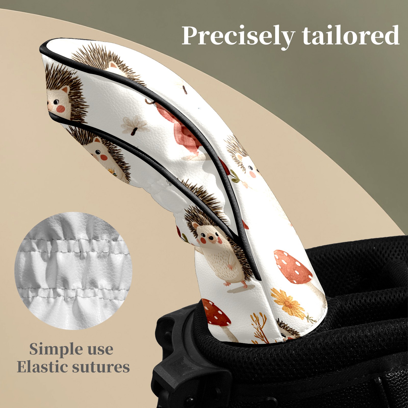 Counullo Golf Head Covers - Hedgehog Cartoon Beige Driver Fairway Headcover, Durable PU Leather & Soft Velvet Lining, Secure Elastic Band, Perfect Christmas Golf Gift for Men