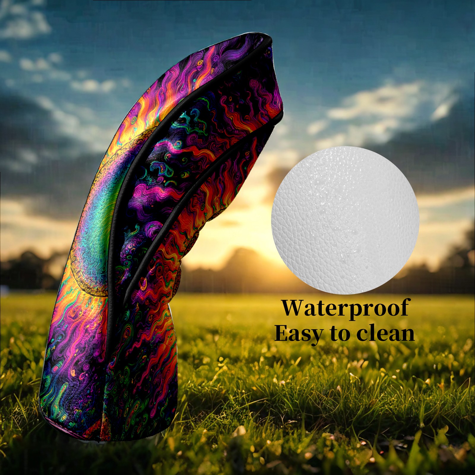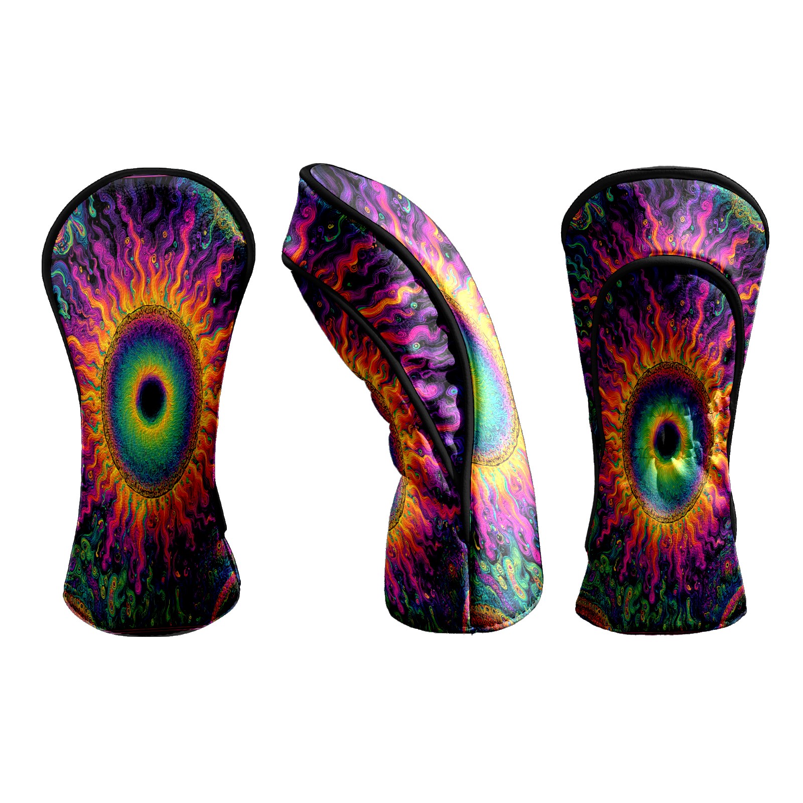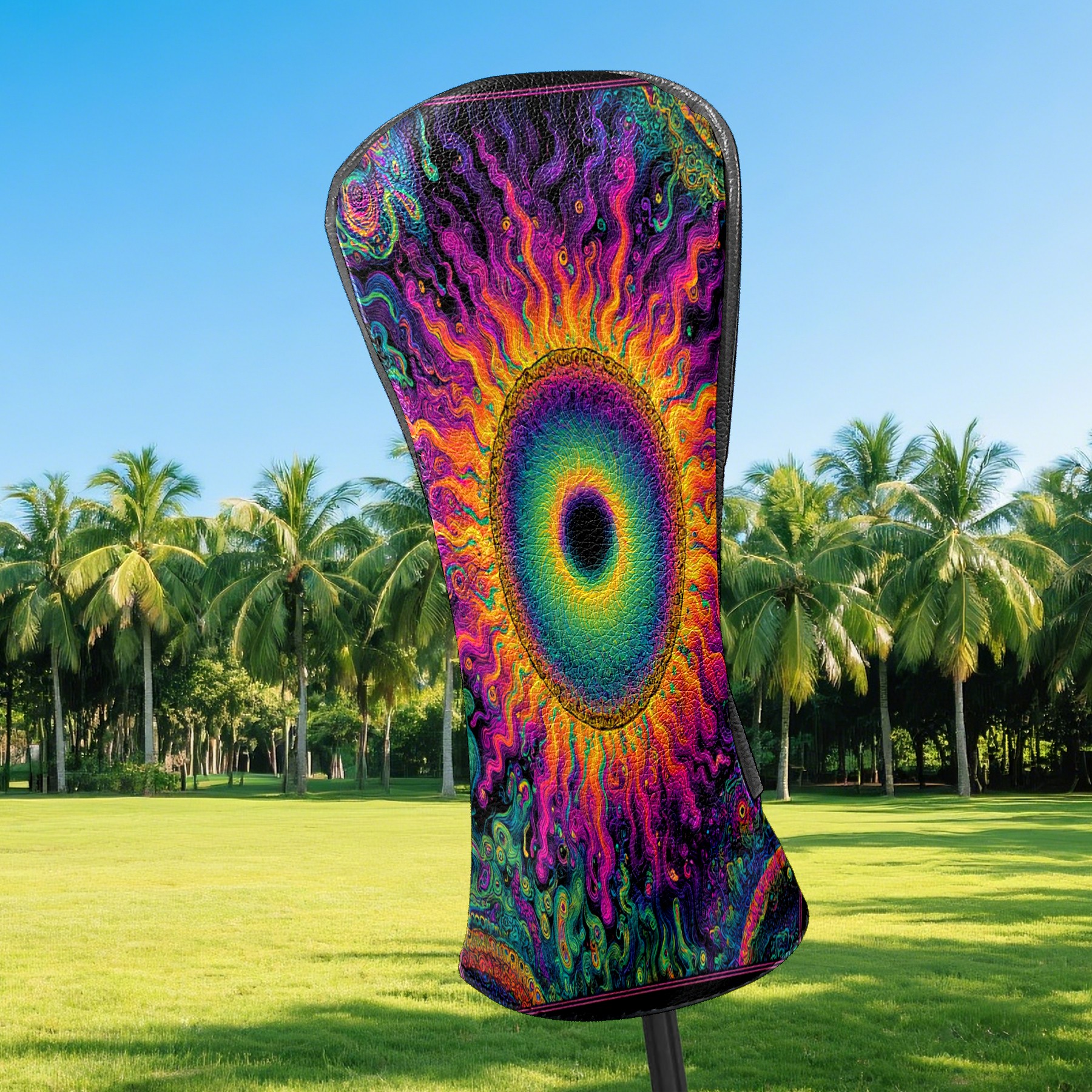 Counullo Golf Head Covers - Psychedelic Vortex Multicolor Driver Fairway Headcover, Durable PU Leather & Soft Velvet Lining, Secure Elastic Band, Perfect Christmas Golf Gift for Men