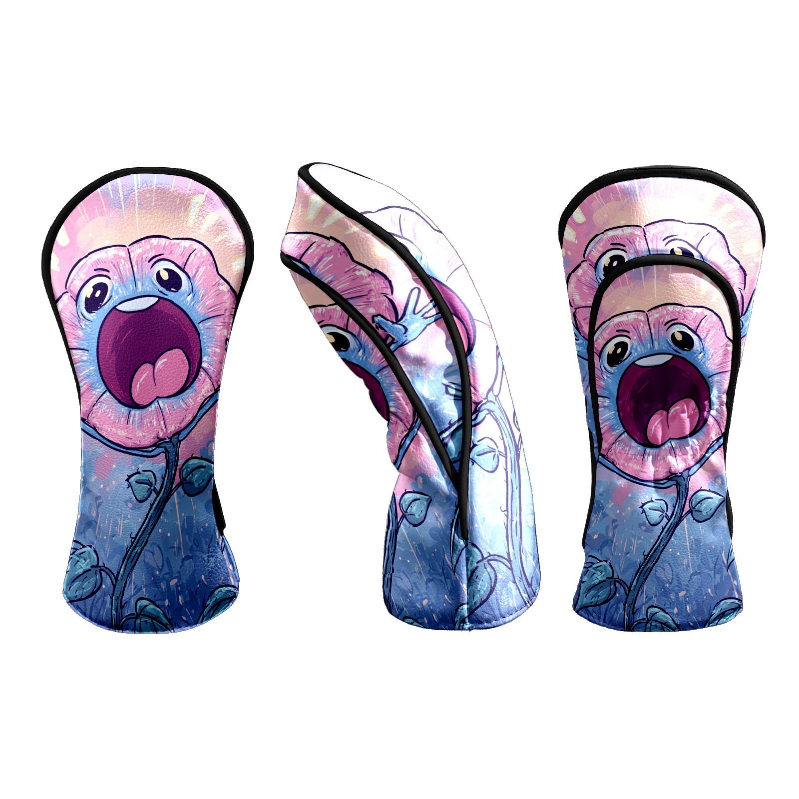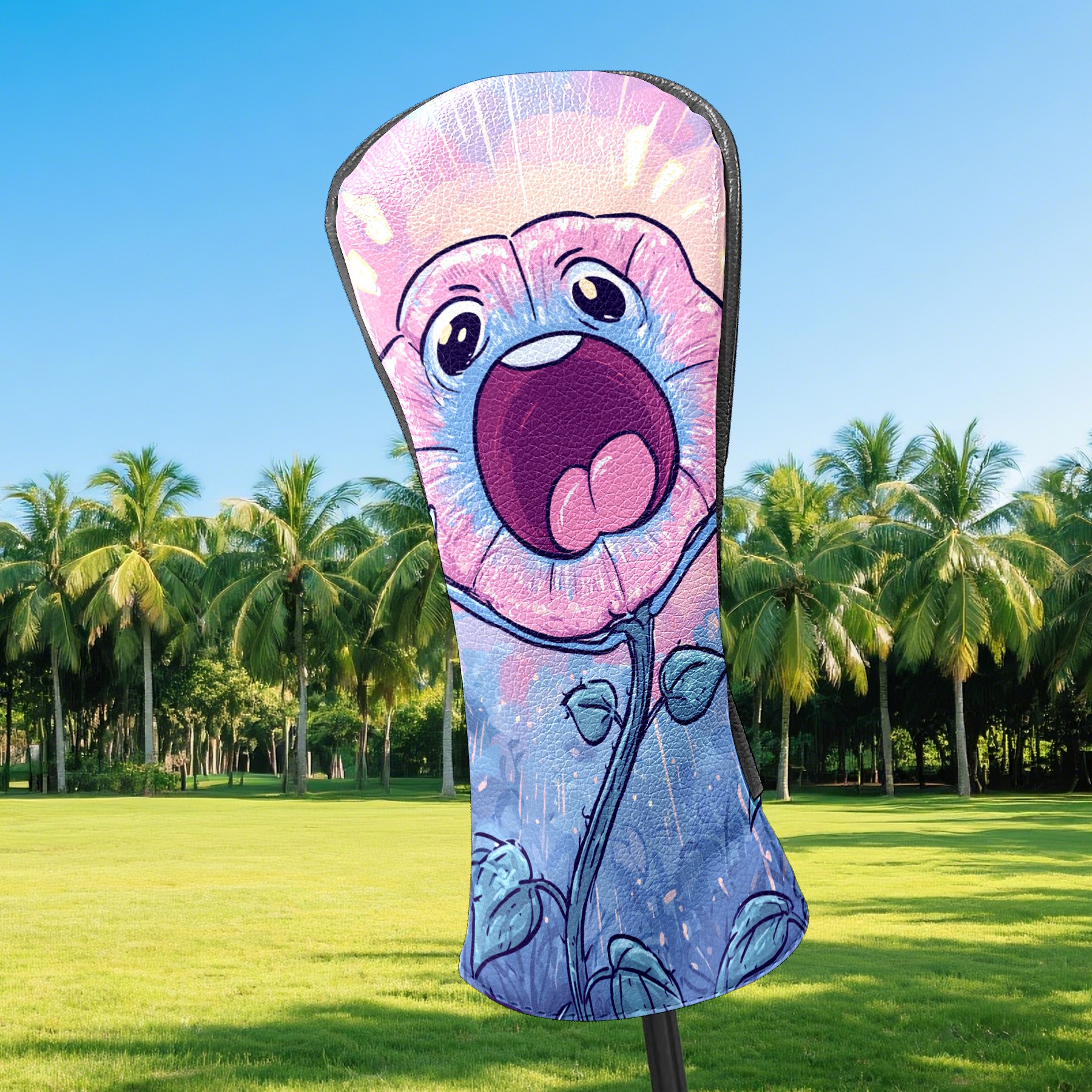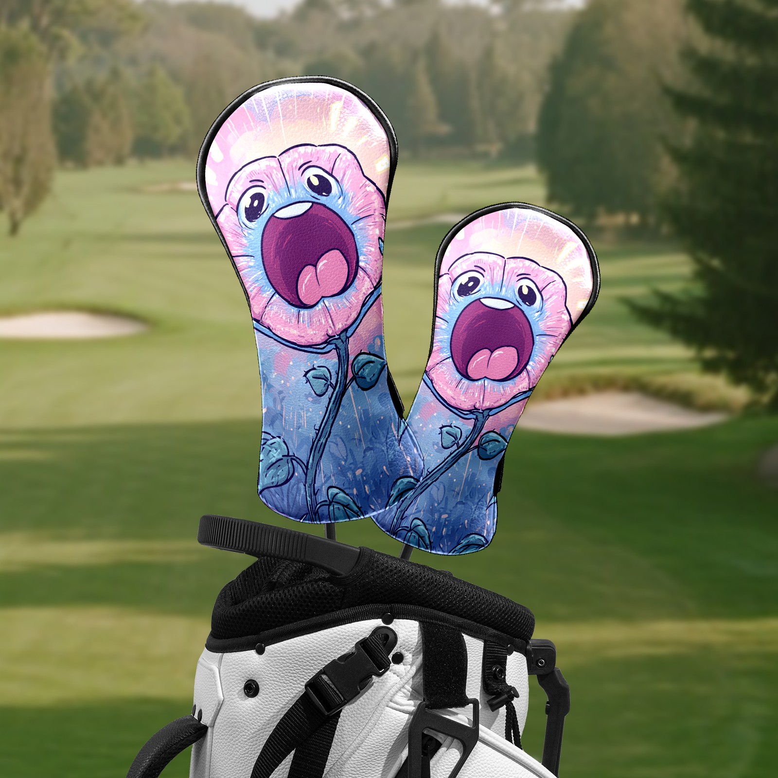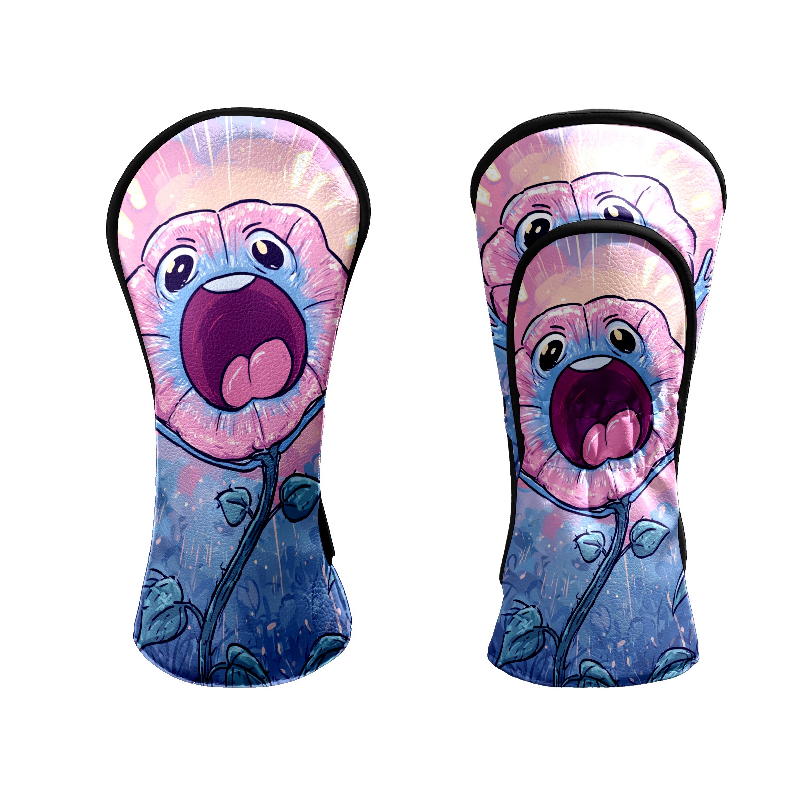 Counullo Golf Head Covers - Screaming Flower BluePink3 Driver Fairway Headcover, Durable PU Leather & Soft Velvet Lining, Secure Elastic Band, Perfect Christmas Golf Gift for Men