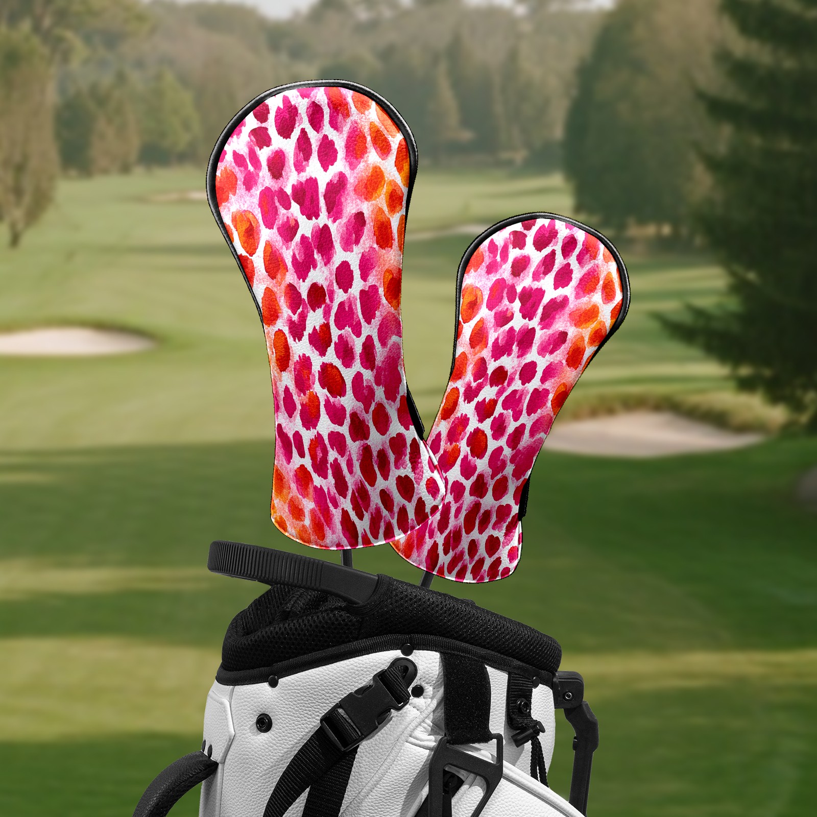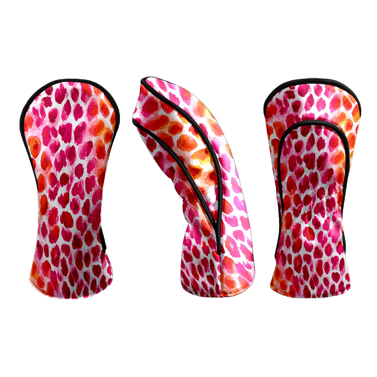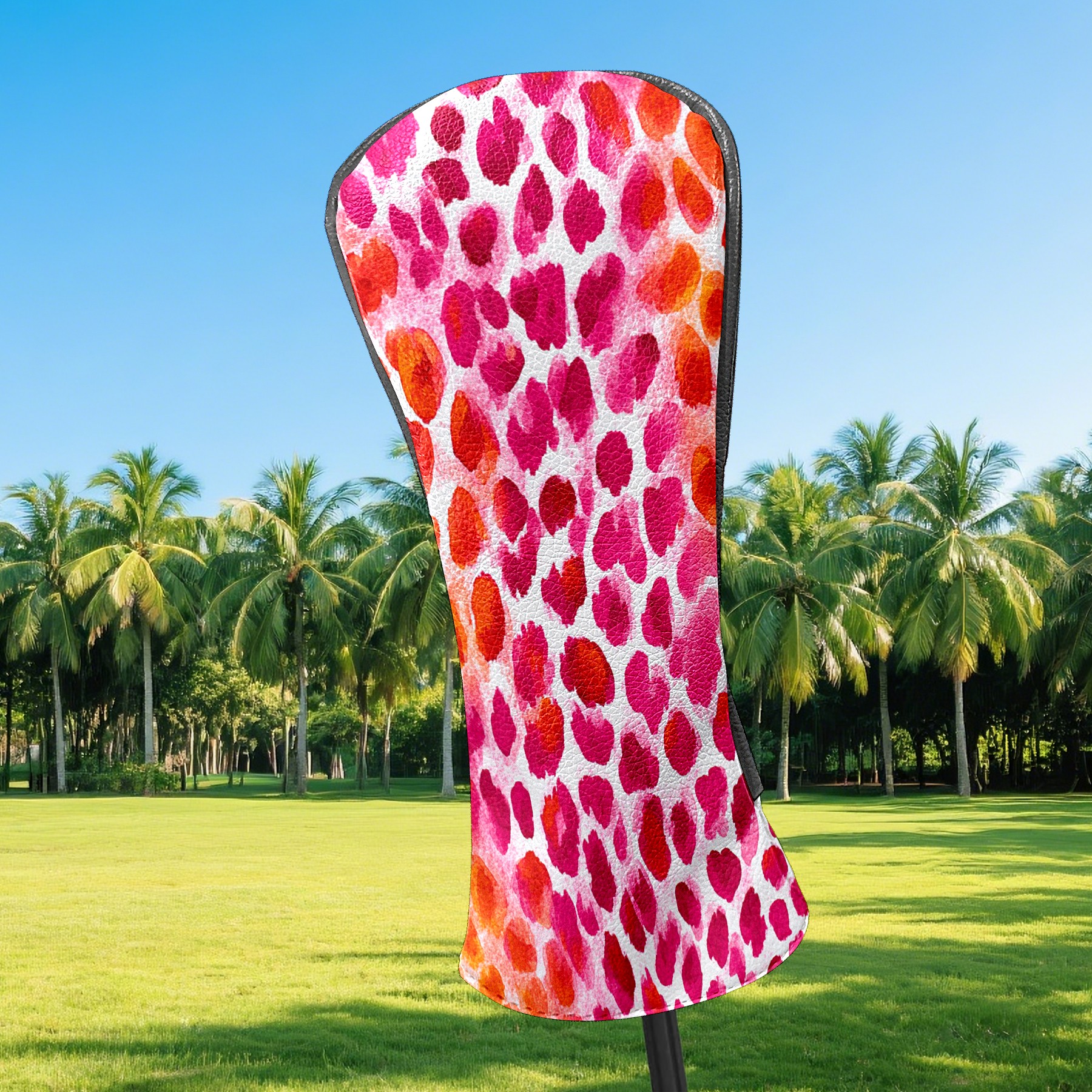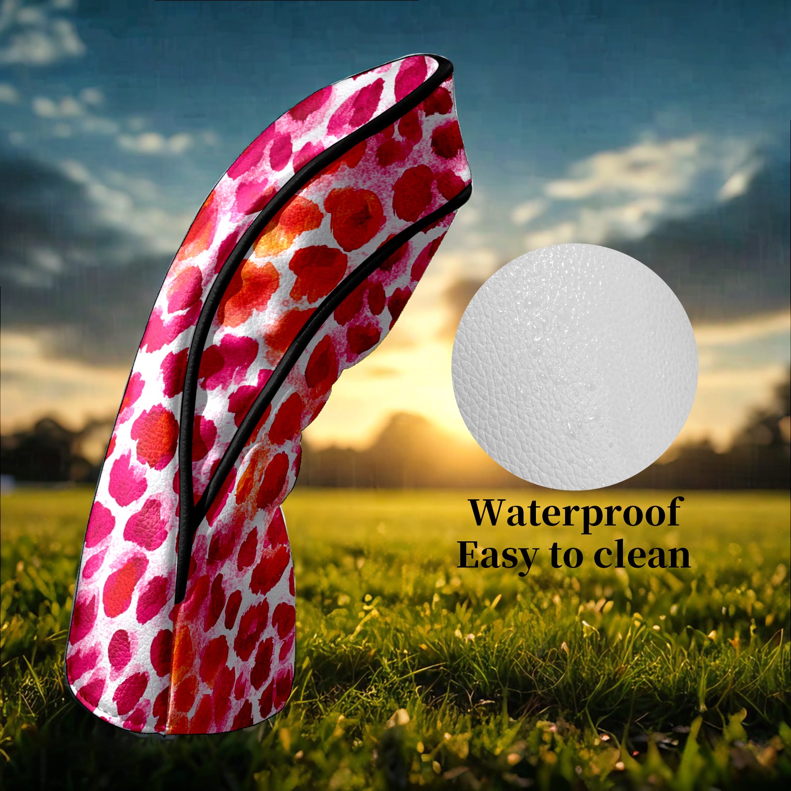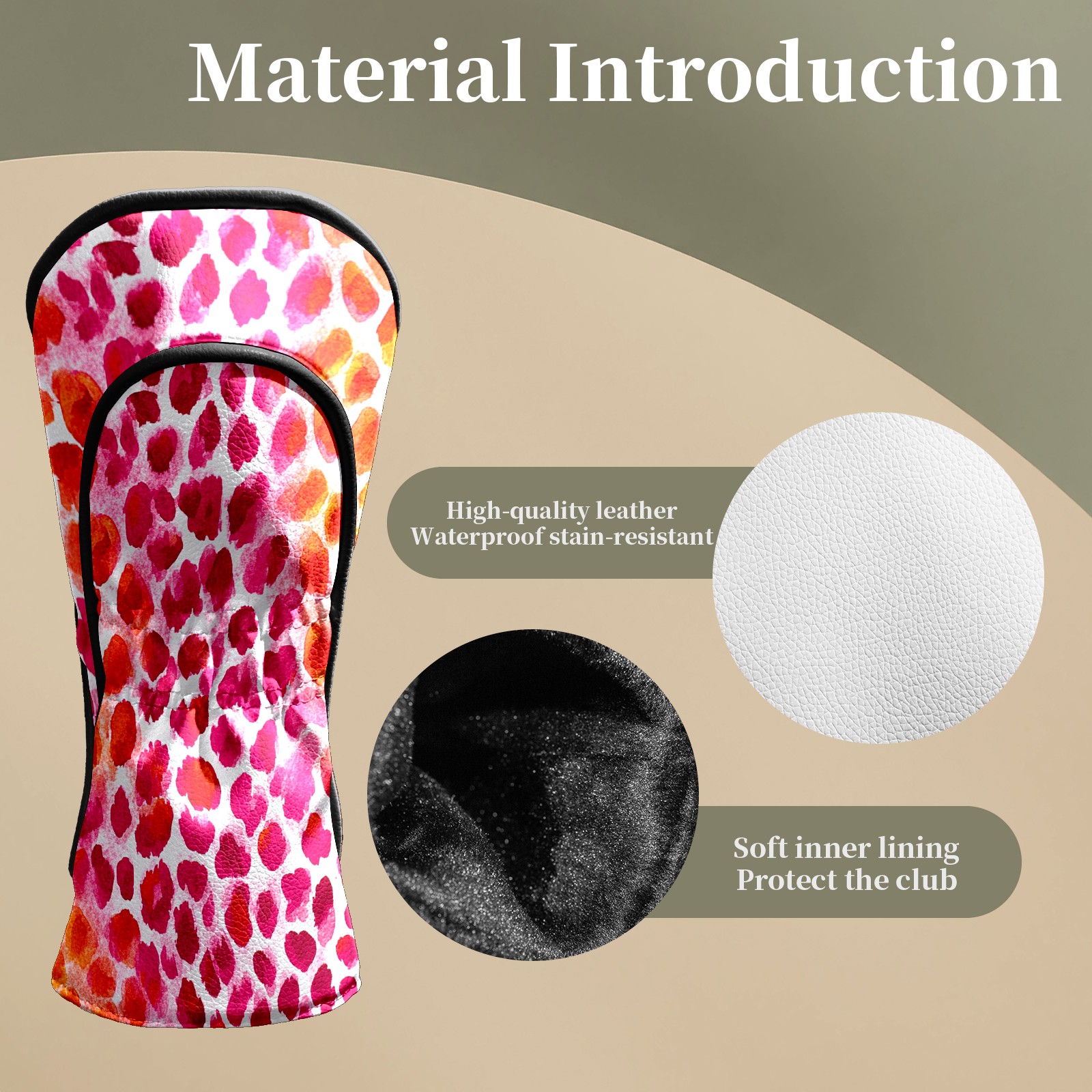 Counullo Golf Head Covers - Cheetah Print Pink Driver Fairway Headcover, Durable PU Leather & Soft Velvet Lining, Secure Elastic Band, Perfect Christmas Golf Gift for Men