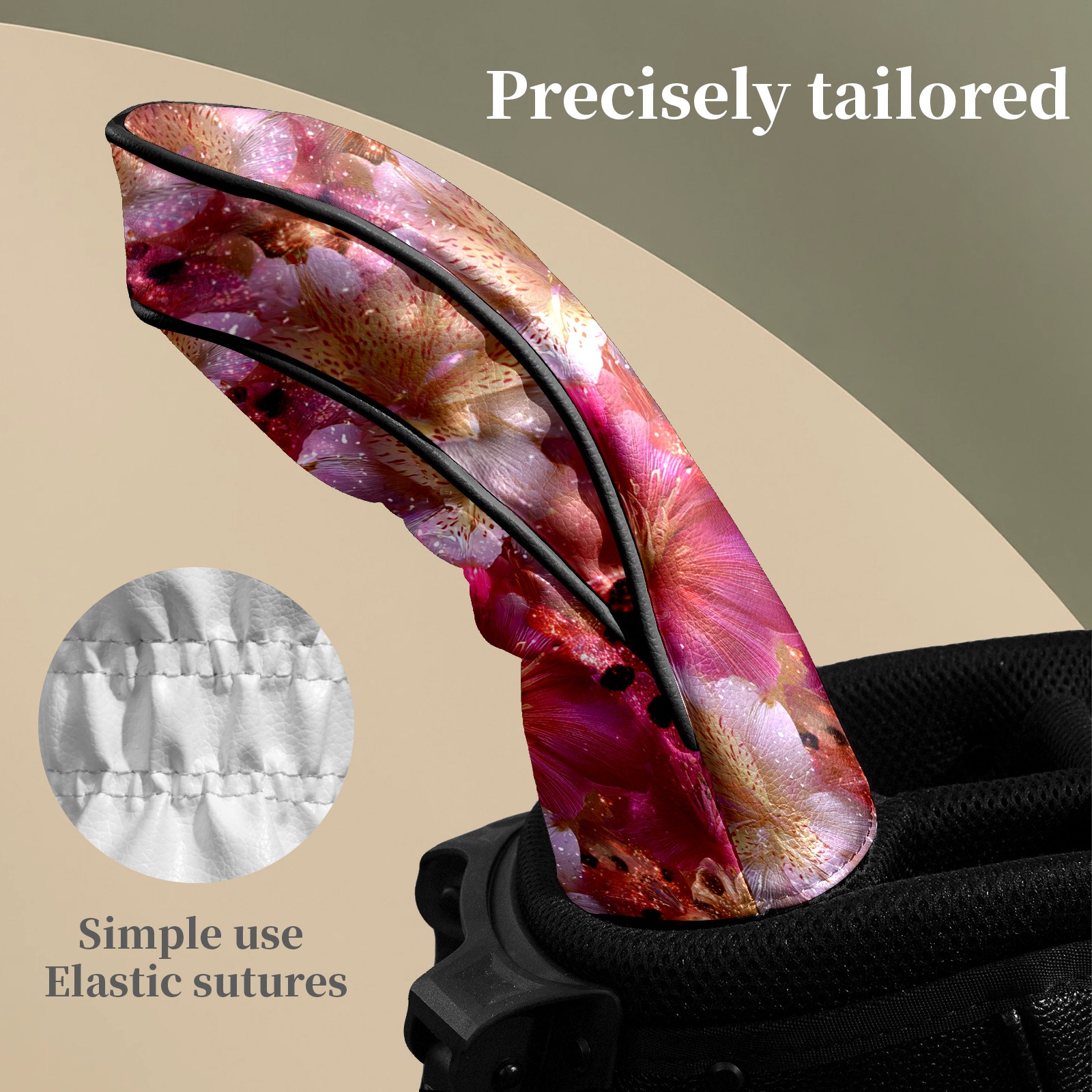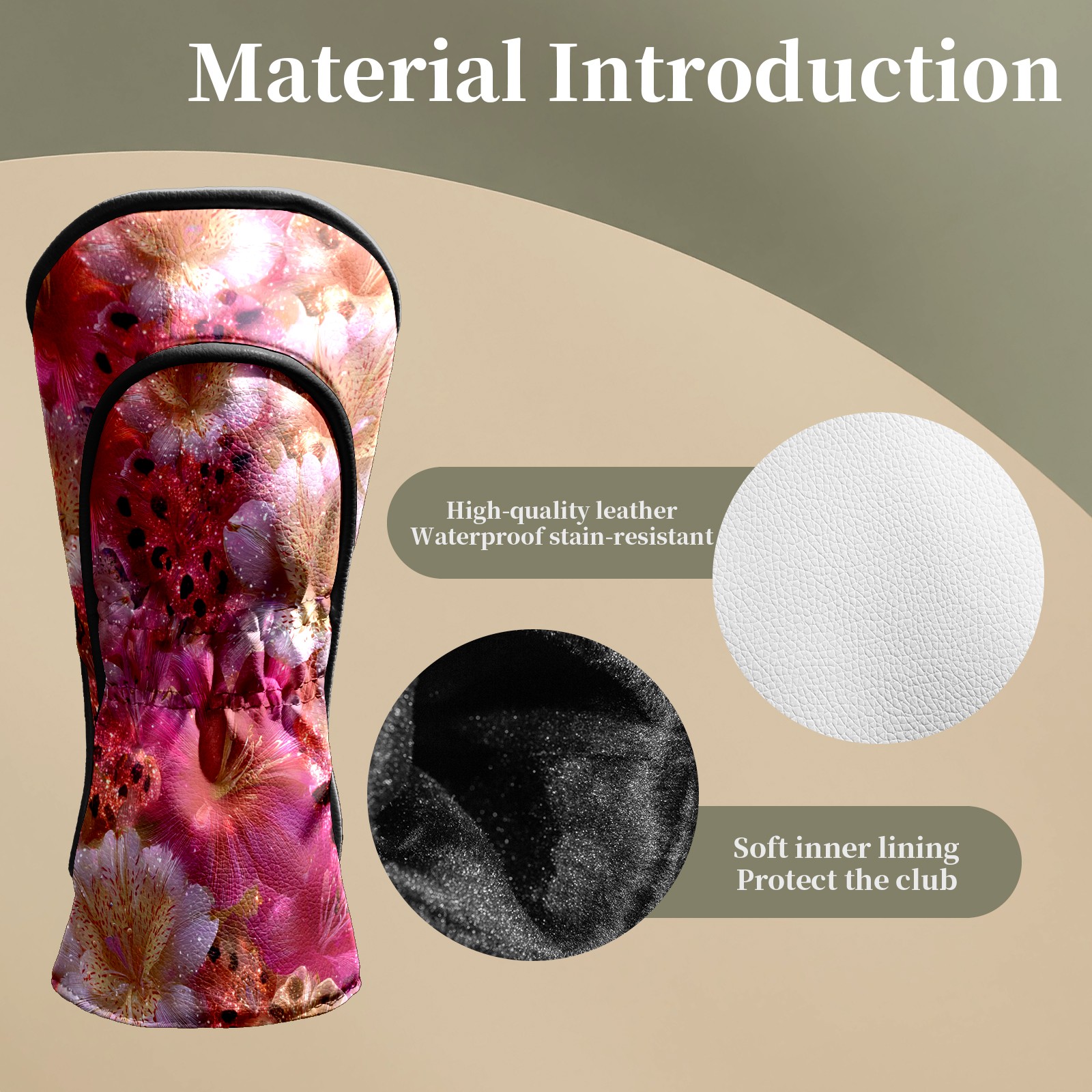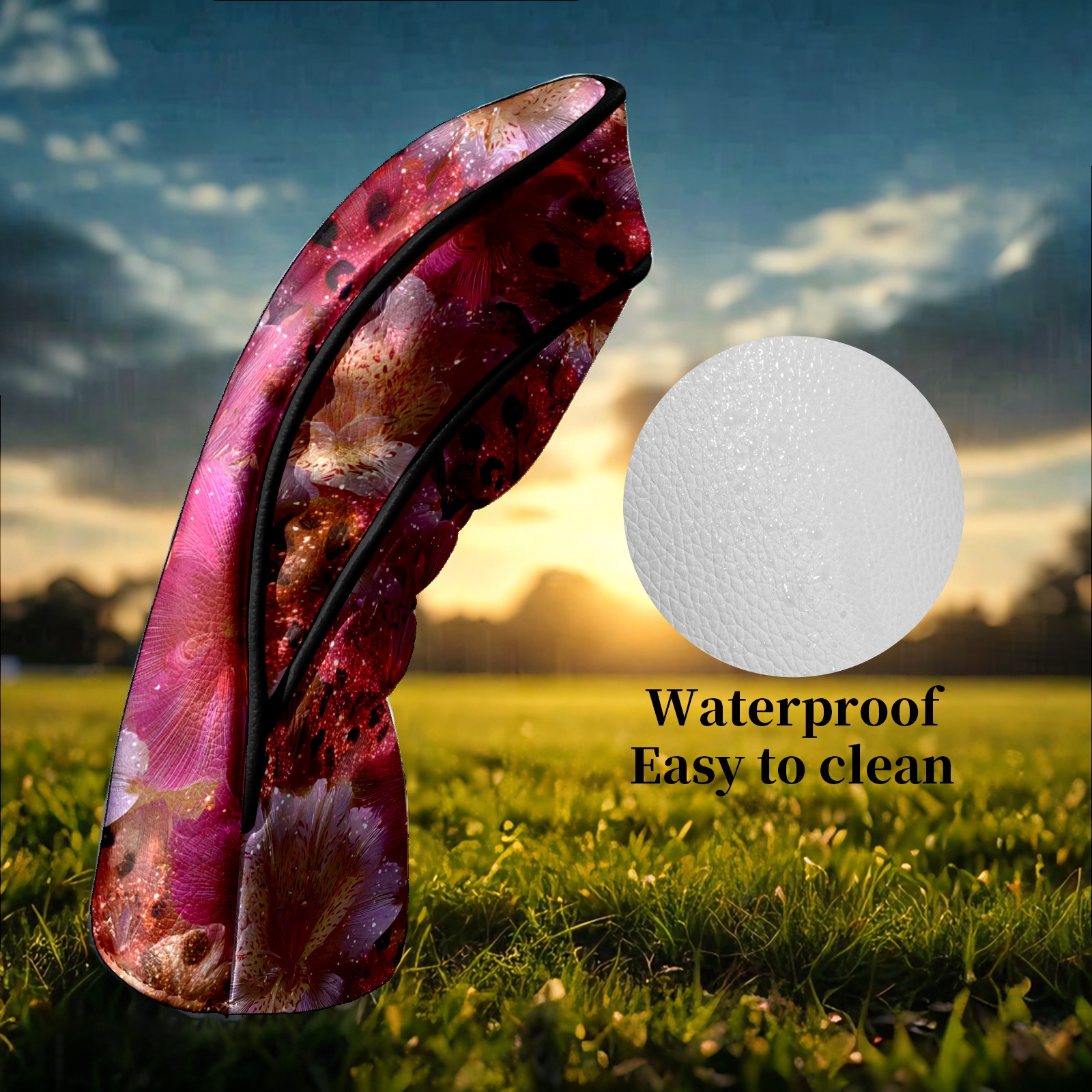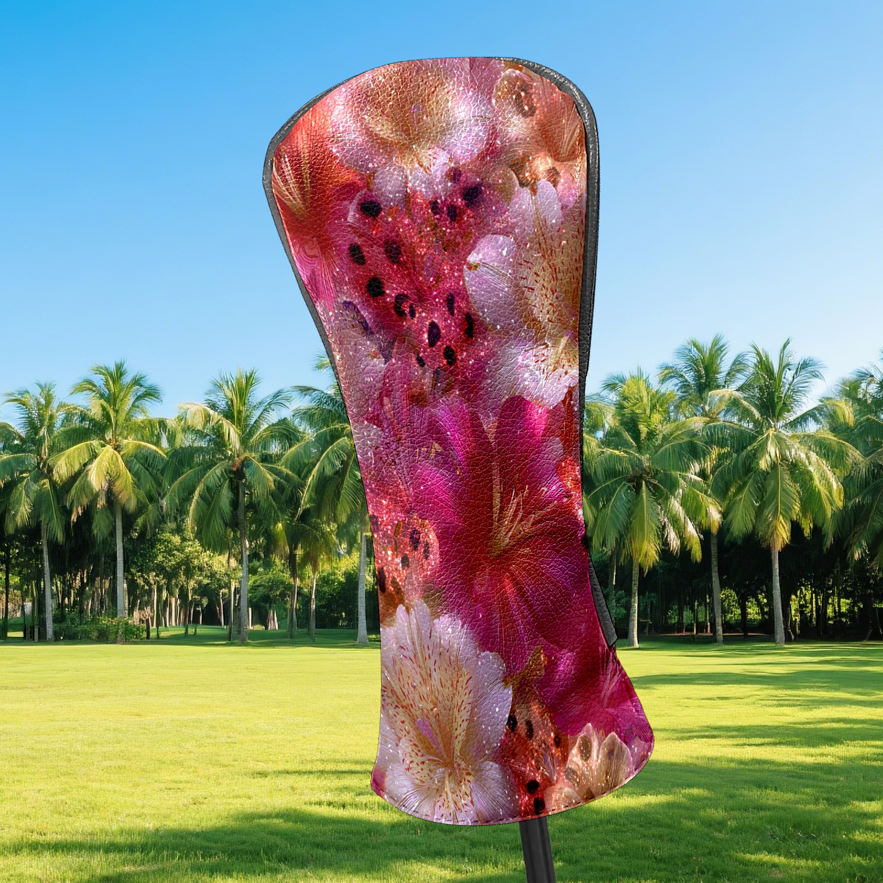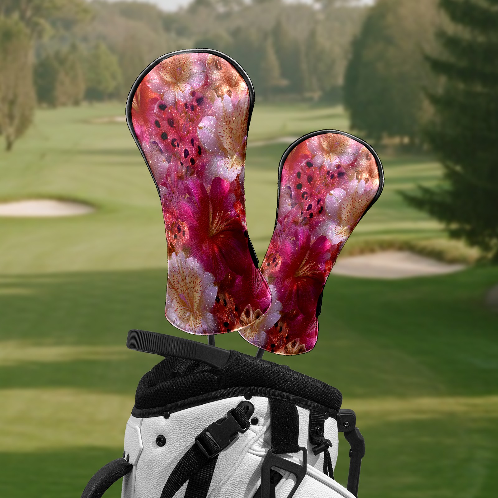 Counullo Golf Head Covers - Abstract Floral Pink Driver Fairway Headcover, Durable PU Leather & Soft Velvet Lining, Secure Elastic Band, Perfect Christmas Golf Gift for Men