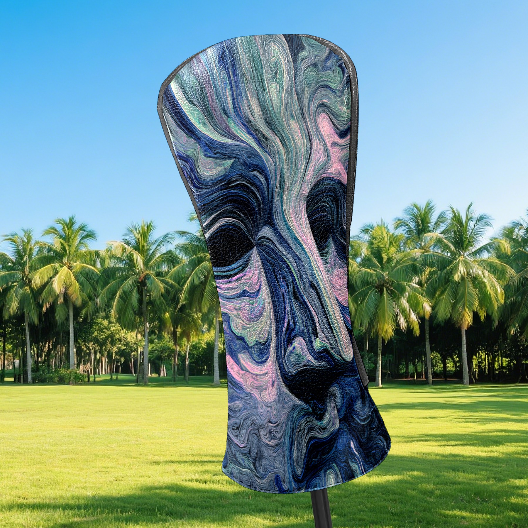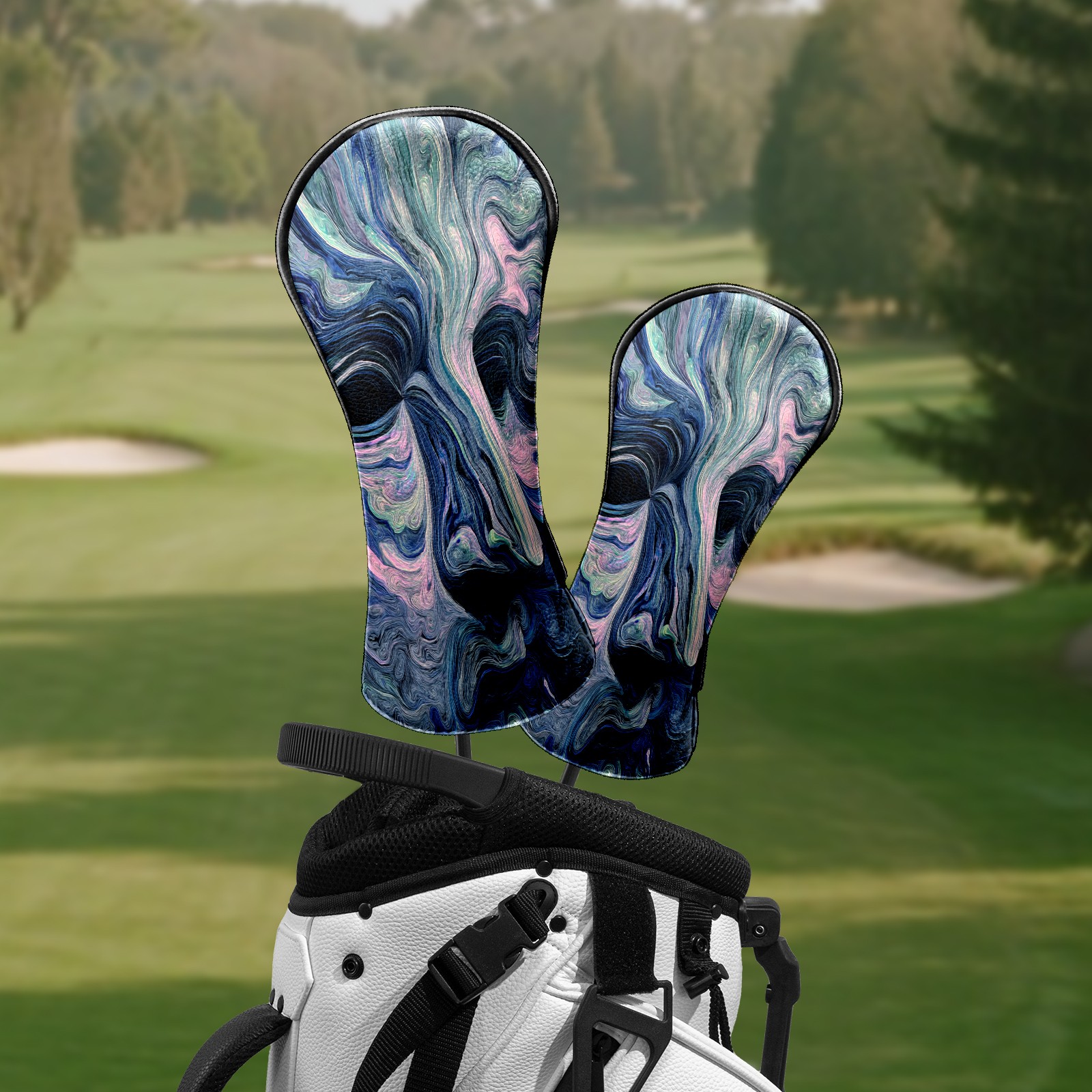 Counullo Golf Head Covers - Abstract Face BlueGray Driver Fairway Headcover, Durable PU Leather & Soft Velvet Lining, Secure Elastic Band, Perfect Christmas Golf Gift for Men