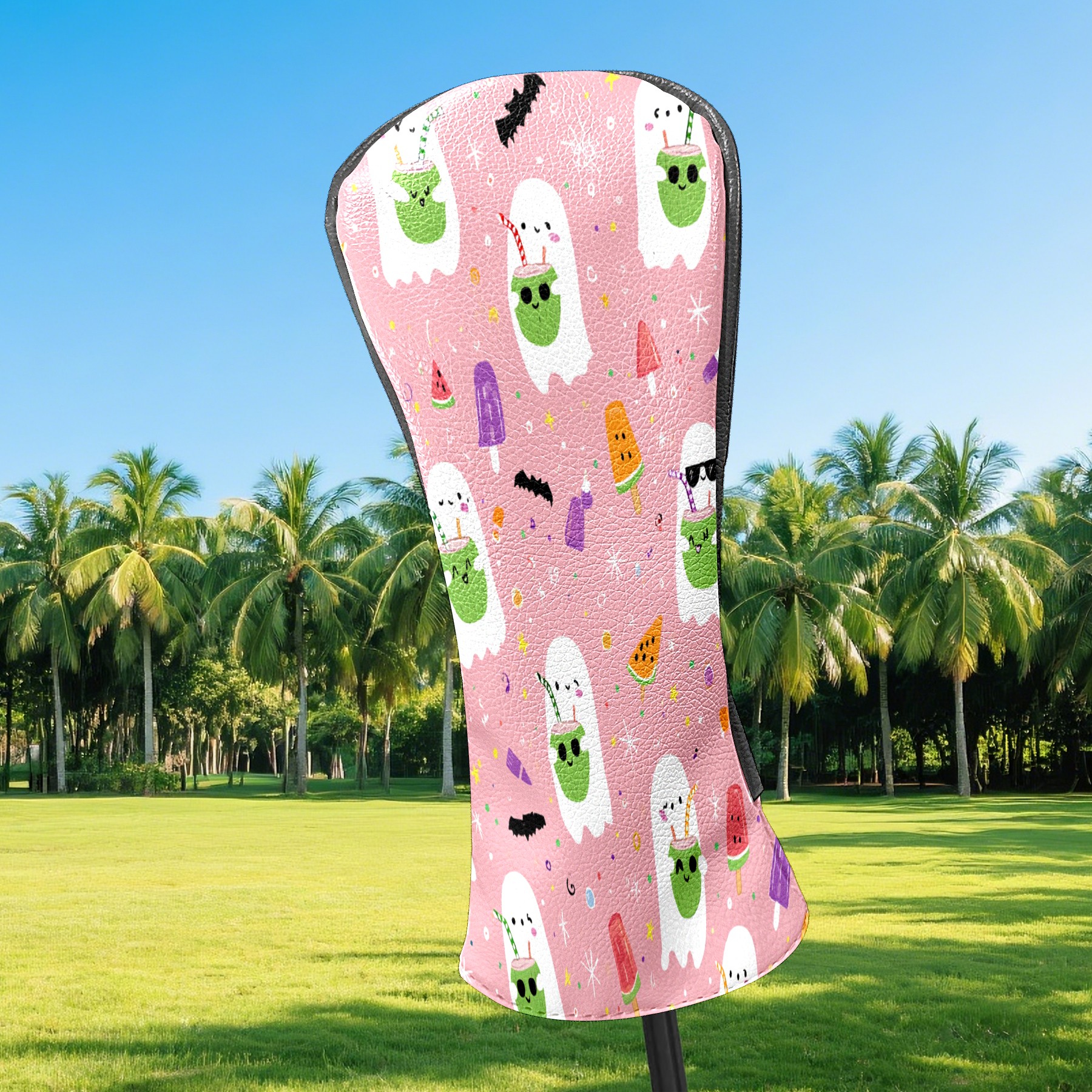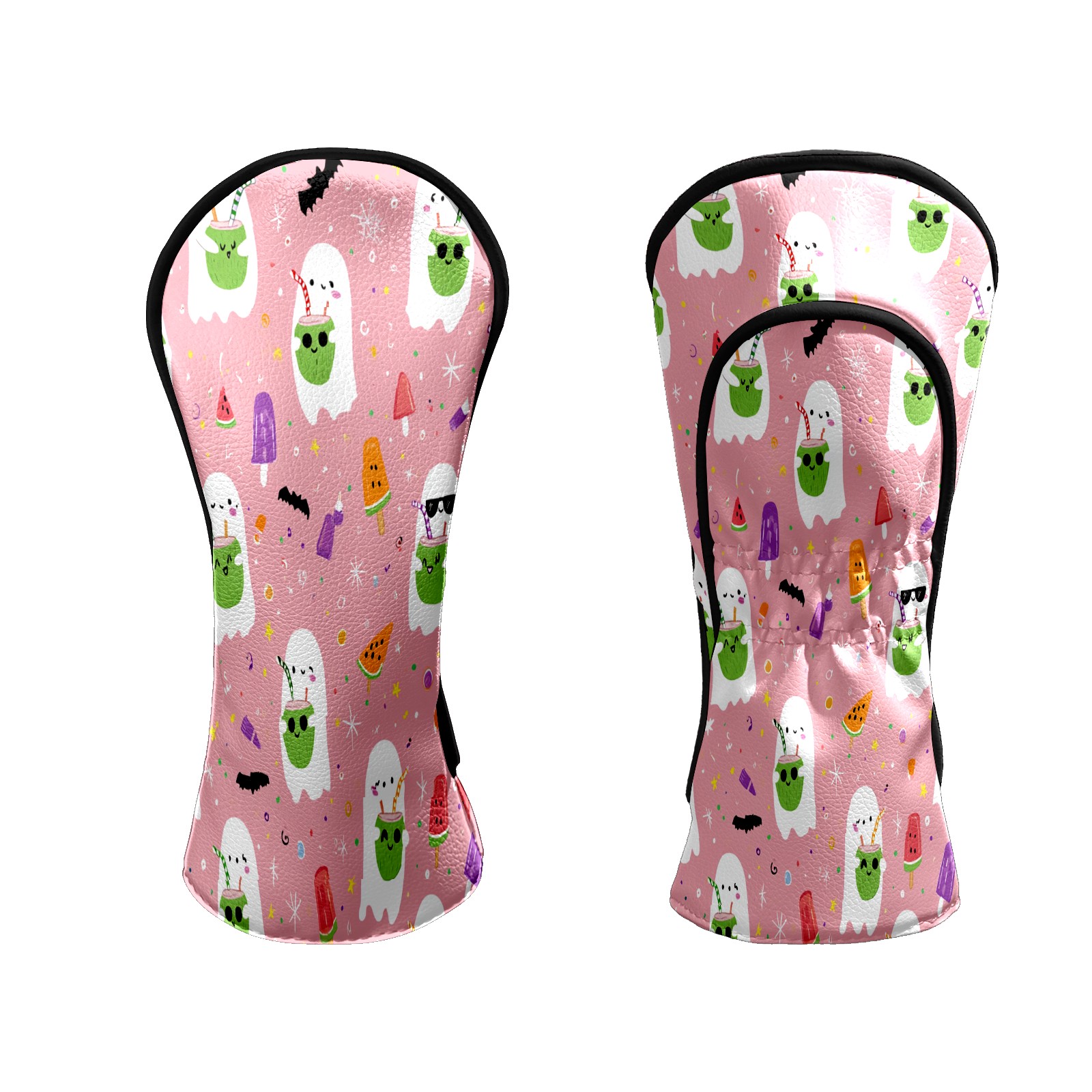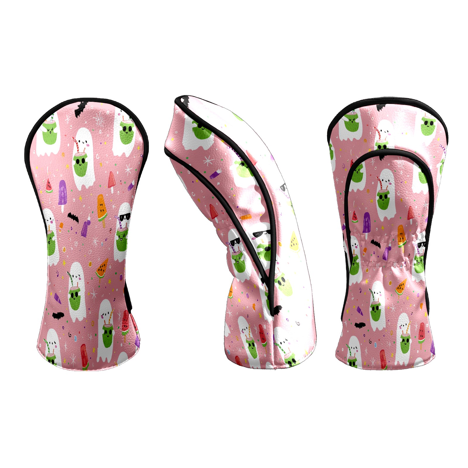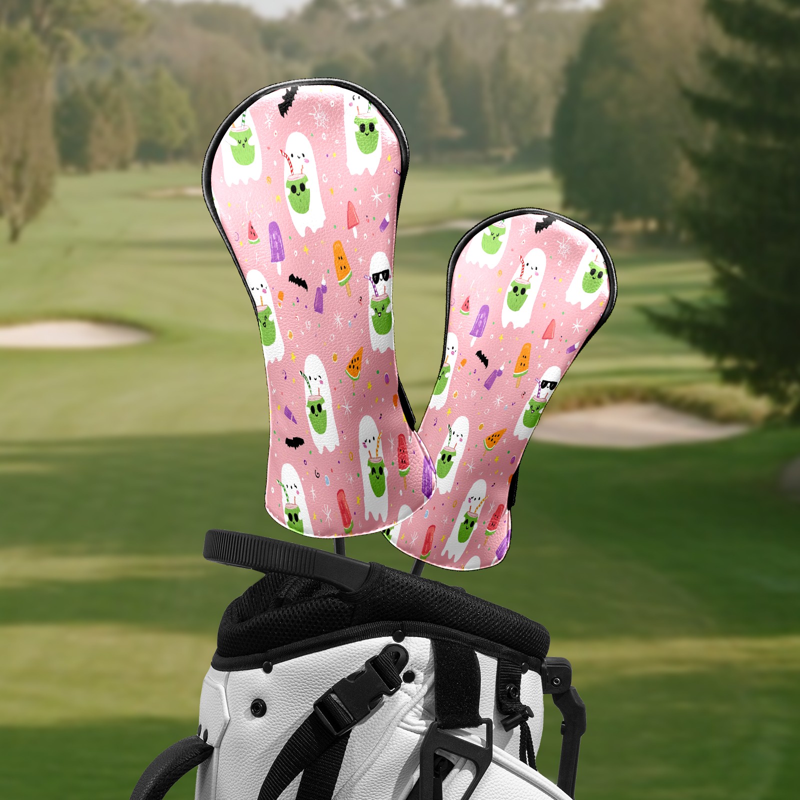 Counullo Golf Head Covers - Ghost Cartoon Pink Driver Fairway Headcover, Durable PU Leather & Soft Velvet Lining, Secure Elastic Band, Perfect Christmas Golf Gift for Men