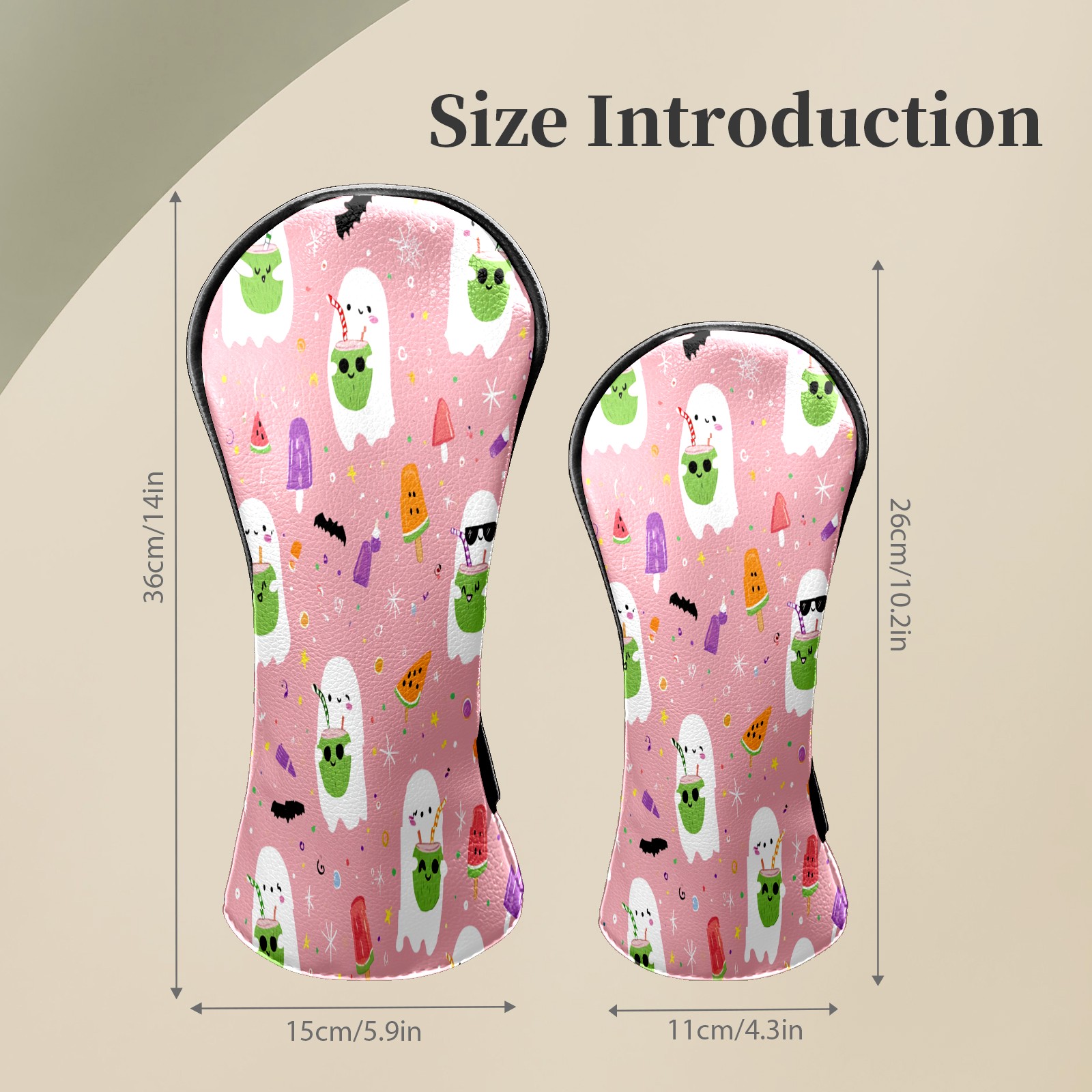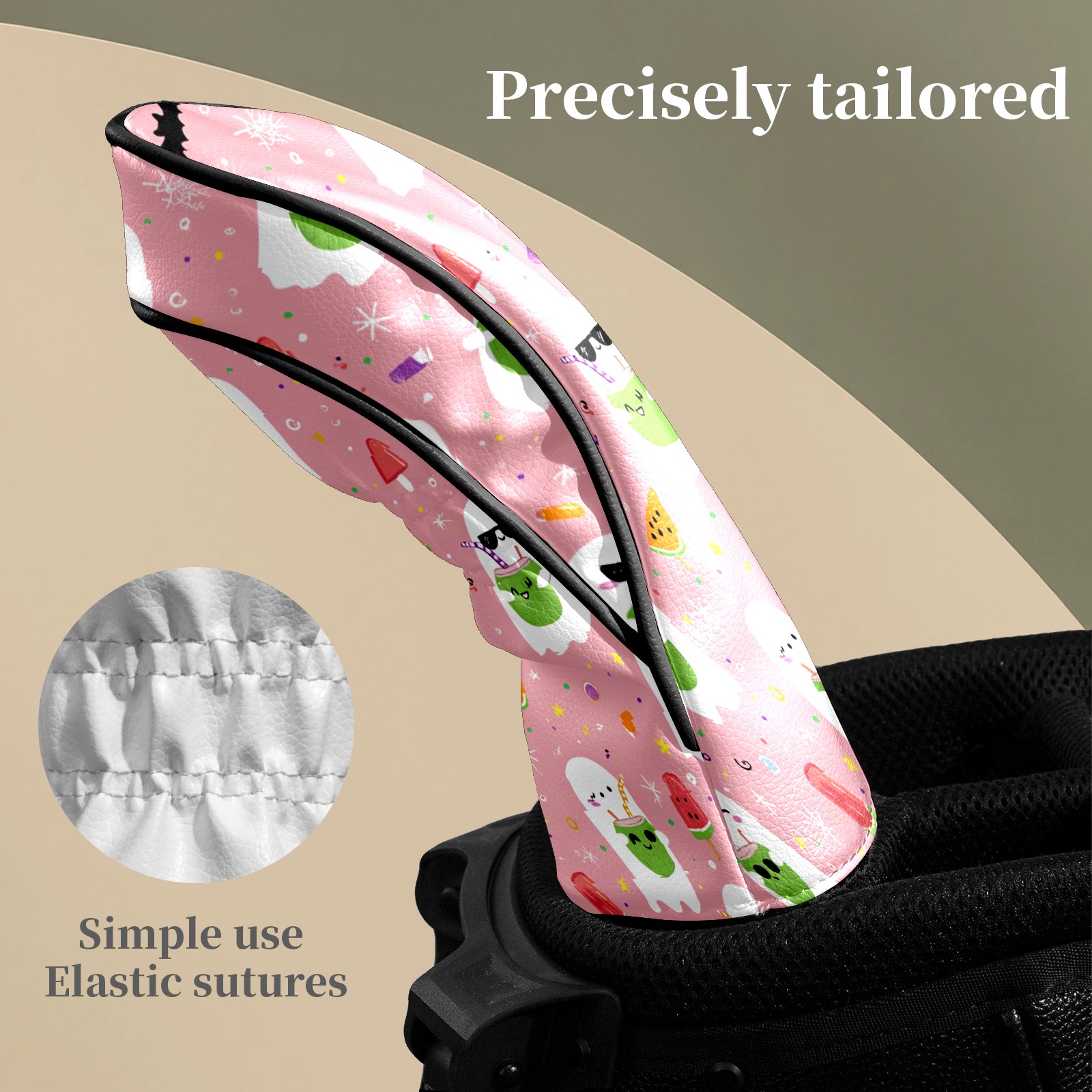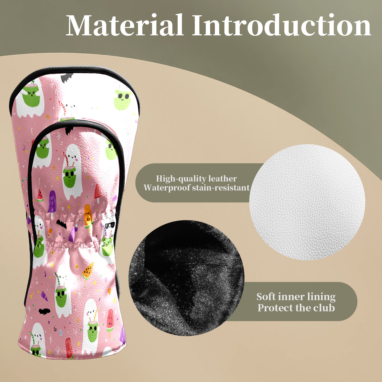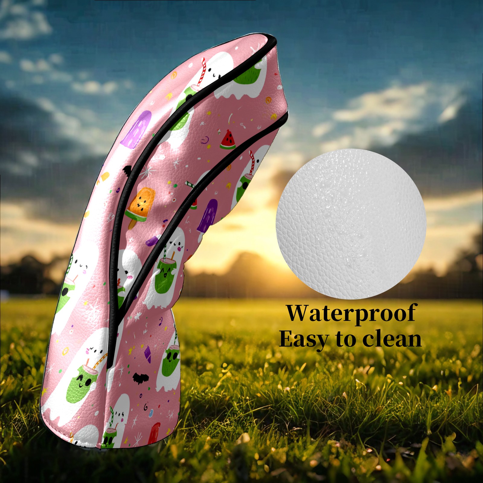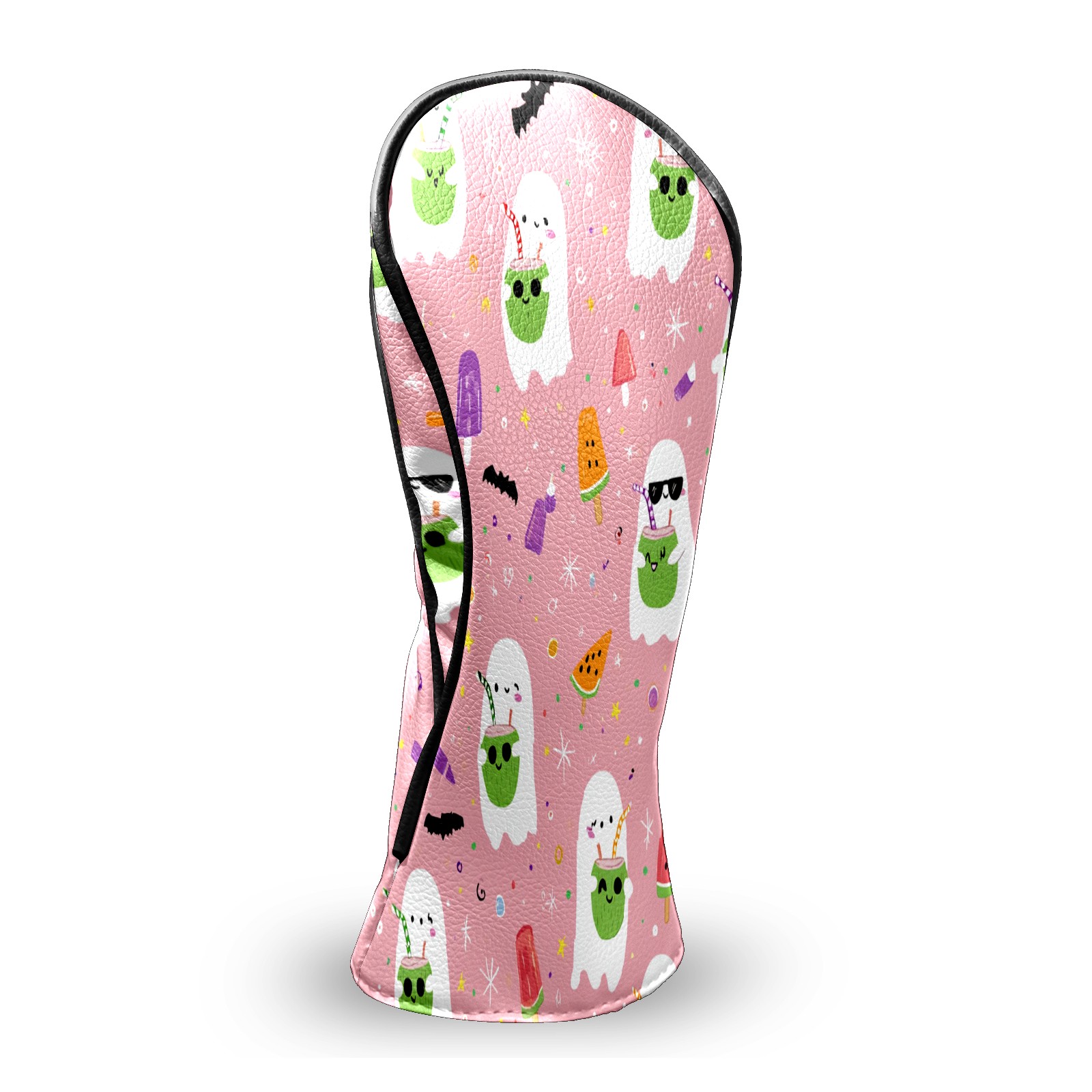 Counullo Golf Head Covers - Ghost Cartoon Pink Driver Fairway Headcover, Durable PU Leather & Soft Velvet Lining, Secure Elastic Band, Perfect Christmas Golf Gift for Men