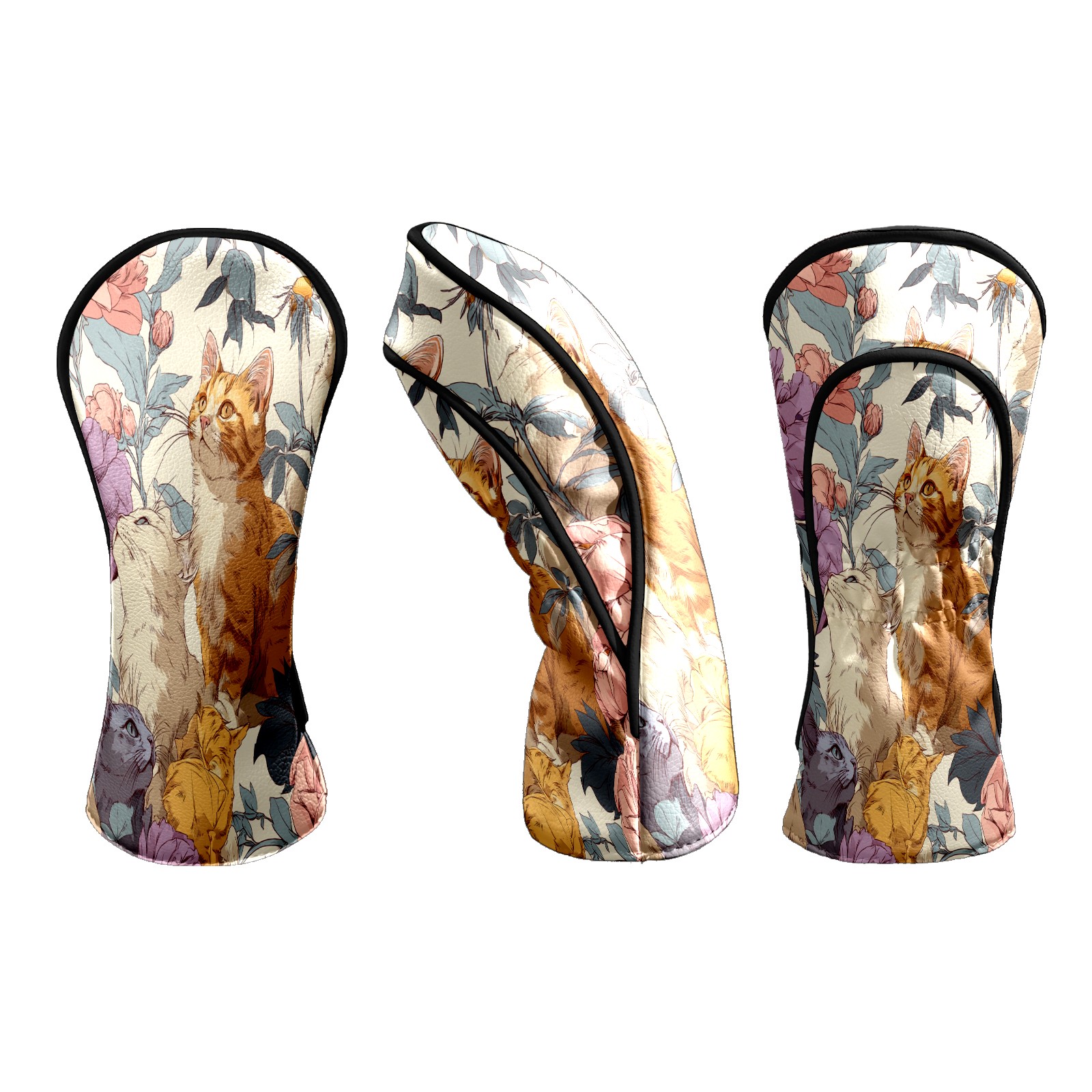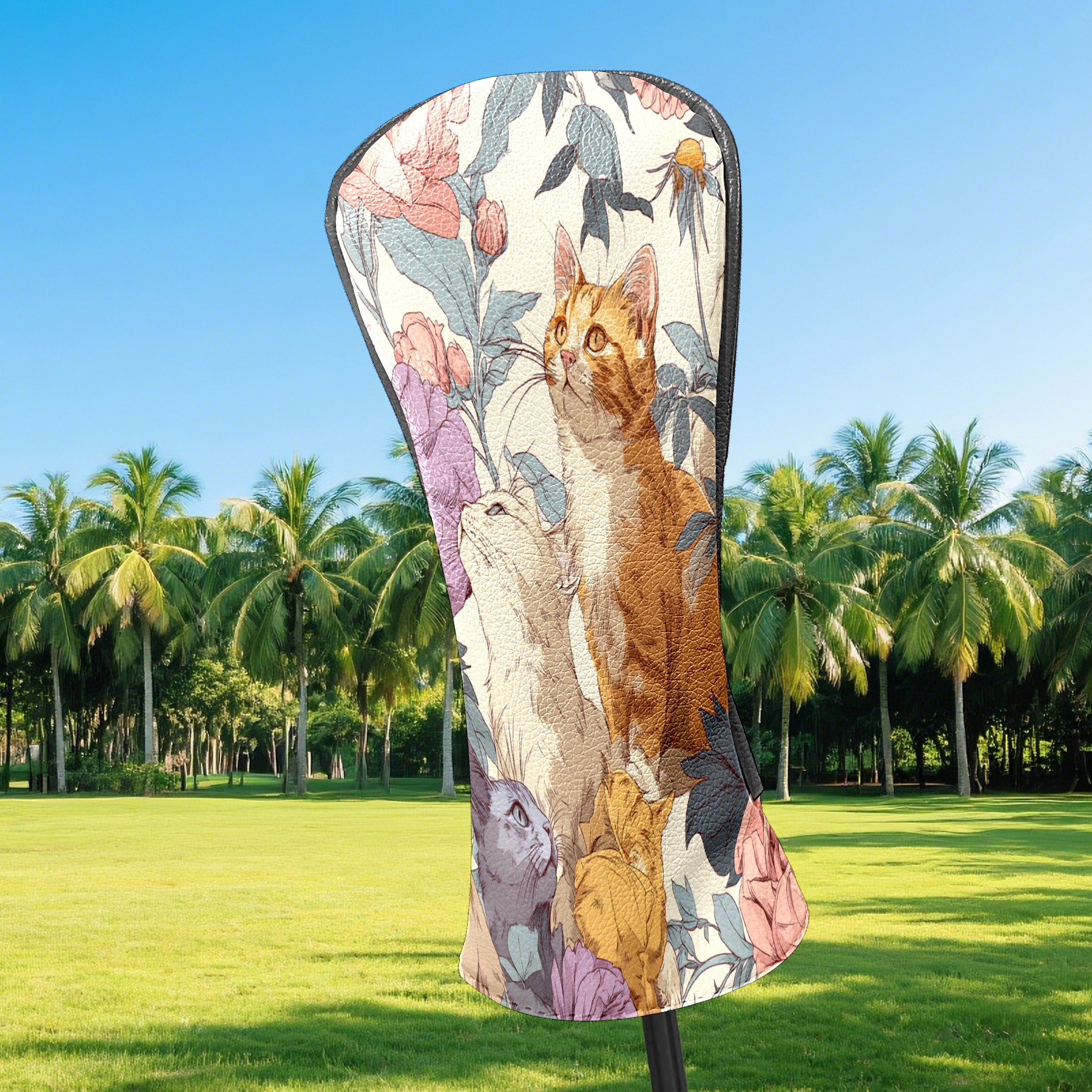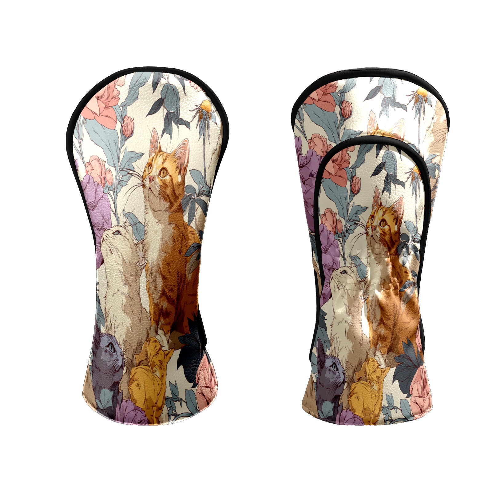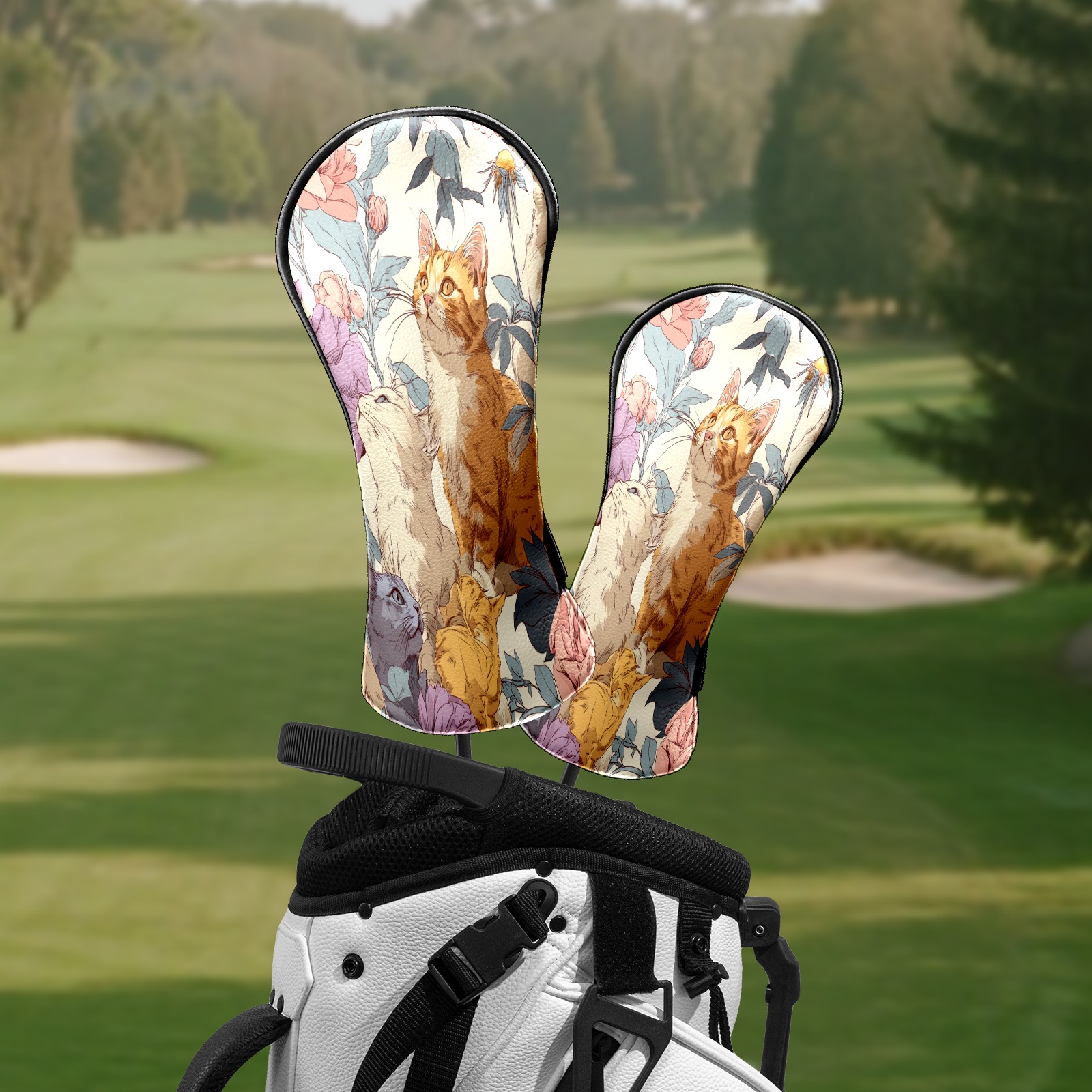 Counullo Golf Head Covers - Cat Floral Orange Driver Fairway Headcover, Durable PU Leather & Soft Velvet Lining, Secure Elastic Band, Perfect Christmas Golf Gift for Men