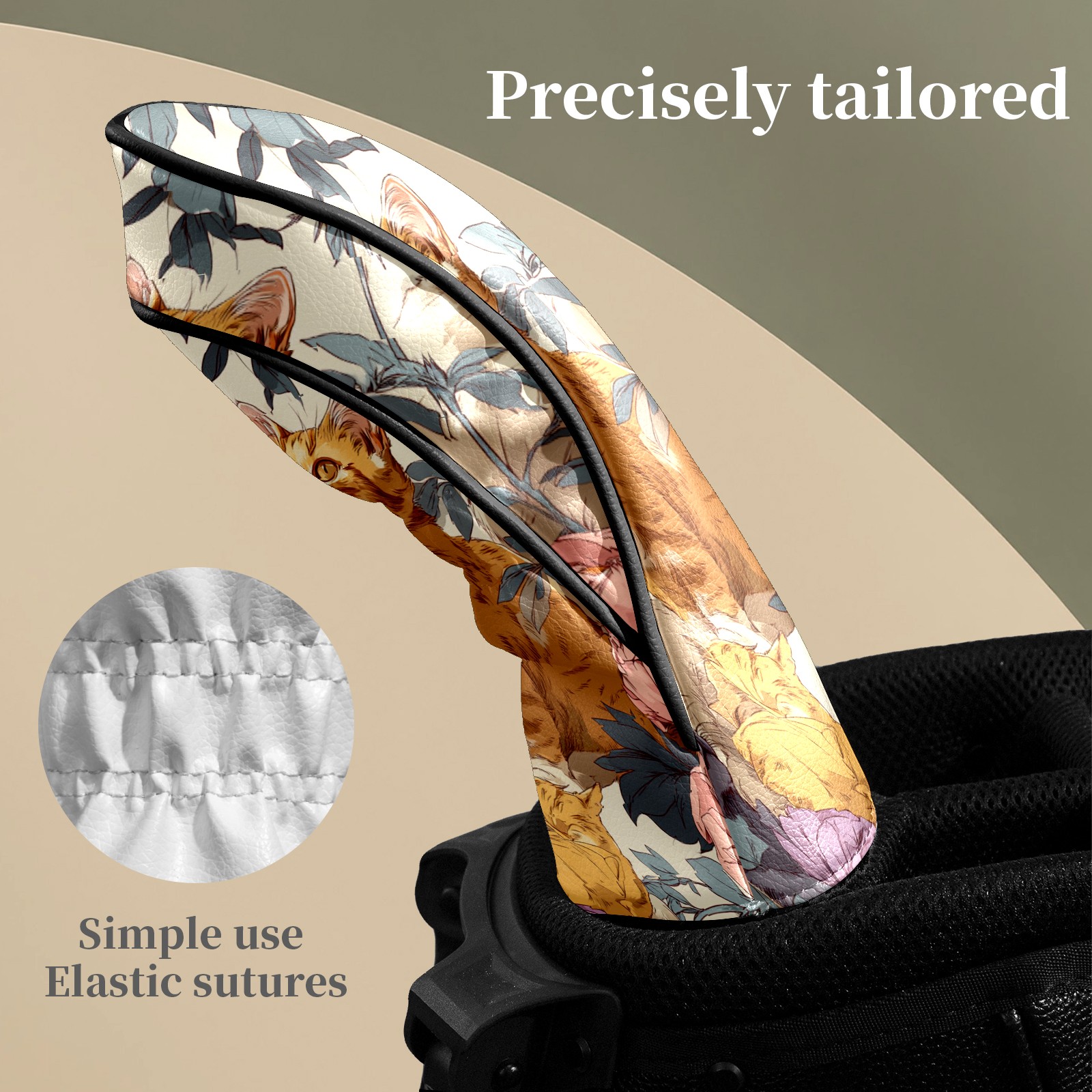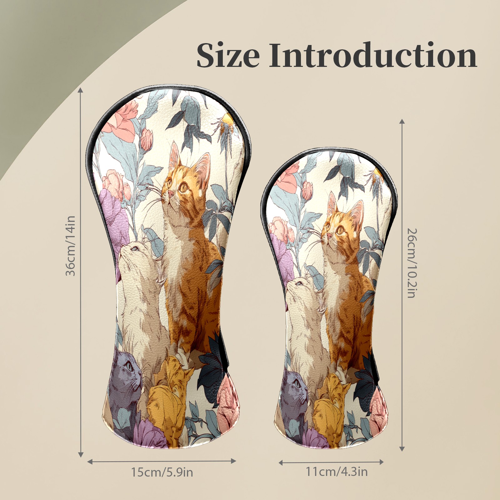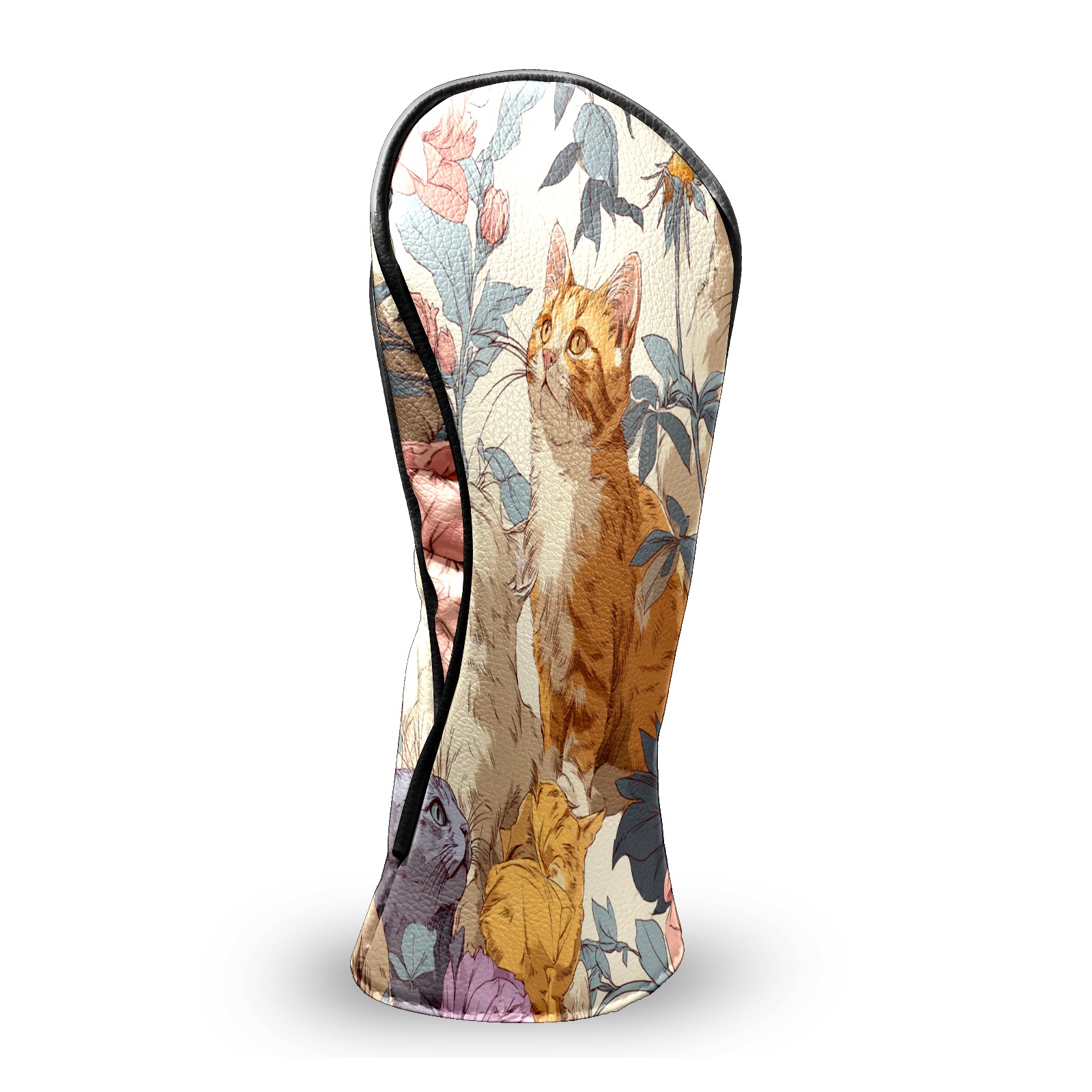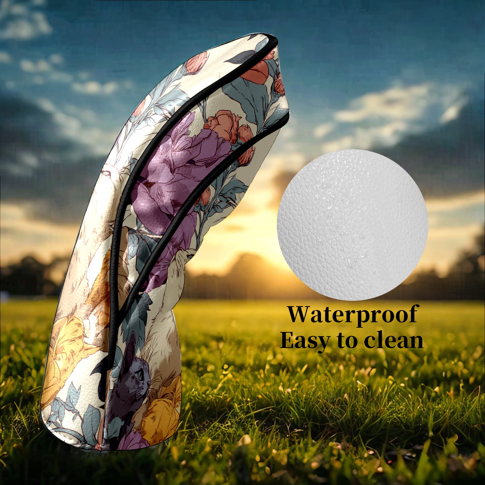 Counullo Golf Head Covers - Cat Floral Orange Driver Fairway Headcover, Durable PU Leather & Soft Velvet Lining, Secure Elastic Band, Perfect Christmas Golf Gift for Men