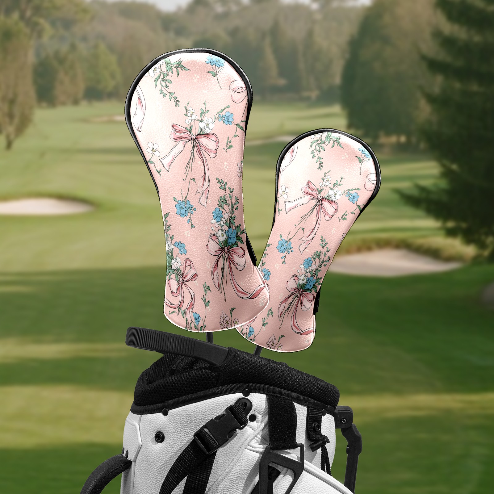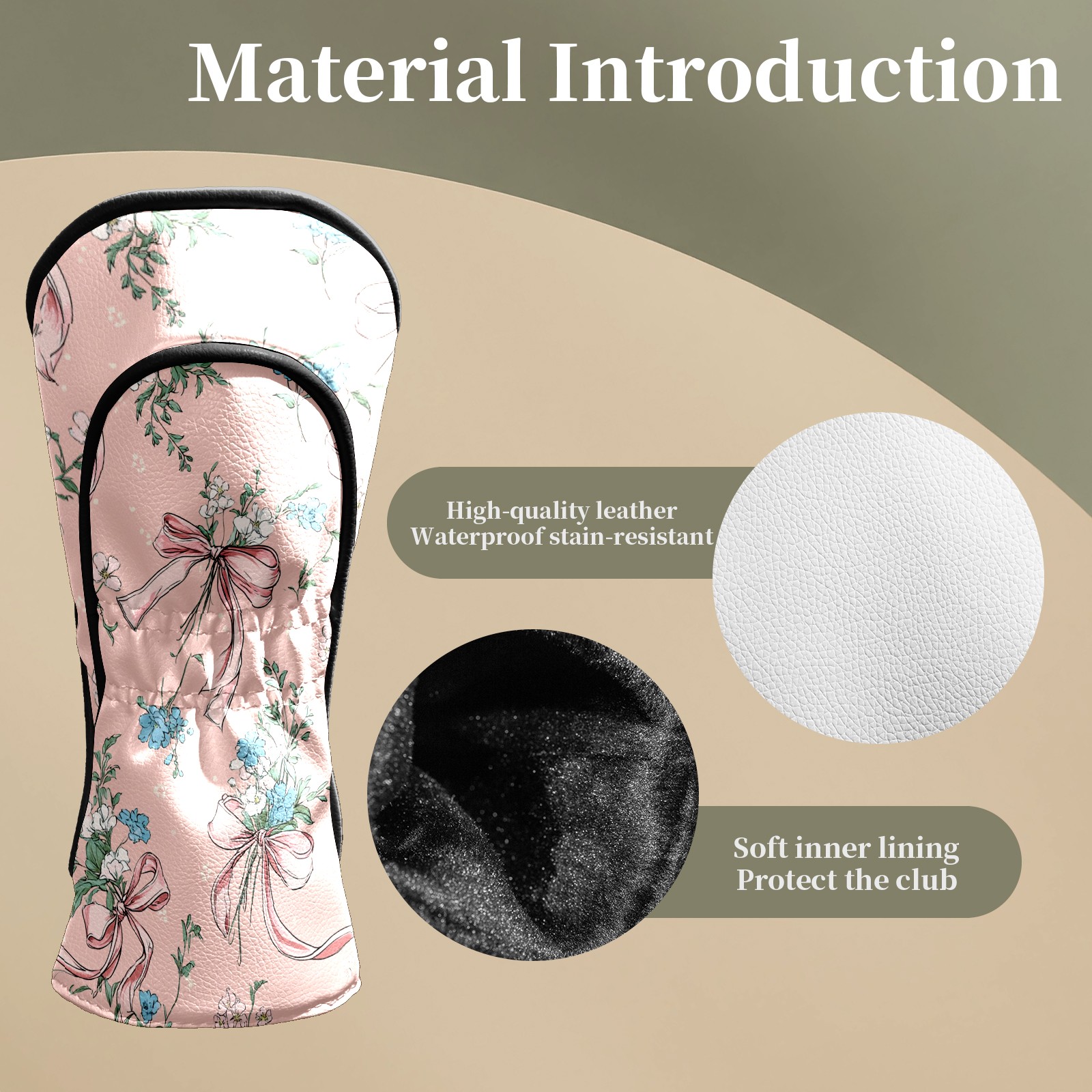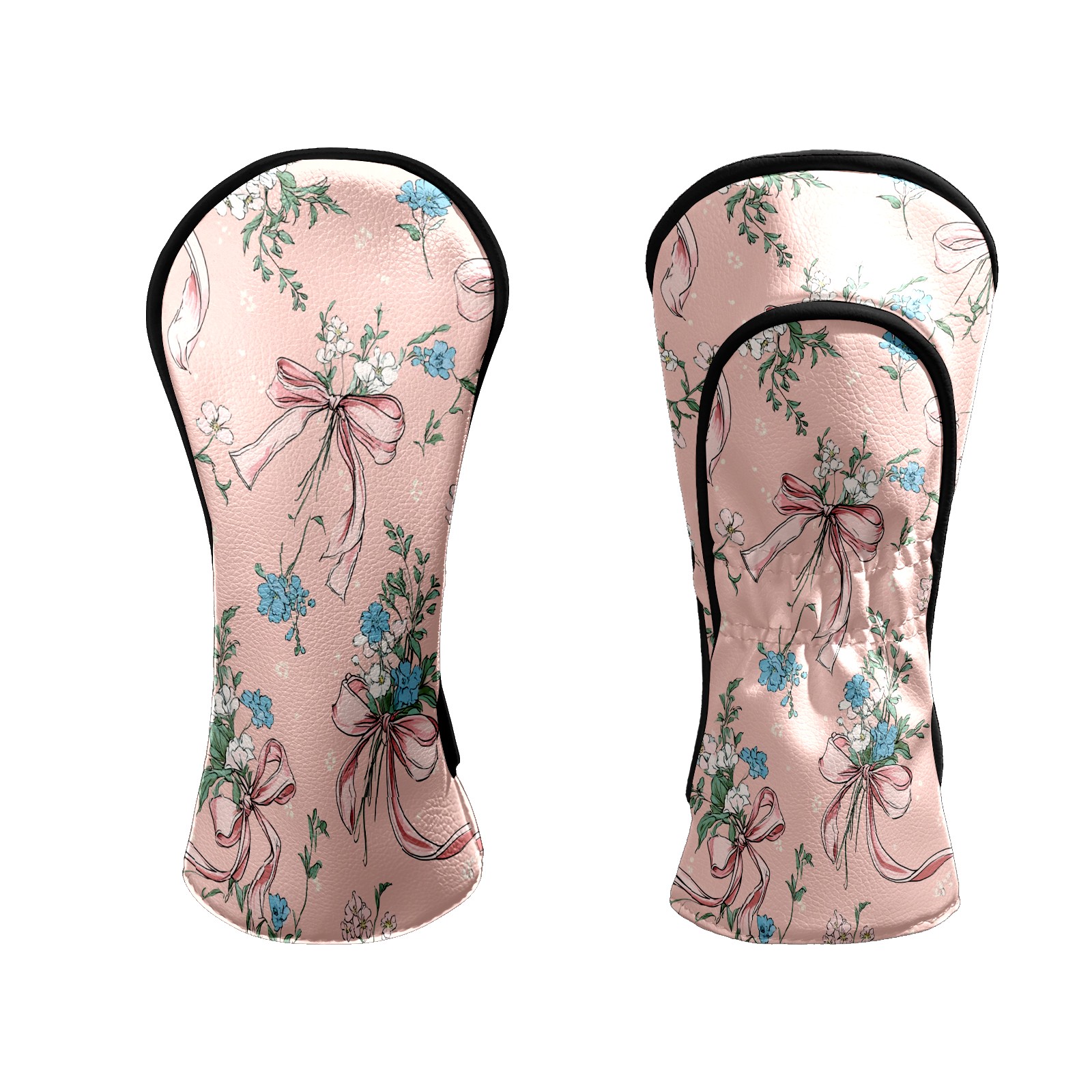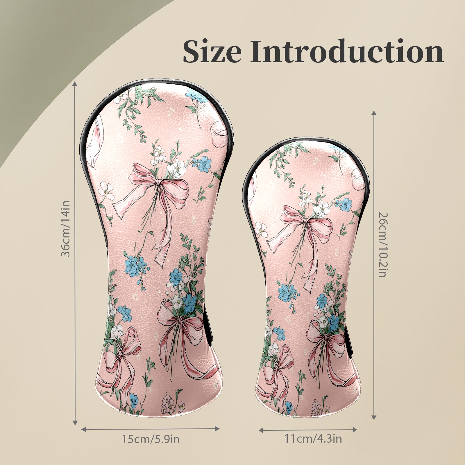 Counullo Golf Head Covers - Floral Bow PinkBlue Driver Fairway Headcover, Durable PU Leather & Soft Velvet Lining, Secure Elastic Band, Perfect Christmas Golf Gift for Men
