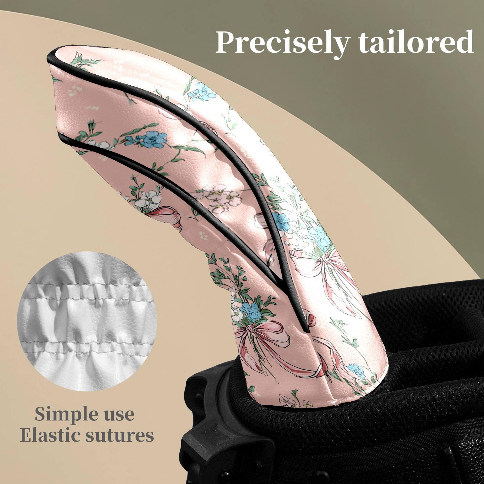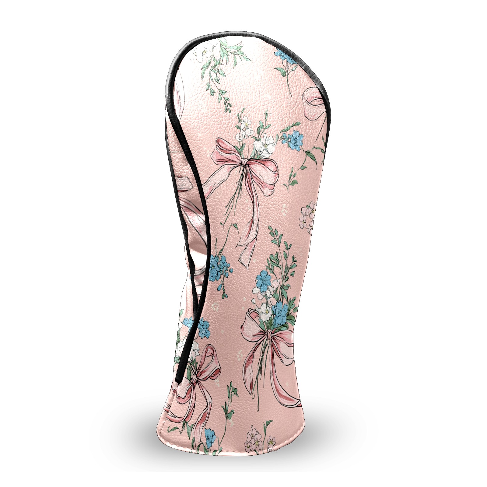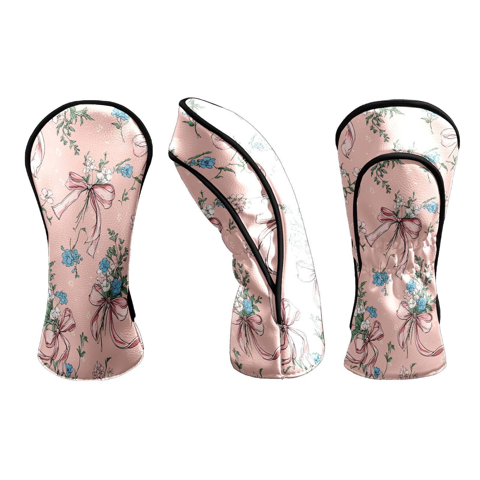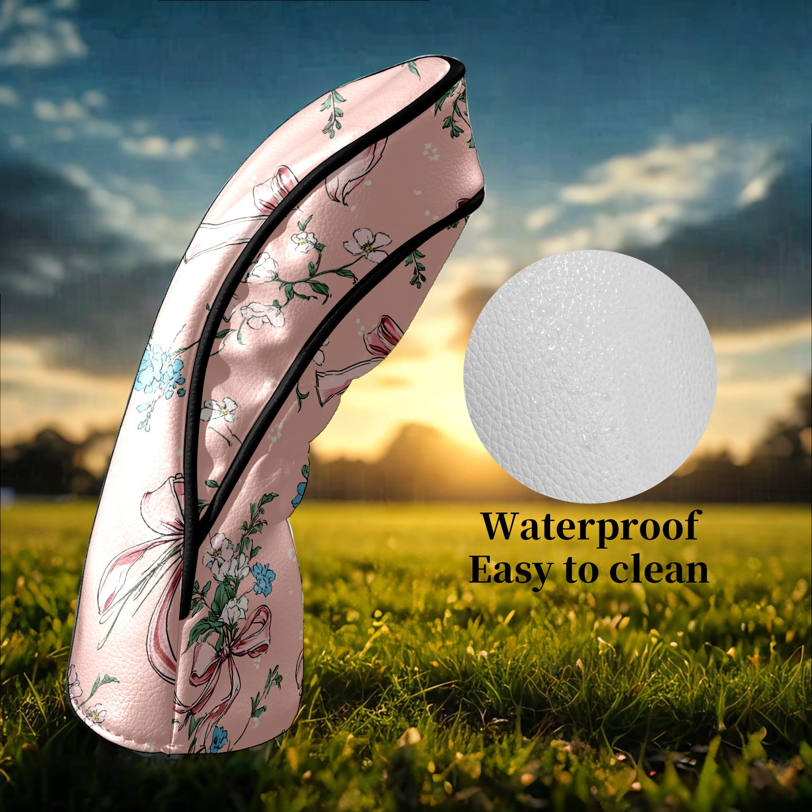 Counullo Golf Head Covers - Floral Bow PinkBlue Driver Fairway Headcover, Durable PU Leather & Soft Velvet Lining, Secure Elastic Band, Perfect Christmas Golf Gift for Men