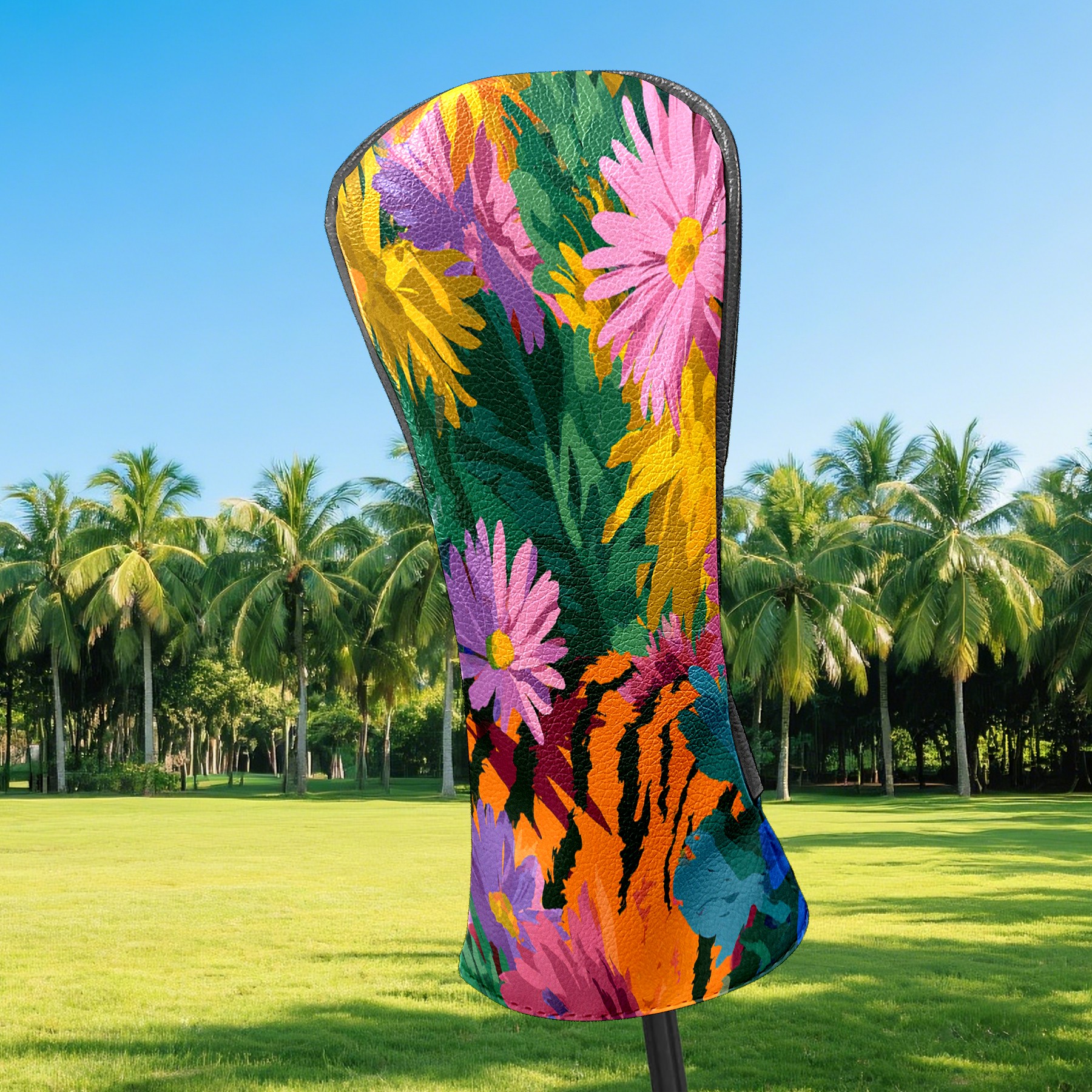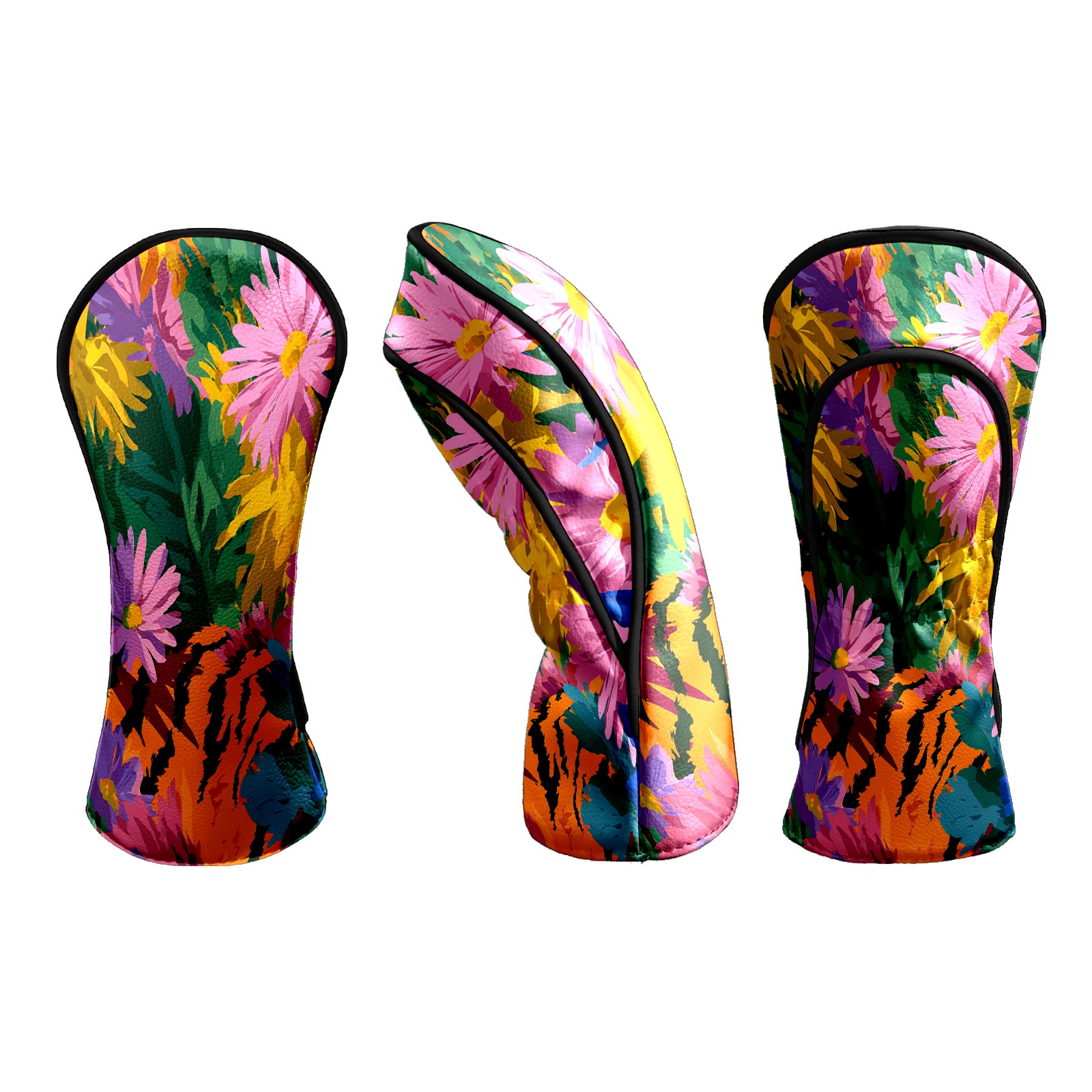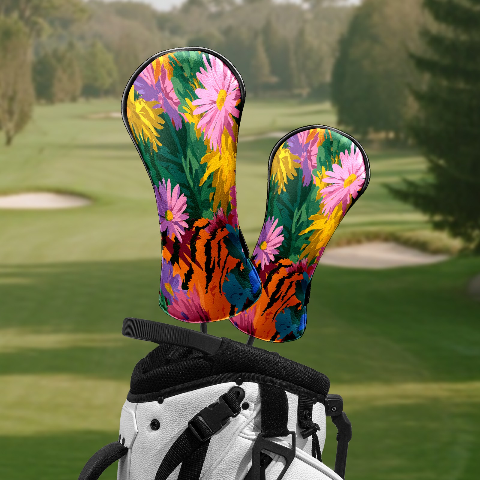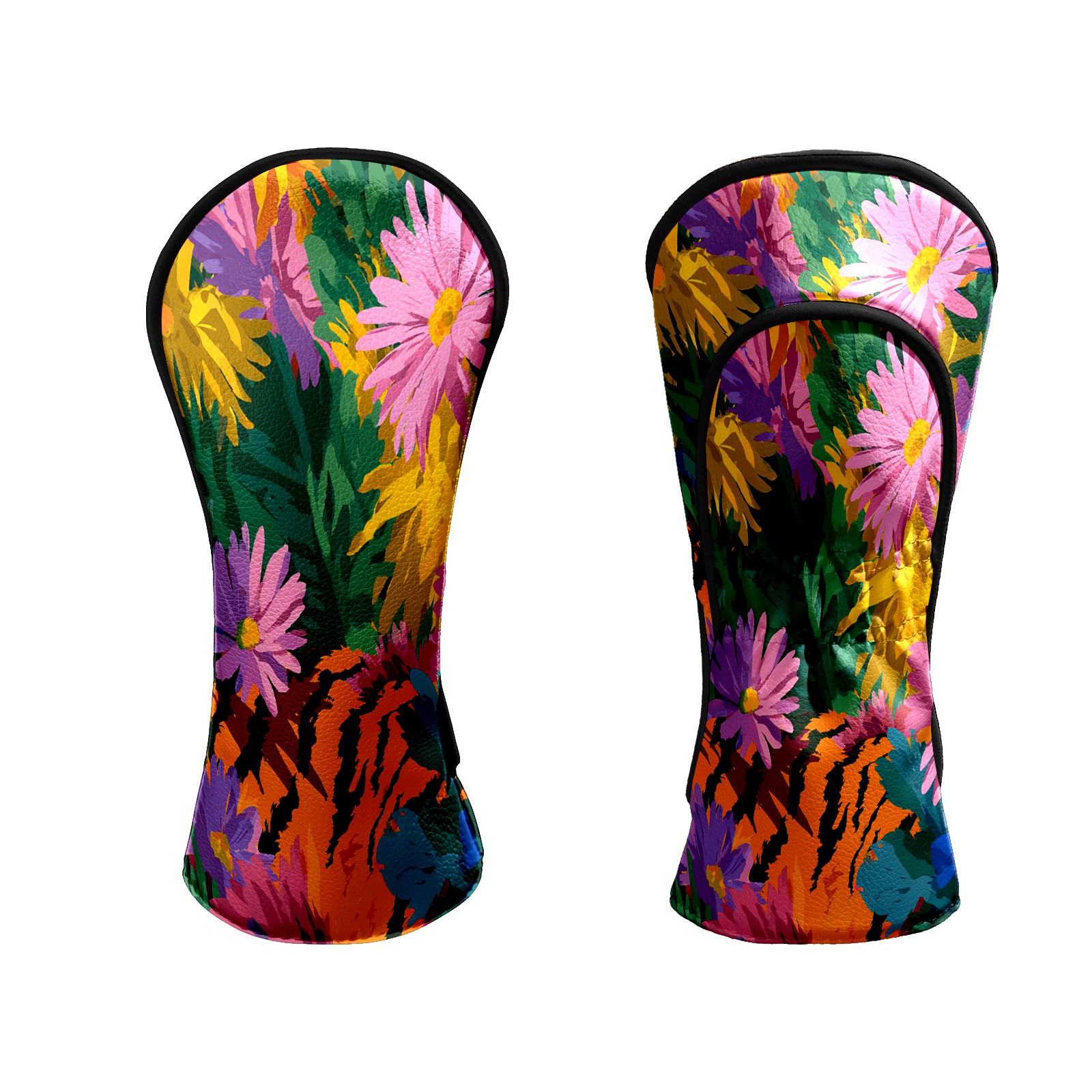 Counullo Golf Head Covers - Floral Tiger Multicolor Driver Fairway Headcover, Durable PU Leather & Soft Velvet Lining, Secure Elastic Band, Perfect Christmas Golf Gift for Men