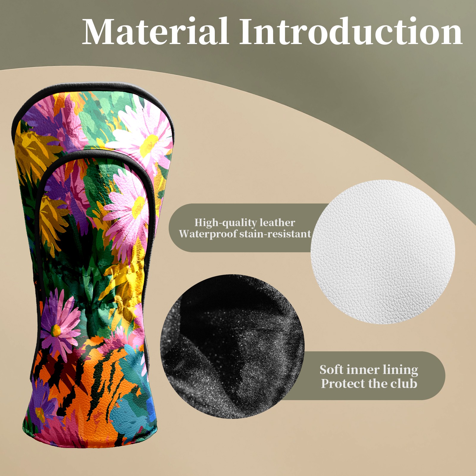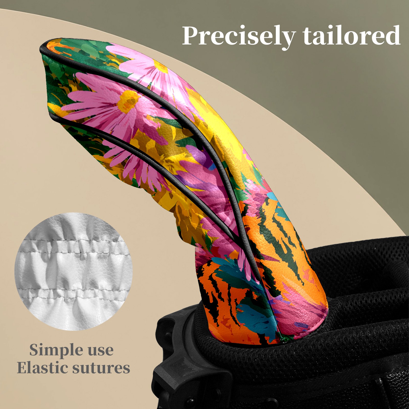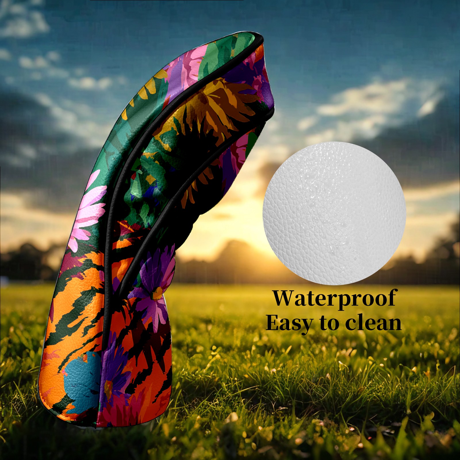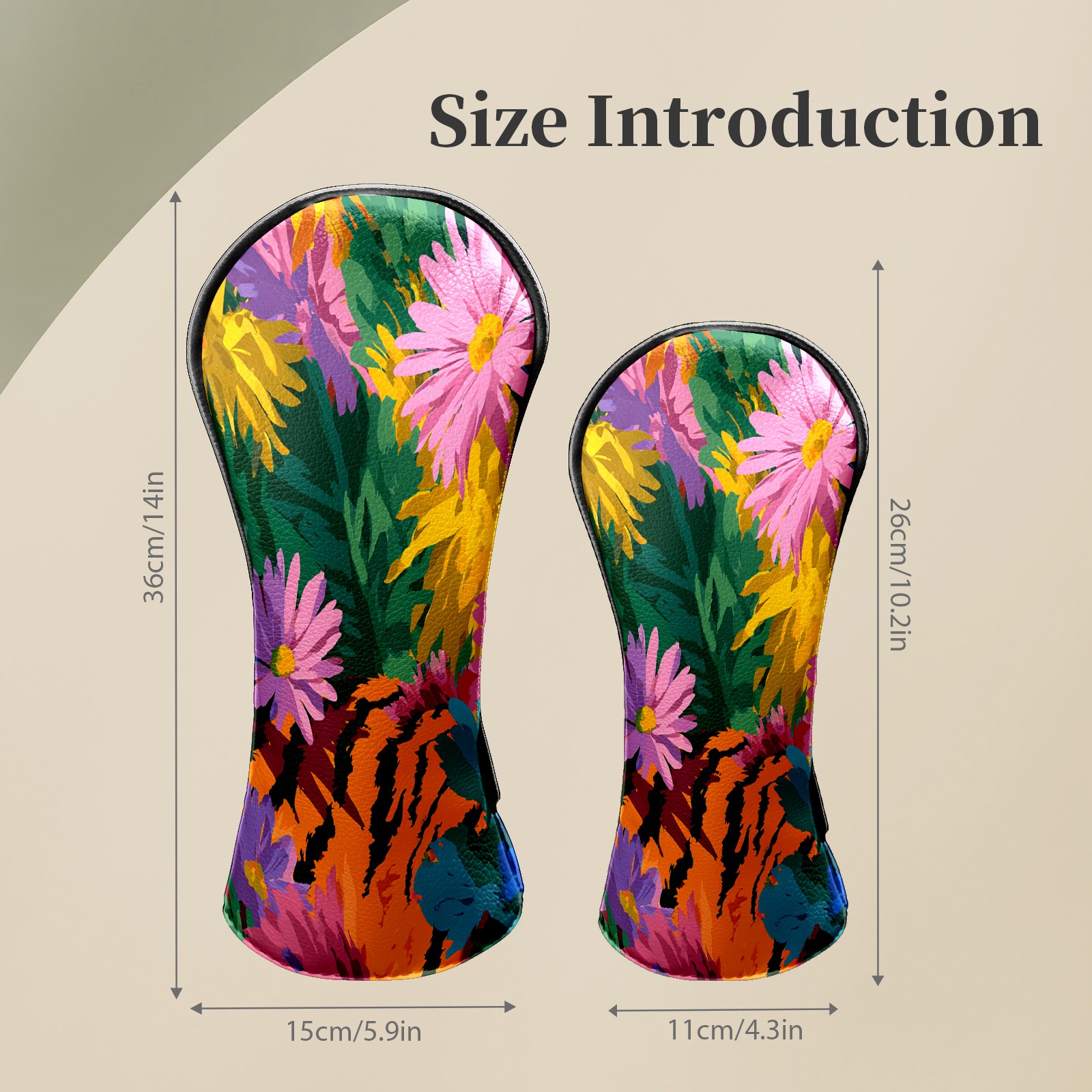 Counullo Golf Head Covers - Floral Tiger Multicolor Driver Fairway Headcover, Durable PU Leather & Soft Velvet Lining, Secure Elastic Band, Perfect Christmas Golf Gift for Men