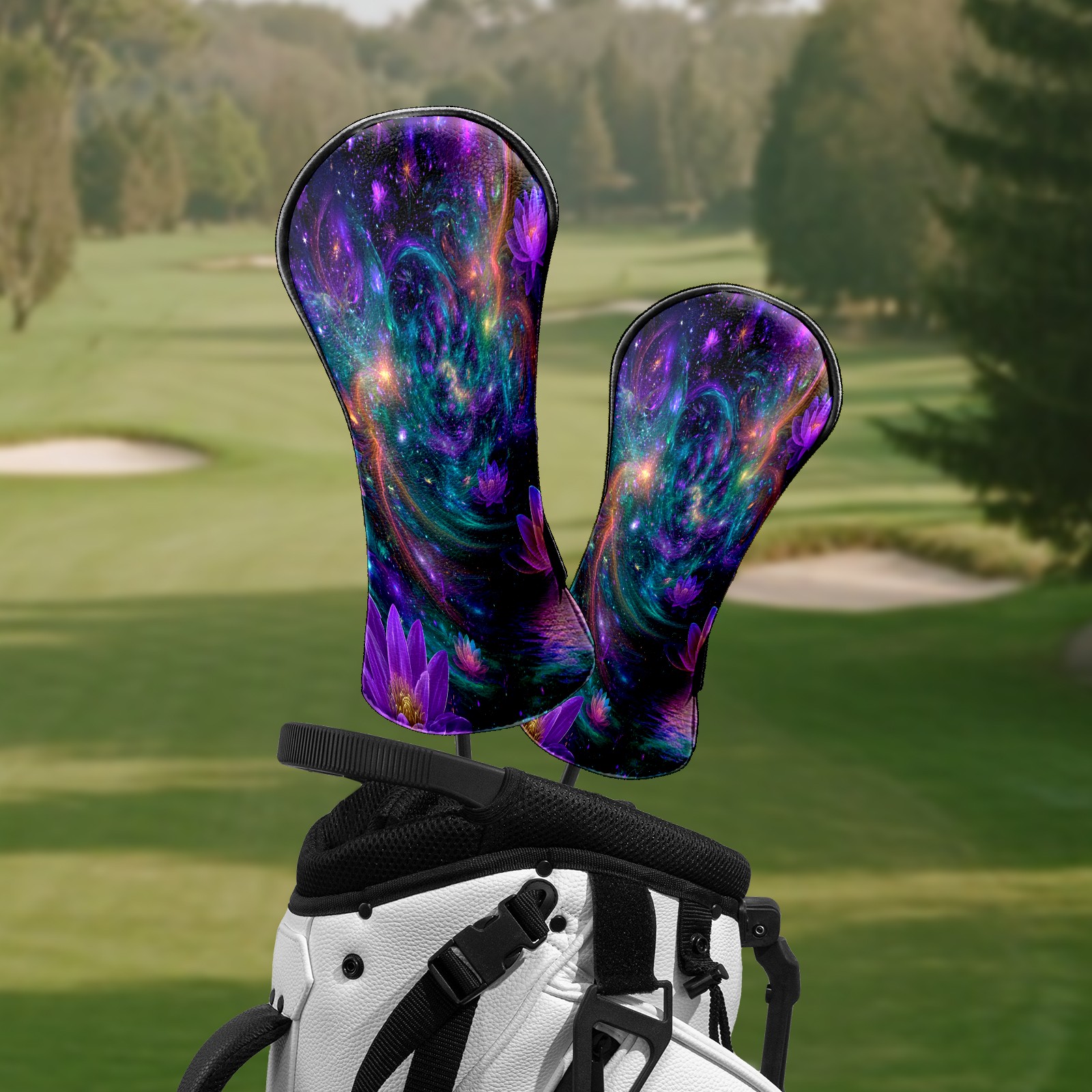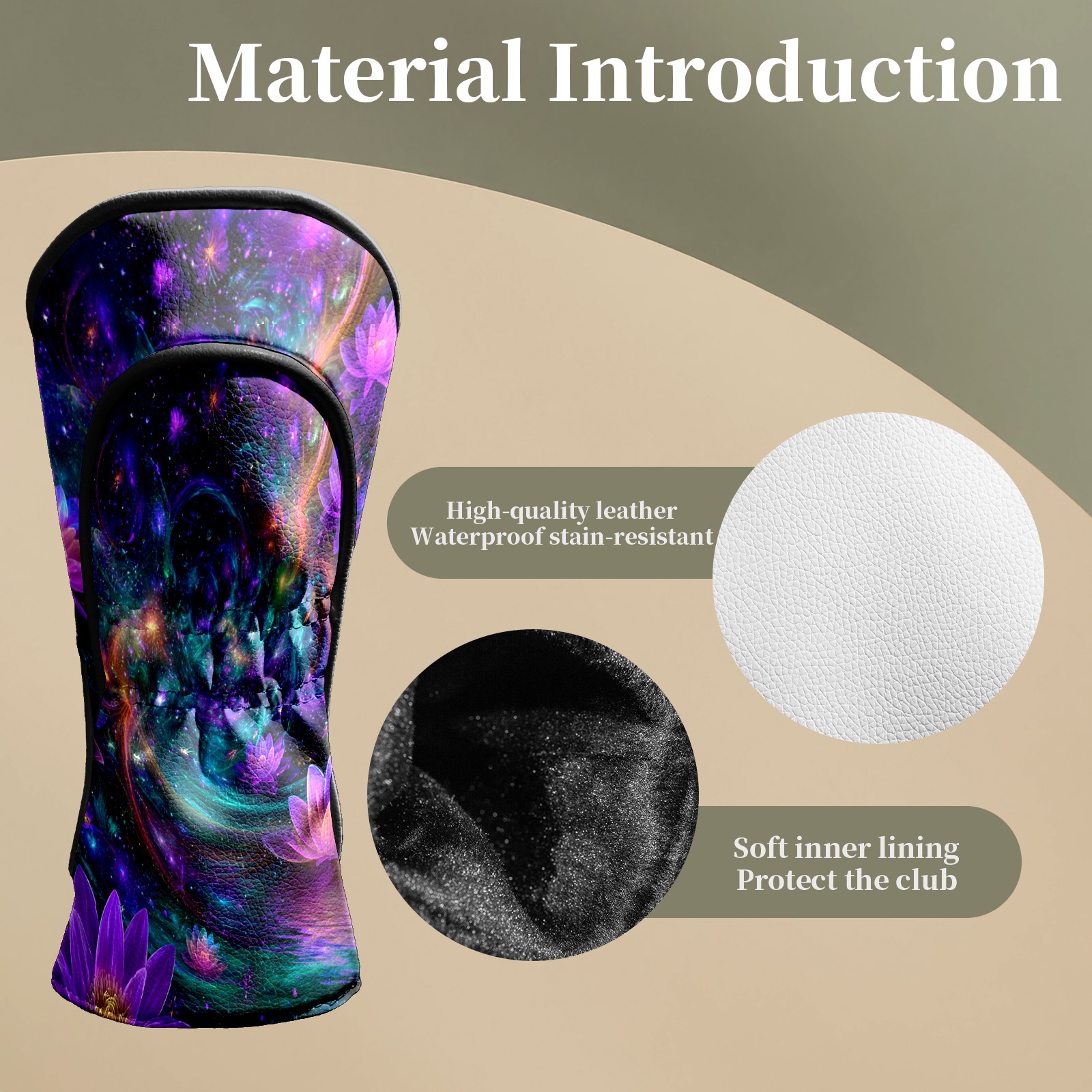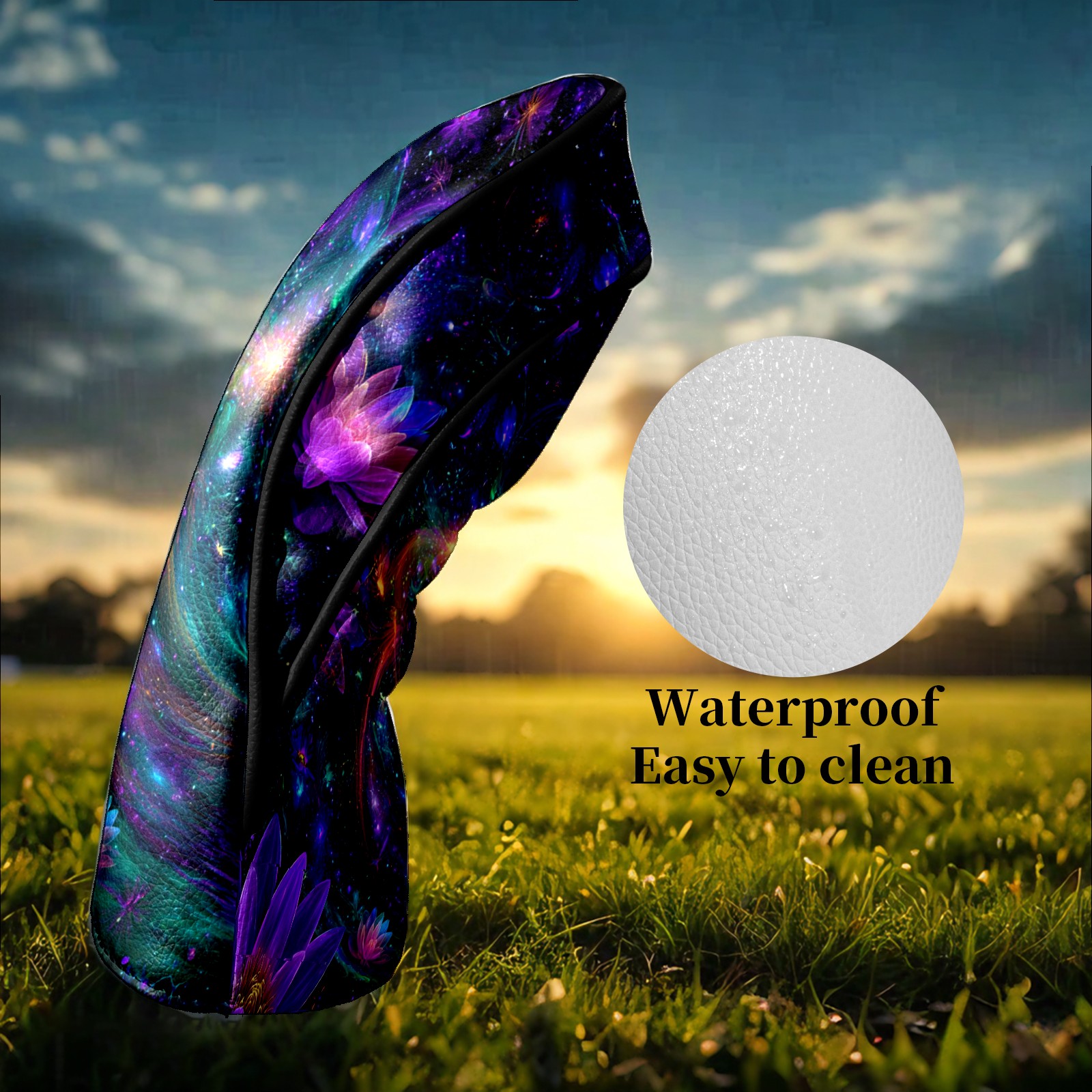 Counullo Golf Head Covers - Nebula Floral Purple Driver Fairway Headcover, Durable PU Leather & Soft Velvet Lining, Secure Elastic Band, Perfect Christmas Golf Gift for Men