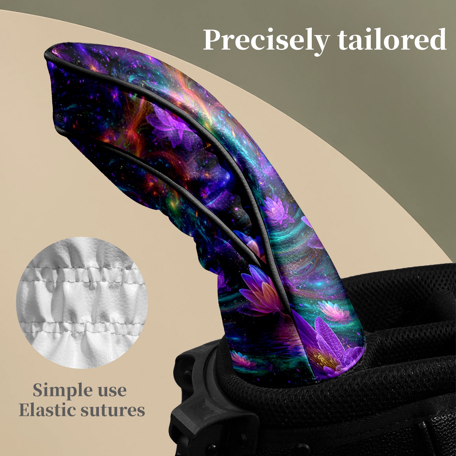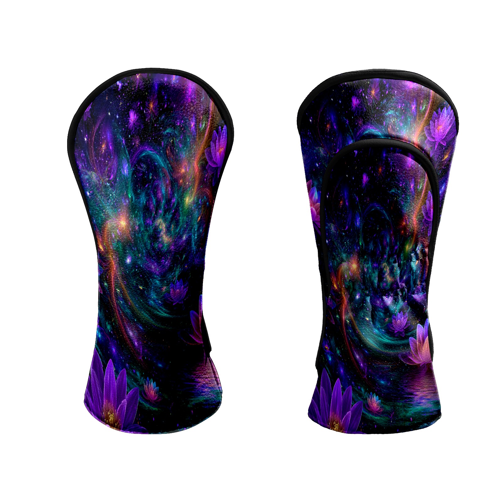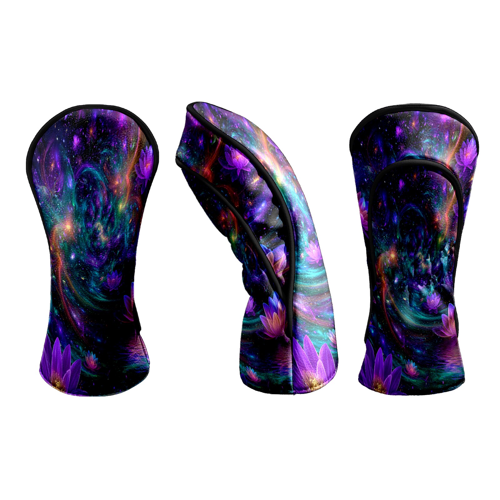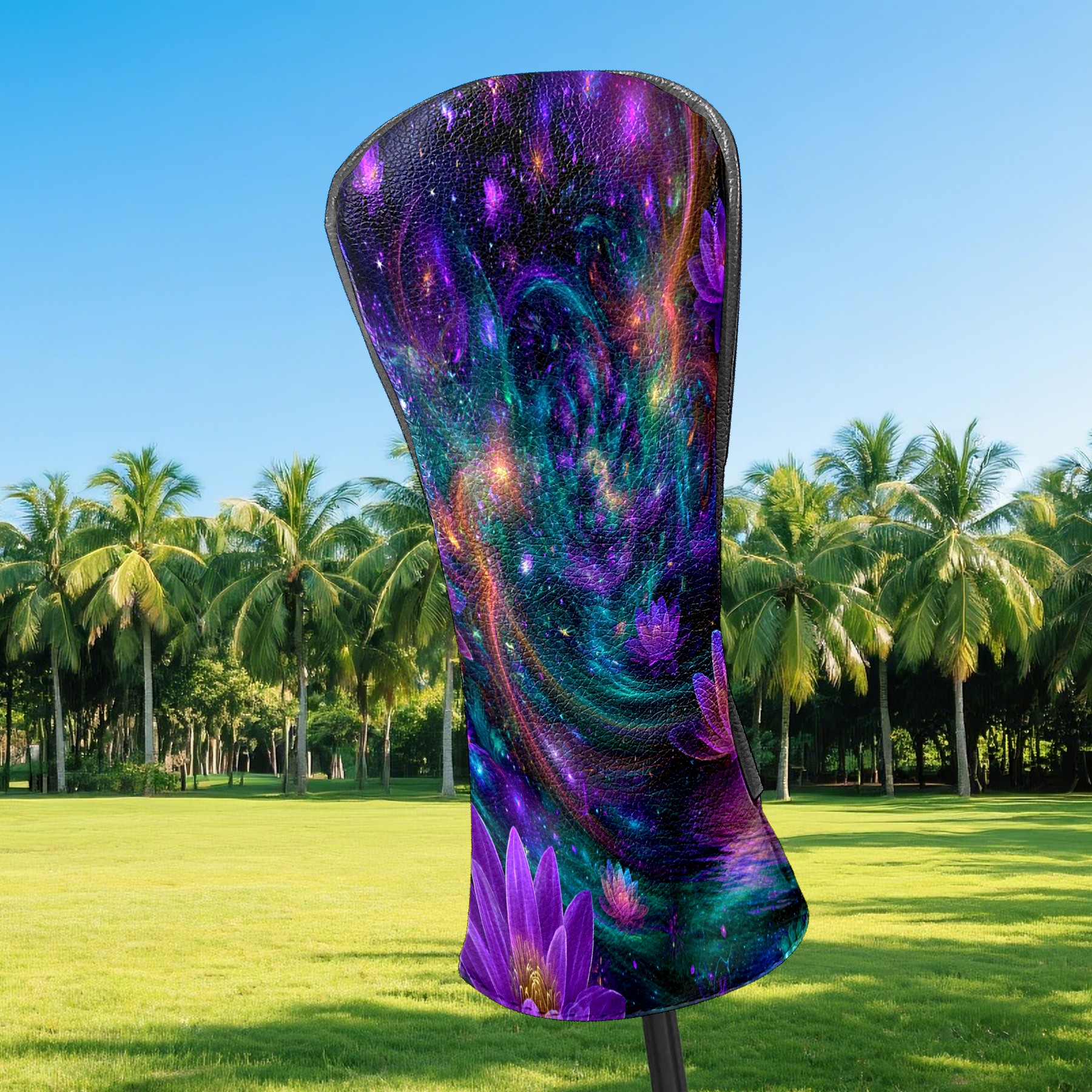Counullo Golf Head Covers - Nebula Floral Purple Driver Fairway Headcover, Durable PU Leather & Soft Velvet Lining, Secure Elastic Band, Perfect Christmas Golf Gift for Men