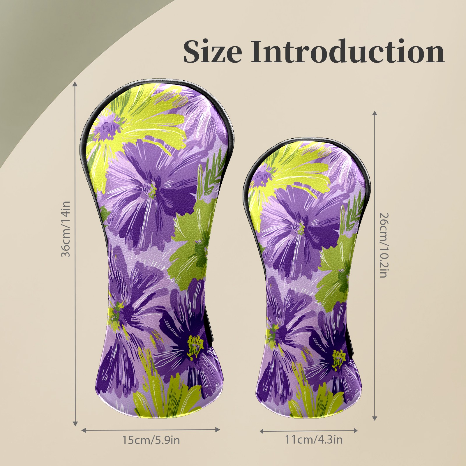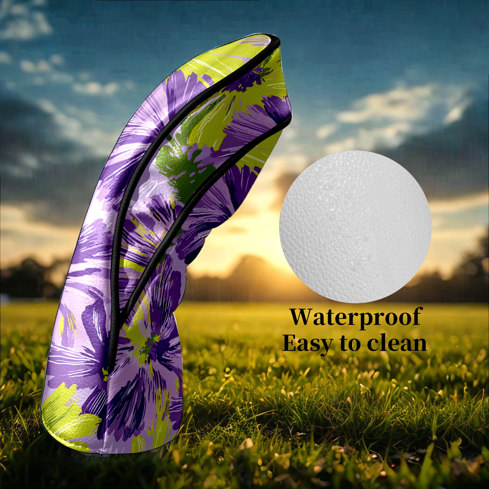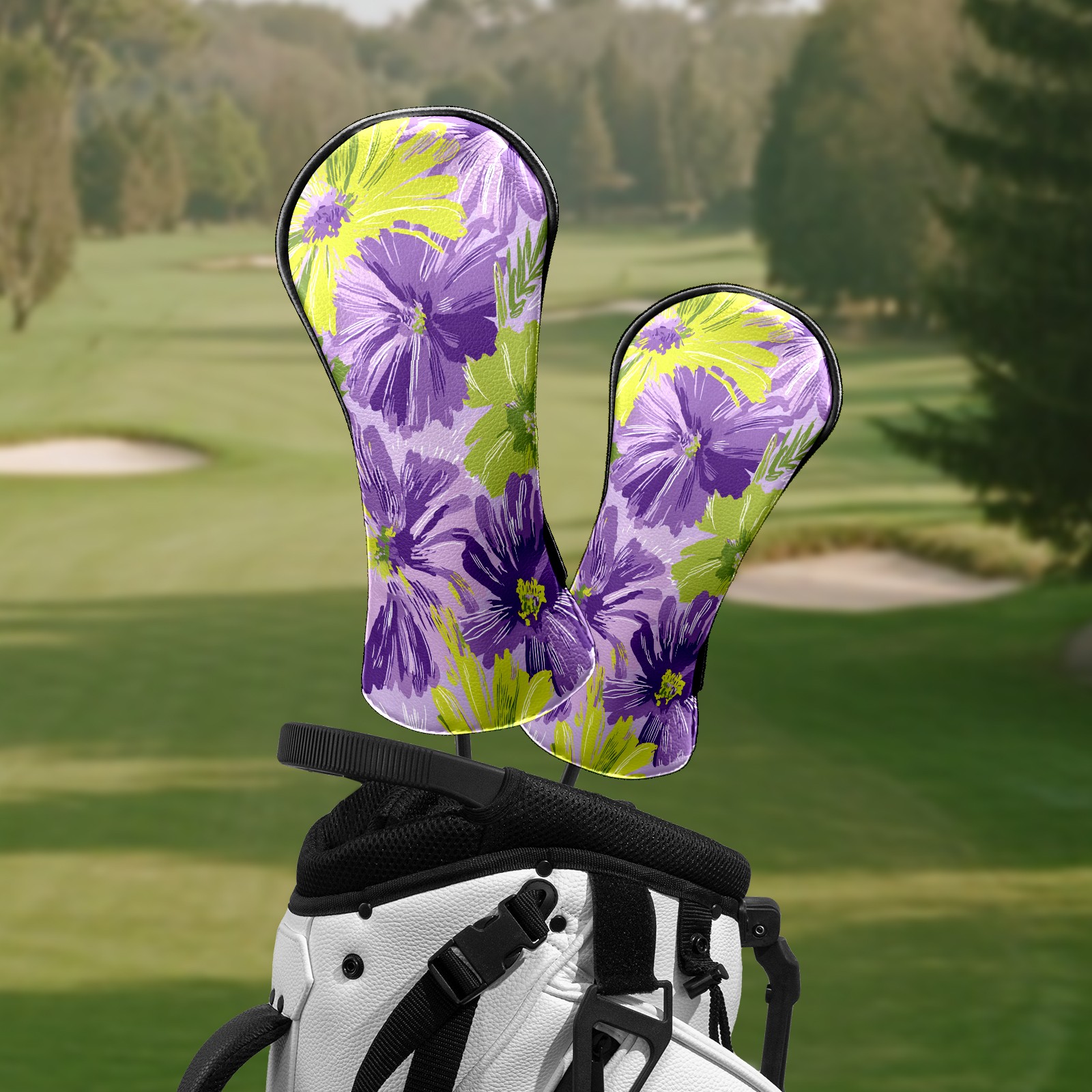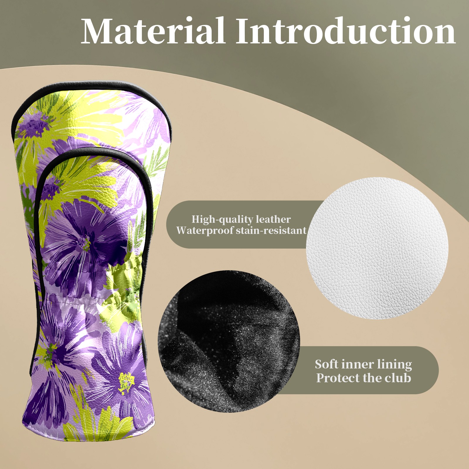 Counullo Golf Head Covers - Floral Purple Driver Fairway Headcover, Durable PU Leather & Soft Velvet Lining, Secure Elastic Band, Perfect Christmas Golf Gift for Men