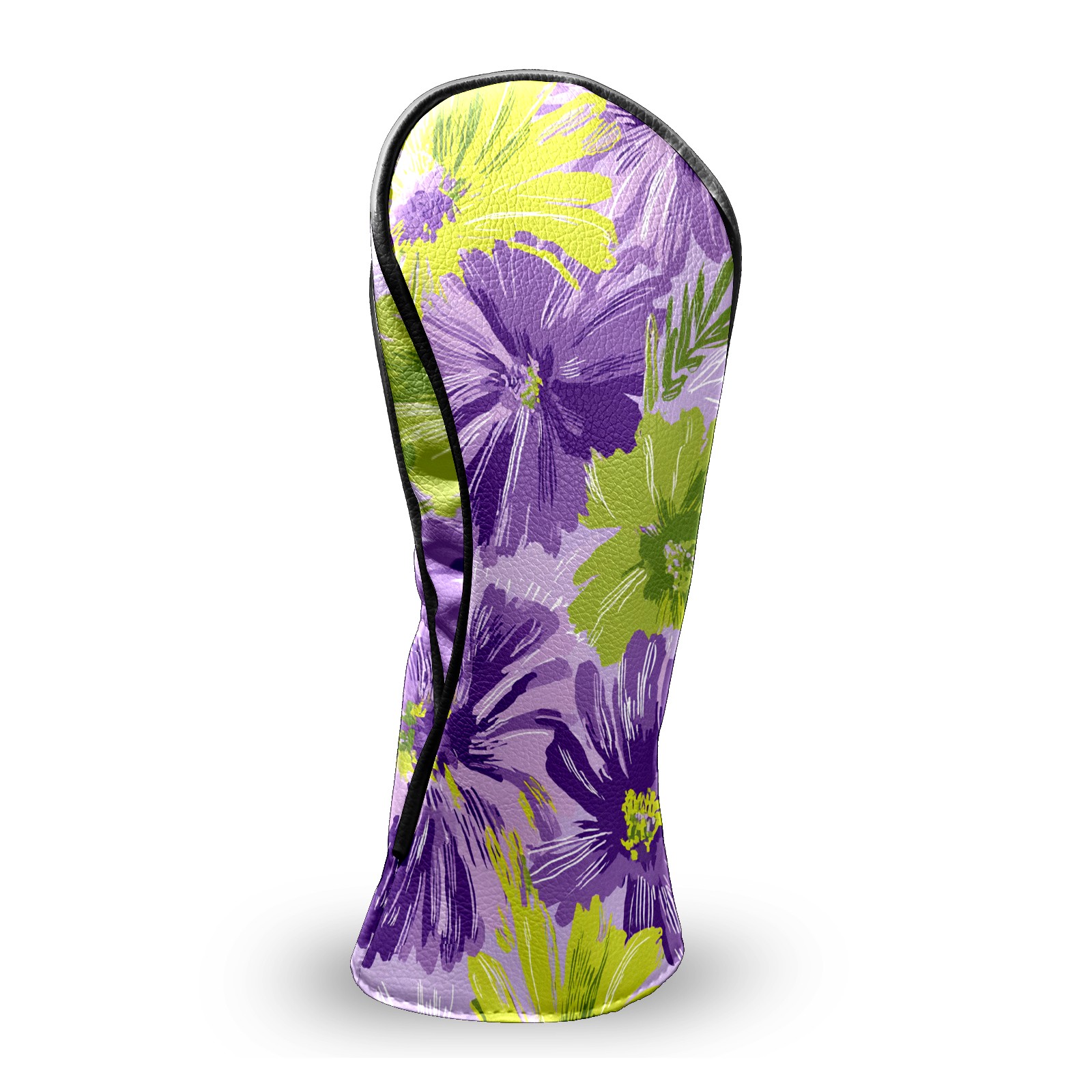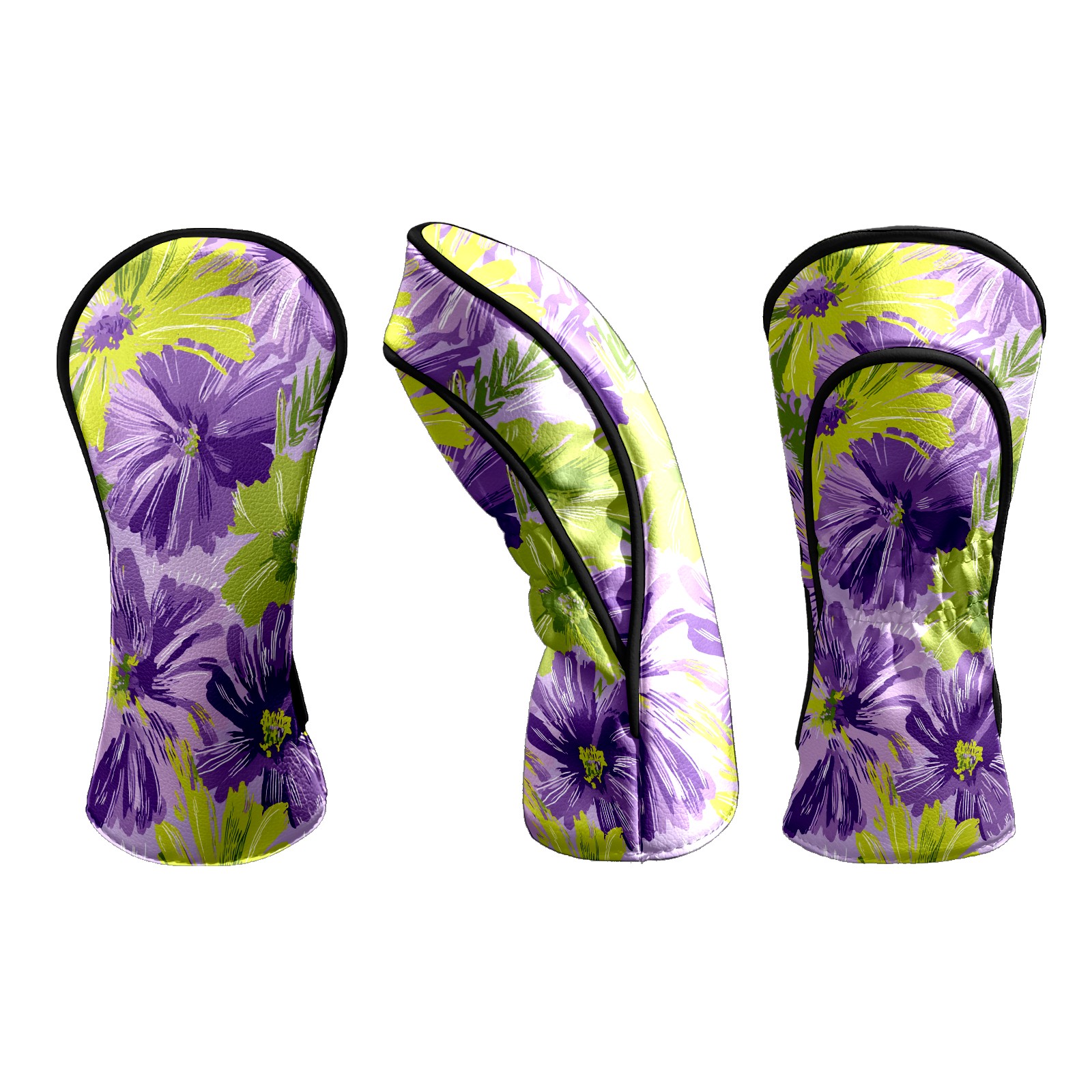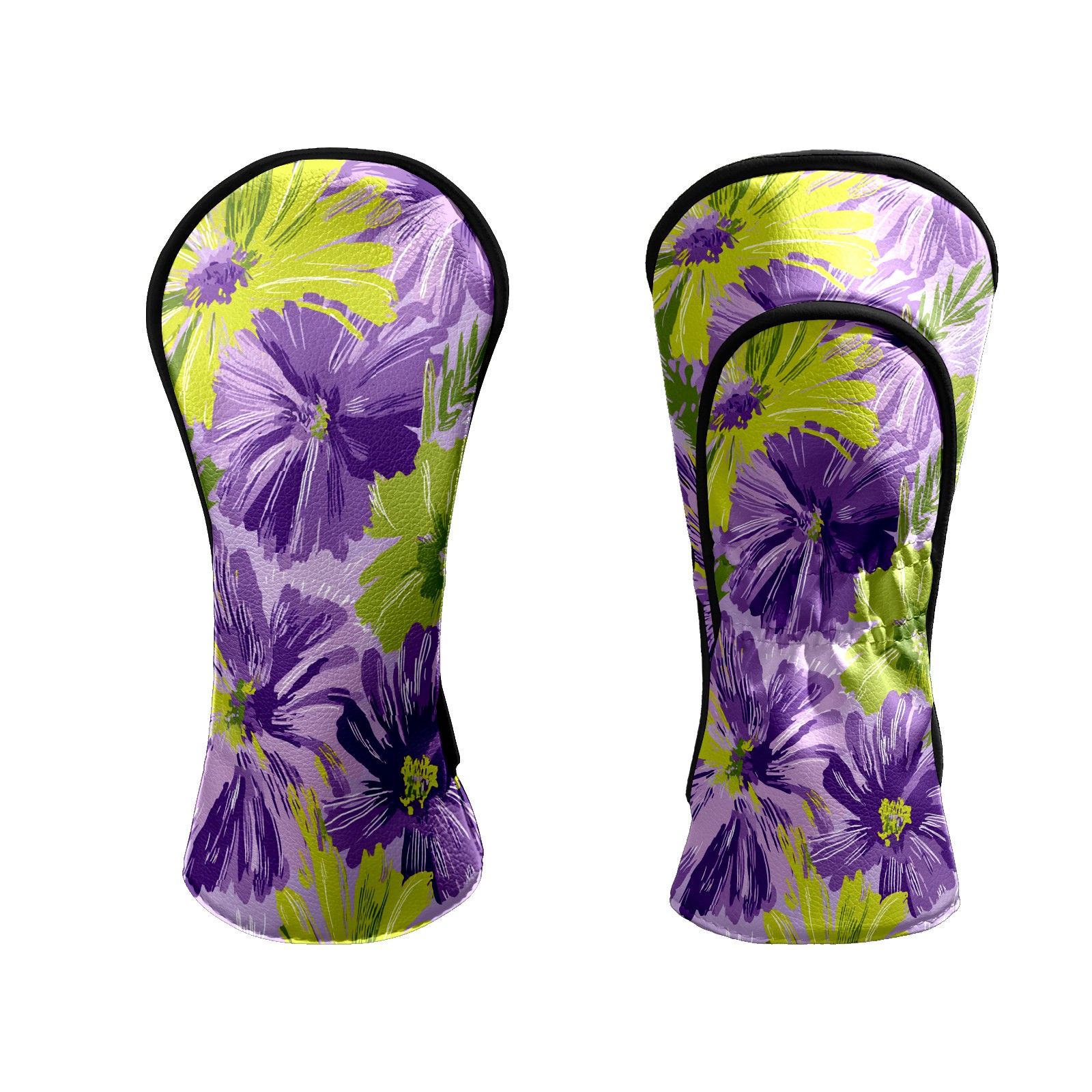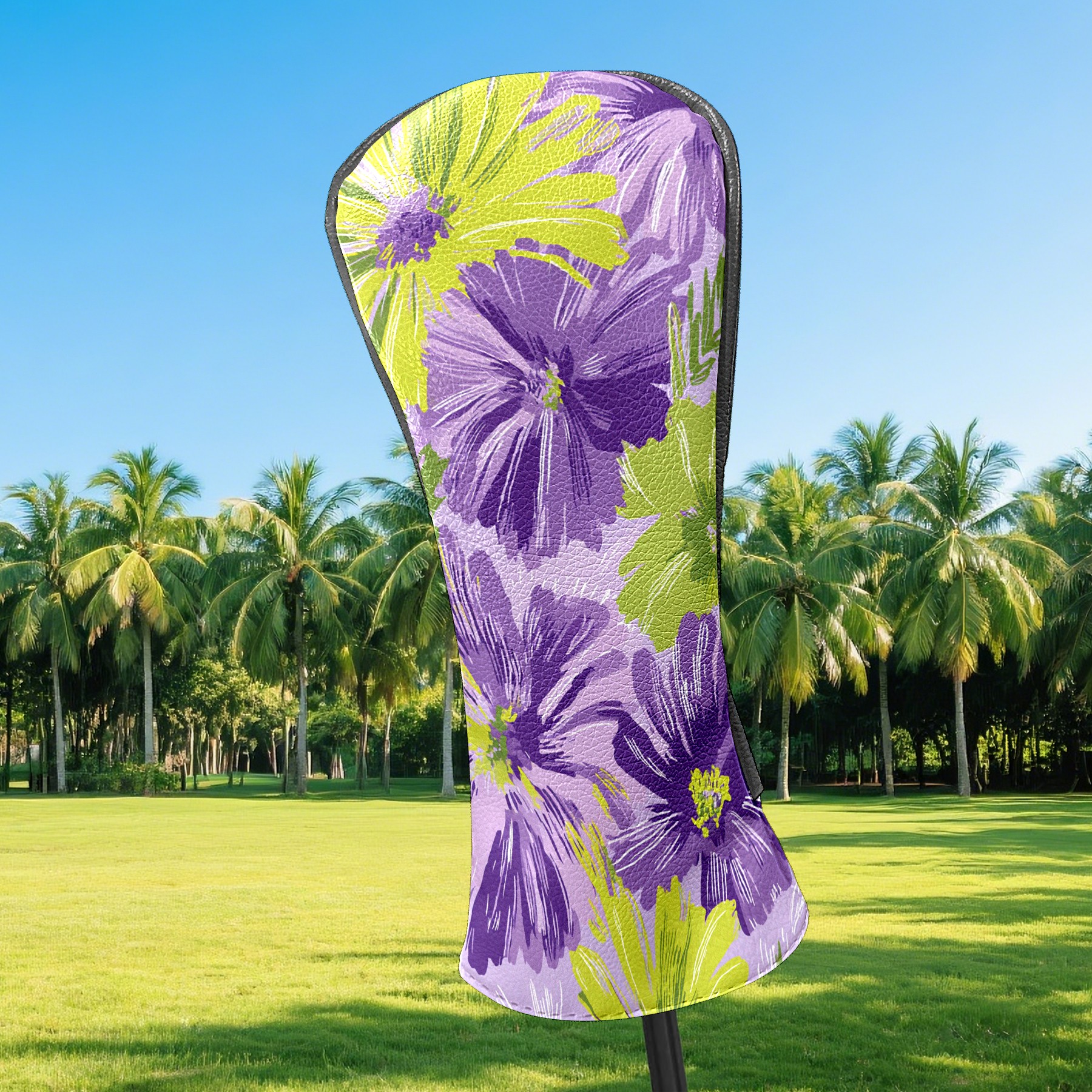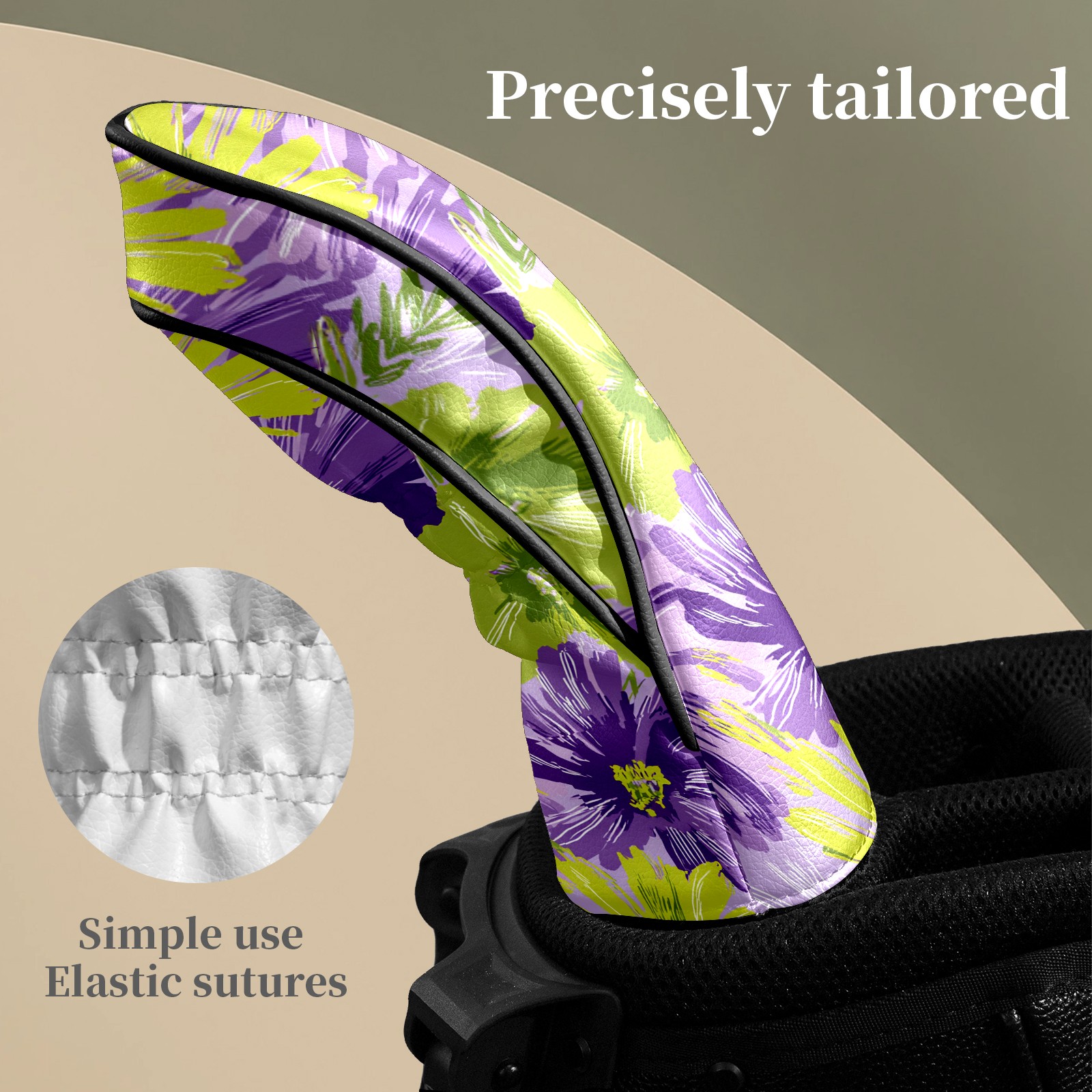 Counullo Golf Head Covers - Floral Purple Driver Fairway Headcover, Durable PU Leather & Soft Velvet Lining, Secure Elastic Band, Perfect Christmas Golf Gift for Men