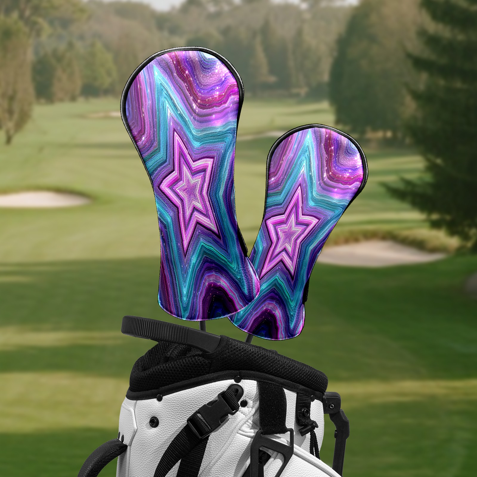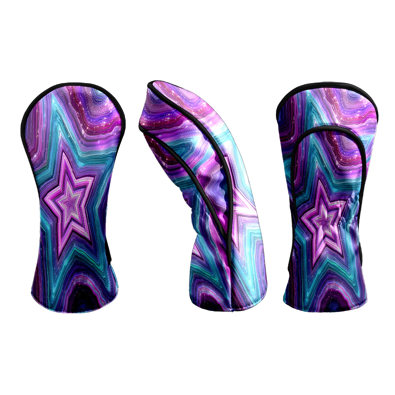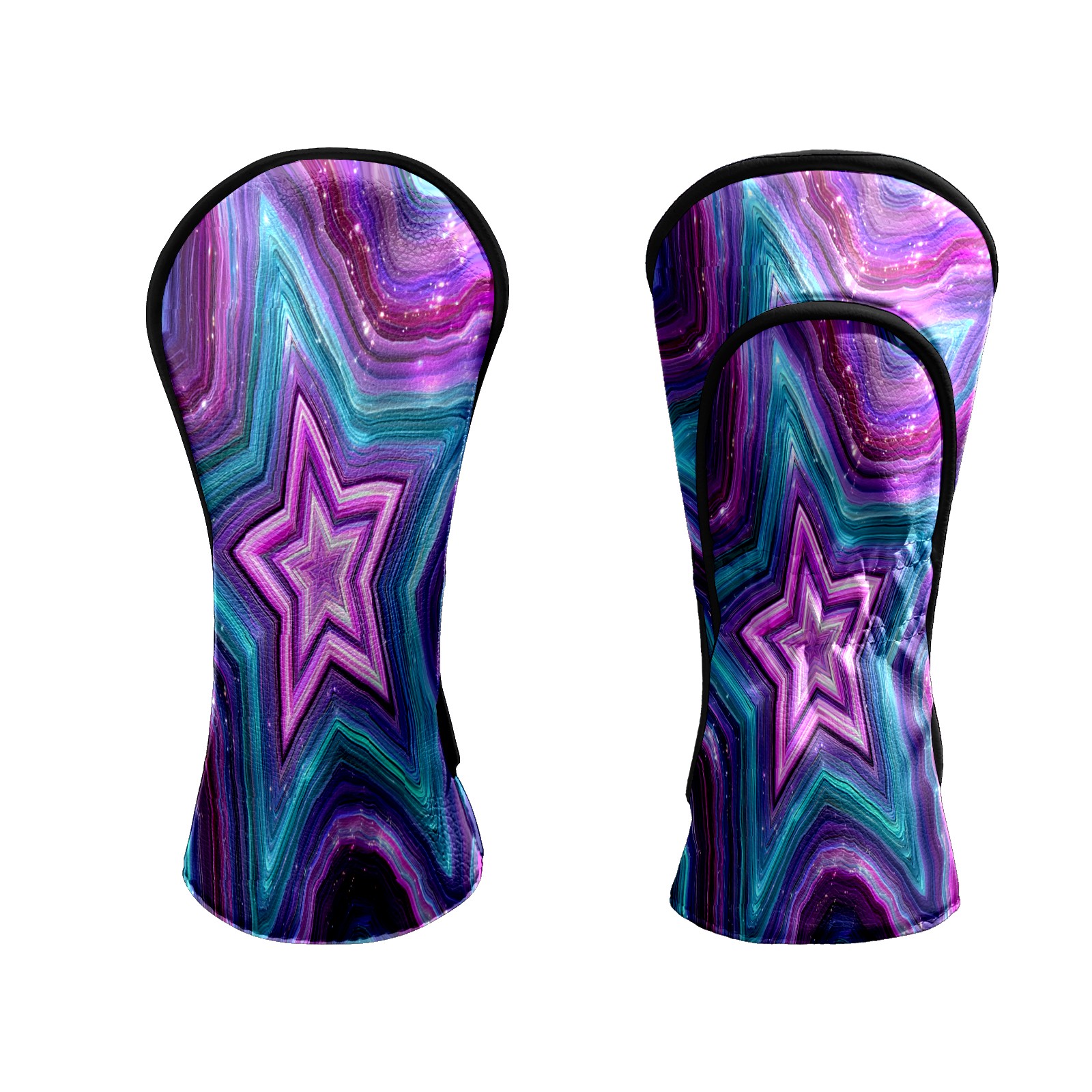 Counullo Golf Head Covers - Star Pattern PurpleBlue Driver Fairway Headcover, Durable PU Leather & Soft Velvet Lining, Secure Elastic Band, Perfect Christmas Golf Gift for Men