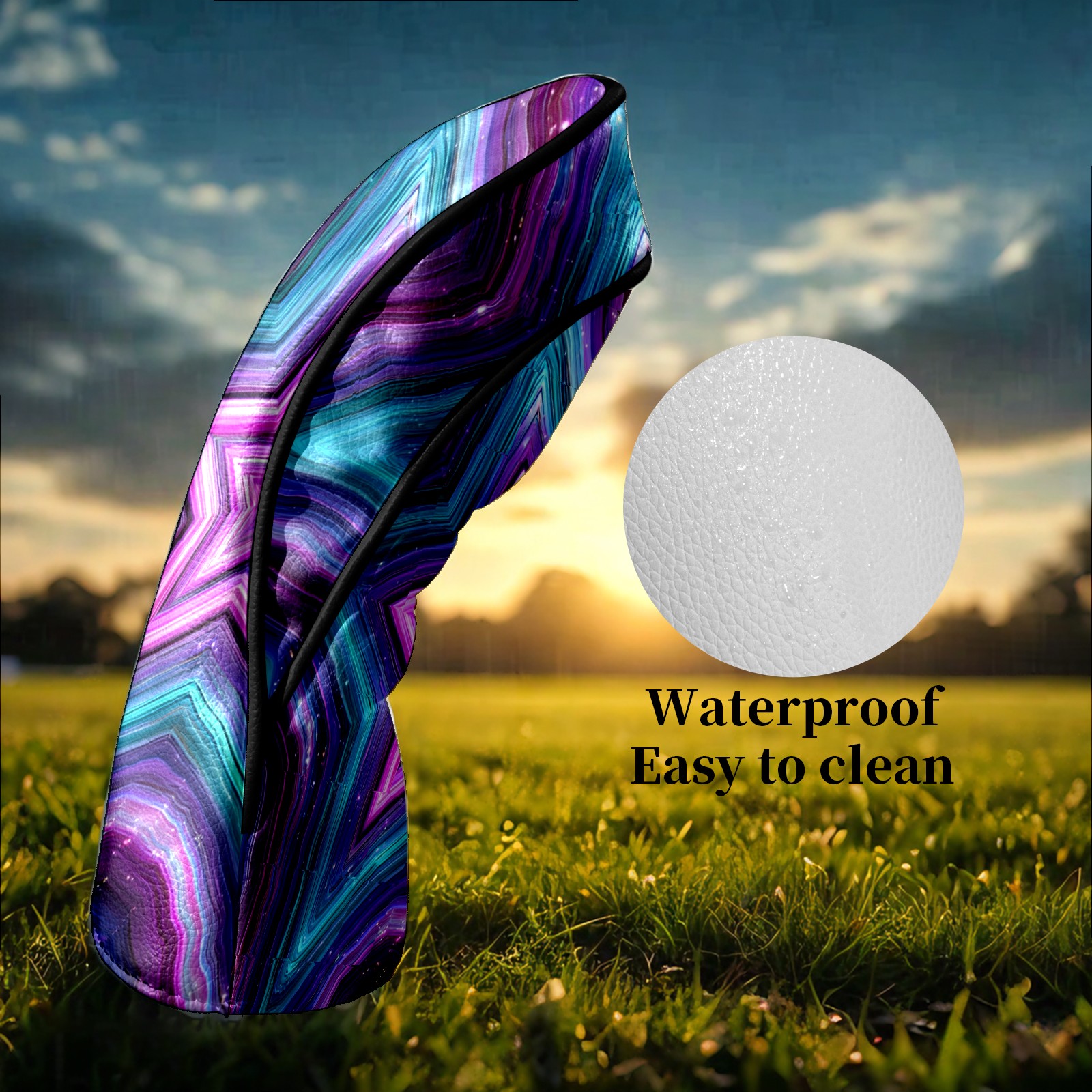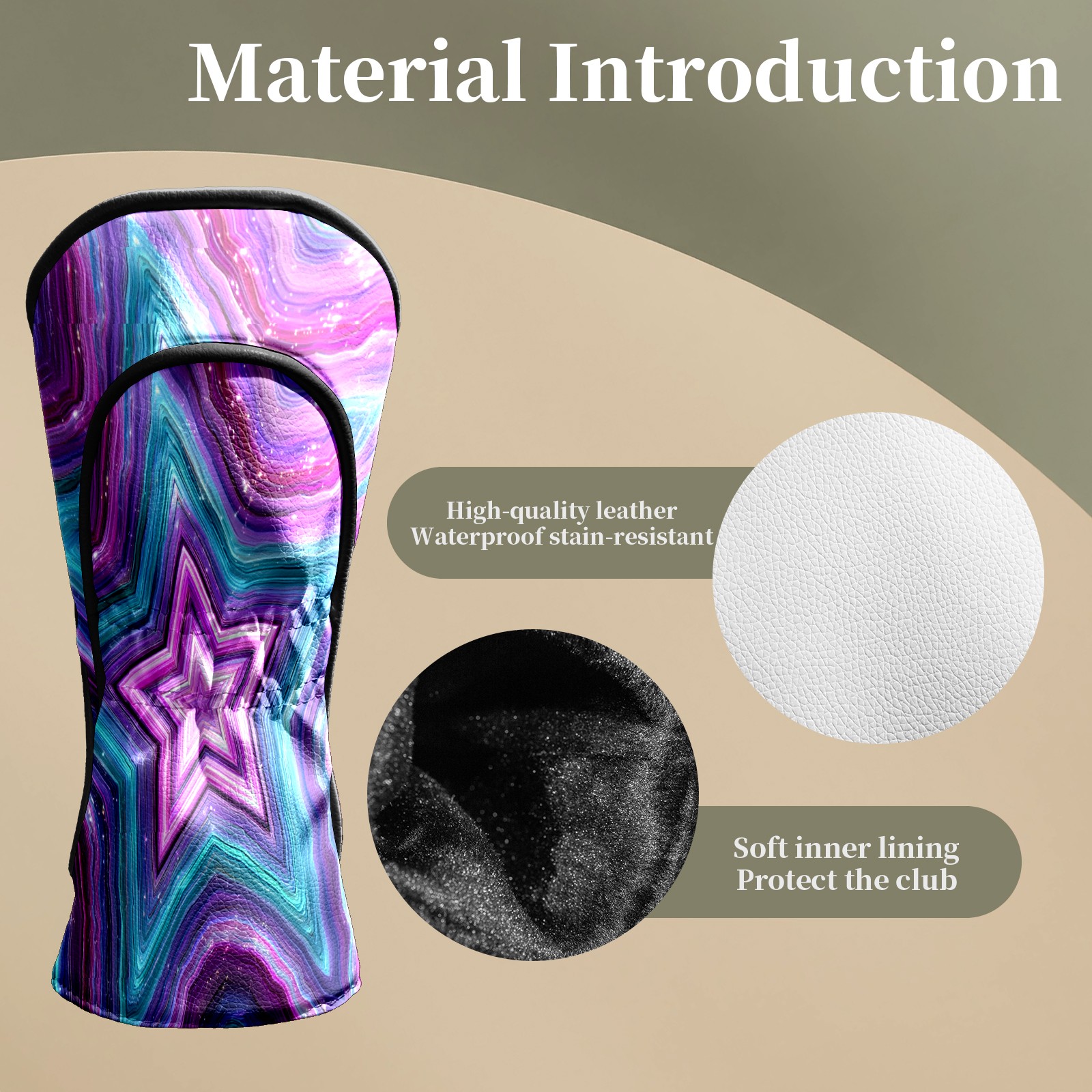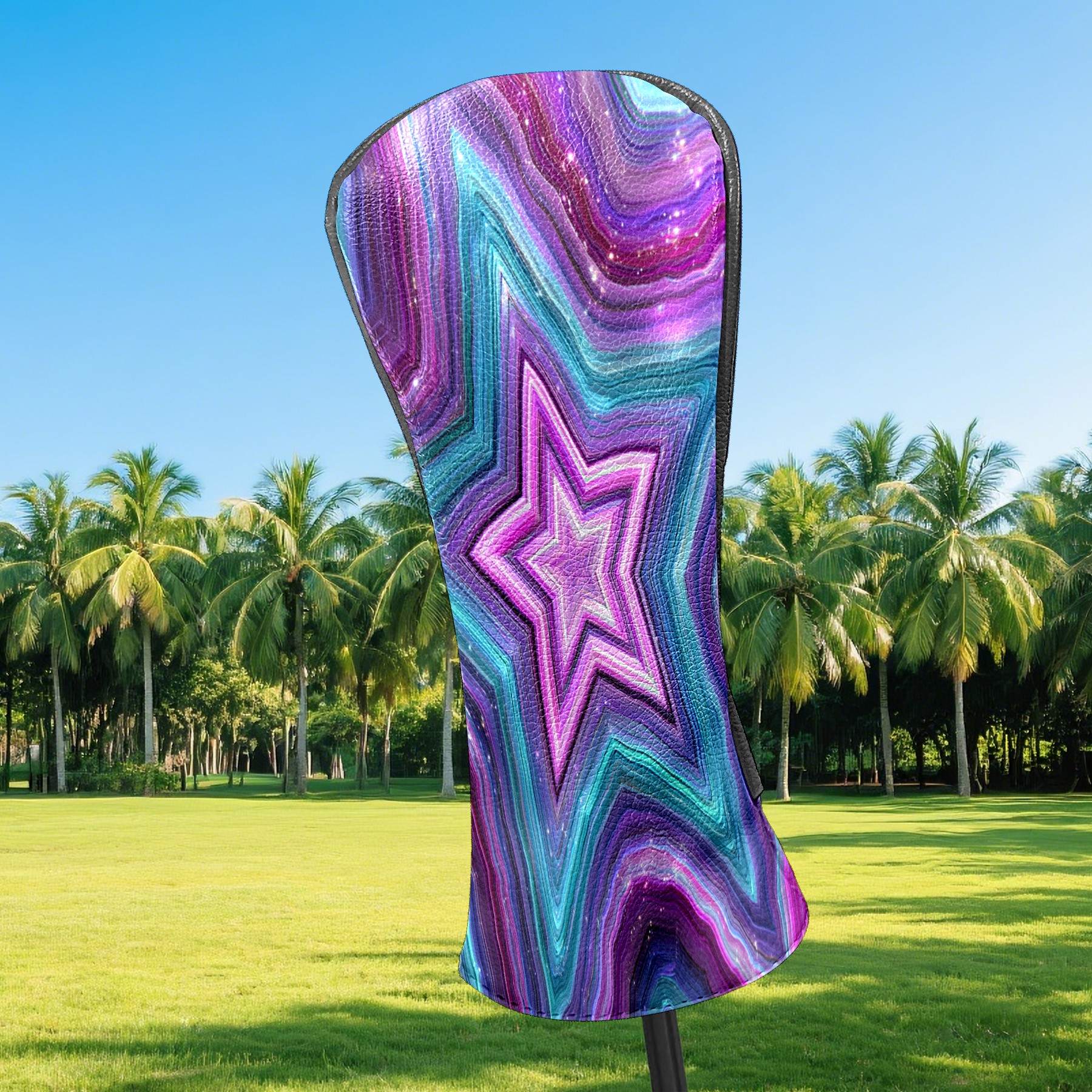 Counullo Golf Head Covers - Star Pattern PurpleBlue Driver Fairway Headcover, Durable PU Leather & Soft Velvet Lining, Secure Elastic Band, Perfect Christmas Golf Gift for Men