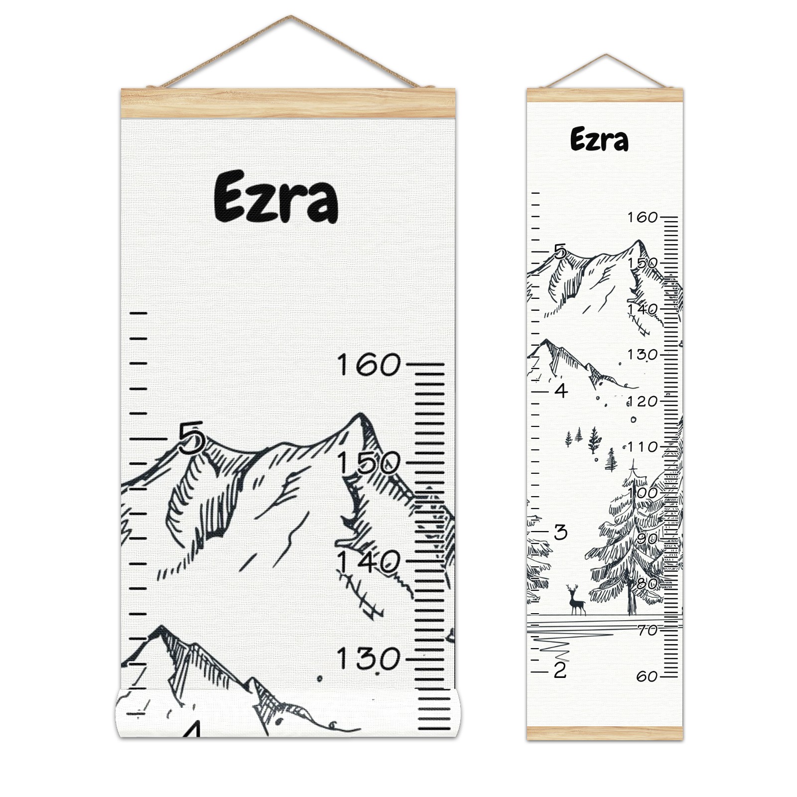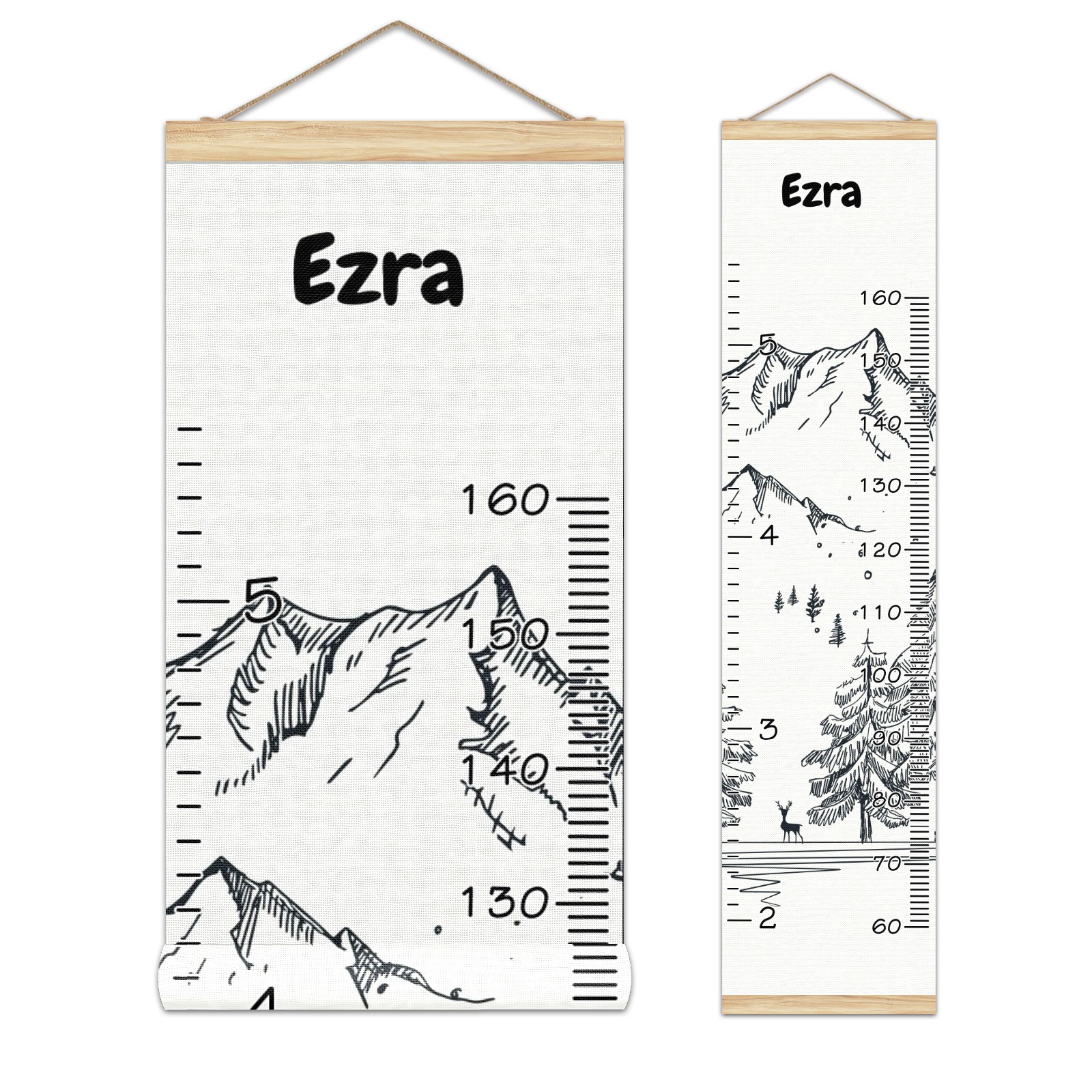 Personalized Kids Name Growth Chart Ruler for Wall Wood Frame Canvas Height Measure Chart 13.4x56 in Hanging Growth Chart Winter Mountain11.24-1 Boys Girls Room Decor