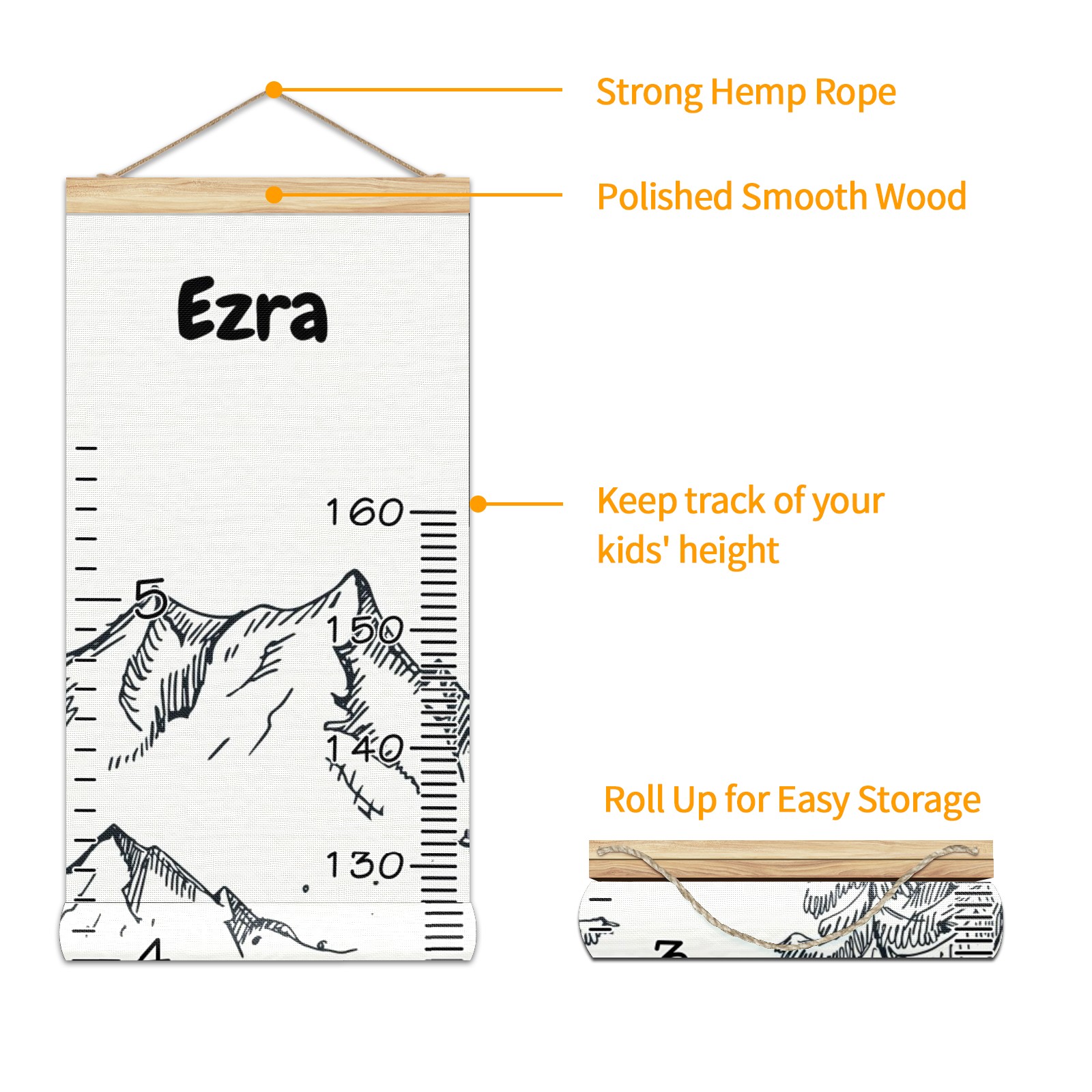 • <p><b>Features:</b></p> <p>Rope for Hanging</p> <p>Material: Linen + Wood</p> <p>Dimensions: 13.4x56 inches</p> <p>Package Included: 1 * Baby Growth Chart</p> <p><b>Baby height growth chart can be used anywhere</b></p> <p>Ideal for kids nursery decoration, kids bedroom, interior walls or windows, playroom, living room, homedecoration.Add name and make the growth chart special!</p> <p><b>Easy to fold and carry</b></p> <p>With rope at the top of the growth chart, it is easy to install and remove.You can fold it and unfold any time any where.</p> <p><b>Perfect Gift Idea for Kids</b></p> <p>Environmental and non-toxic for kids use, it must be a perfect gift for baby, kids, girls, and boys.This is a best choice for your friend who have kids or baby as a popular gift.</p> <p><b>Easy to read</b></p> <p>Measurement accrate with 2 scales, Centimeters and feet. The letters are big enough, very easy to read.</p> <p><b>60cm(23.6inch) Over Ground Design</b></p> <p>Not only can protect from dust and other damage, but also will not interfere in floor cleaning.</p>